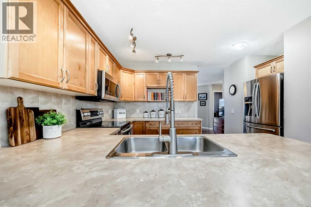 Welcome to this beautifully maintained, move-in ready, air conditioned, 4-bedroom, 3-bathroom bi-level with double garage is perfectly situated on a quiet street just a short walk to schools and shopping. Offering the privacy of a detached home, this unique semi-detached property is connected only at the garage—meaning no shared living walls and no noise transfer. From the moment you arrive, you’ll appreciate the charming curb appeal, highlighted by mature landscaping and a welcoming front entrance. Inside, a split entry design leads you either up to the bright main level or down to the fully developed lower level. The upper level features a spacious, sun-filled living room with large windows, seamlessly flowing into the kitchen and dining nook. Here you’ll find ample cabinetry and counter space, along with direct access to the back deck—perfect for indoor-outdoor living. The generous primary bedroom offers dual closets and a private 4-piece ensuite *TV and TV mount in the main level bedroom are included. A second bedroom and full bathroom complete this level. Downstairs, the professionally finished lower level (finished by the builder) provides an inviting retreat with a large rec room centered around a cozy gas fireplace. Two additional bedrooms, both with sizable windows and closets, along with another full bathroom, make this level ideal for family or guests. Step outside to enjoy your private backyard oasis. The upper deck features a covered pergola, creating a comfortable and secluded seating area, while the lower stone patio and lawn offer additional space for relaxing or entertaining all summer long. Additional highlights include a heated and insulated double attached garage with extensive built-in storage (all the grey cabinets on the east wall are included). *New water tank 2023 *Security camera at the front door is included (low cost subscription available $40 per year, not mandatory). This is a rare opportunity to own a home that combines space, function ality, and privacy in a fantastic location. It won't last long so don’t miss your chance to view it today! (id:63190)