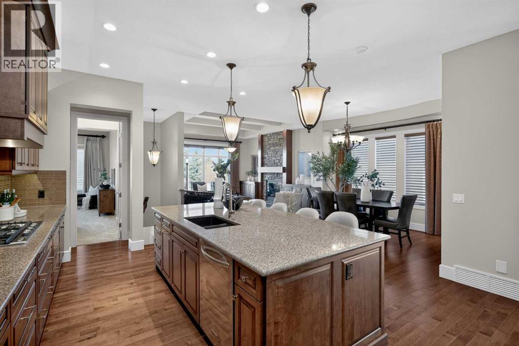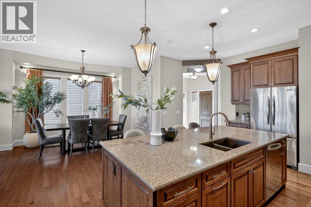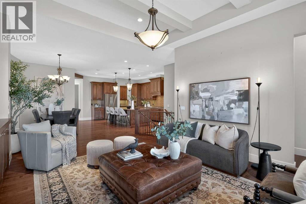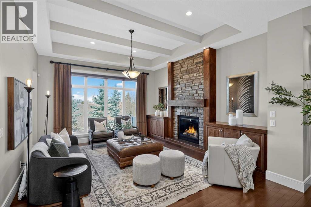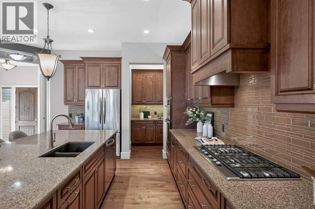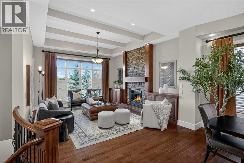 Discover a lifestyle of quiet sophistication and pastoral peace in this stunning semi-detached residence, perfectly situated in the prestigious community of Artesia. This home is a masterclass in functional luxury, offering the space and appointments of a sprawling estate with the effortless maintenance of a villa. The heart of the home is a chef-inspired kitchen that balances moody, dark cabinetry with the luminous glow of premium quartz countertops. Designed for the serious epicurean, it features a gas cooktop, integrated wall oven, and built-in microwave. The transition to the expansive dining area is seamless, supported by a sophisticated butler’s pantry and significant hidden storage for flawless entertaining. In the living room, a floor-to-ceiling stone fireplace serves as a dramatic focal point, flanked by custom built-ins that frame the room’s generous proportions. A private den offers a quiet sanctuary for the home professional, while the main floor’s airy layout is perfectly complemented by high-end finishes and a thoughtful half-bath. Retreat to the primary suite, where indulgence is standard. The five-piece ensuite is a spa-like escape, featuring a deep soaking tub and a separate glass-enclosed shower, creating a serene environment for morning rituals or evening relaxation. Descending to the lower level—refreshed with new carpet just two years ago—you will find an exceptional space for family and guests. Three large bedrooms and a four-piece bath provide ample private quarters, while the expansive family room—currently home to a classic shuffleboard table—is the ultimate setting for game nights and cinema. This home has been meticulously maintained for peak performance, featuring: Dual-zone heating for personalized climate control and Central A/C. Newer hot water tank (2022) and high-efficiency water softener. Integrated Vacuflo system and a rare triple attached garage. Step outside to your private west-facing backyard, where golden hour sunsets over the prairies provide a tranquil backdrop. Artesia is celebrated for its peaceful, quiet atmosphere and high-end aesthetic. While you feel worlds away from the city, you are mere minutes from the boutique shopping and dining of Heritage Pointe, and the comprehensive amenities of Seton, including the South Health Campus and major retail hubs. Experience the perfect equilibrium of luxury, space, and serenity. (id:63190)