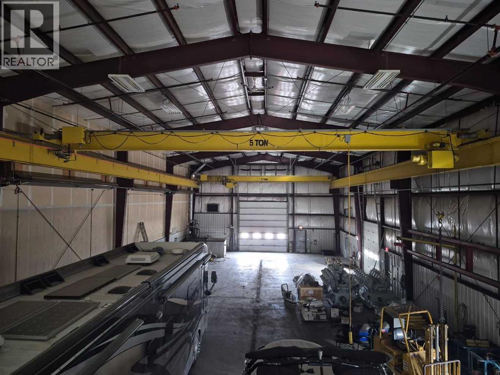 Outstanding Light Industrial Facility in Olds Alberta SE Area Industrial park: 10,000+ sq ft Office & ShopDiscover an exceptional industrial property in the Olds SE Area, offering over 10,000 sq ft of high-quality office and shop space on a 1.26-acre lot. The two-story office section features a welcoming reception, private offices, a boardroom, kitchen, eating area, washrooms, and file room, all with self-contained HVAC. Enjoy stunning Rocky Mountain views from west-facing rooms.The integrated 7,000+ sq ft metal shop is designed for efficiency, complete with mezzanine storage. It benefits from robust 3-phase 600v power distributed throughout, an overhead sprinkler system, and two corded 5-ton multi-directional overhead cranes. Additional features include radiant heating, a laundry room, shop washroom, and individual power panels at various workstations. Access is easy with several man doors and four large overhead doors (three 12'x12', one 16'x16').This clean, 12-year-old property, previously used for large engine rebuilding, also offers a security-fenced rear lot. Zoned Light Industrial, its versatile layout supports mechanical, manufacturing, or storage operations. A local Business Person selling which would be eager to see a new owner thrive in this ideally located and well-equipped facility. This property has and can provide the Tools for a small to Medium Business with a desire to see return with exceptional results. Easy viewing available. (id:63190)