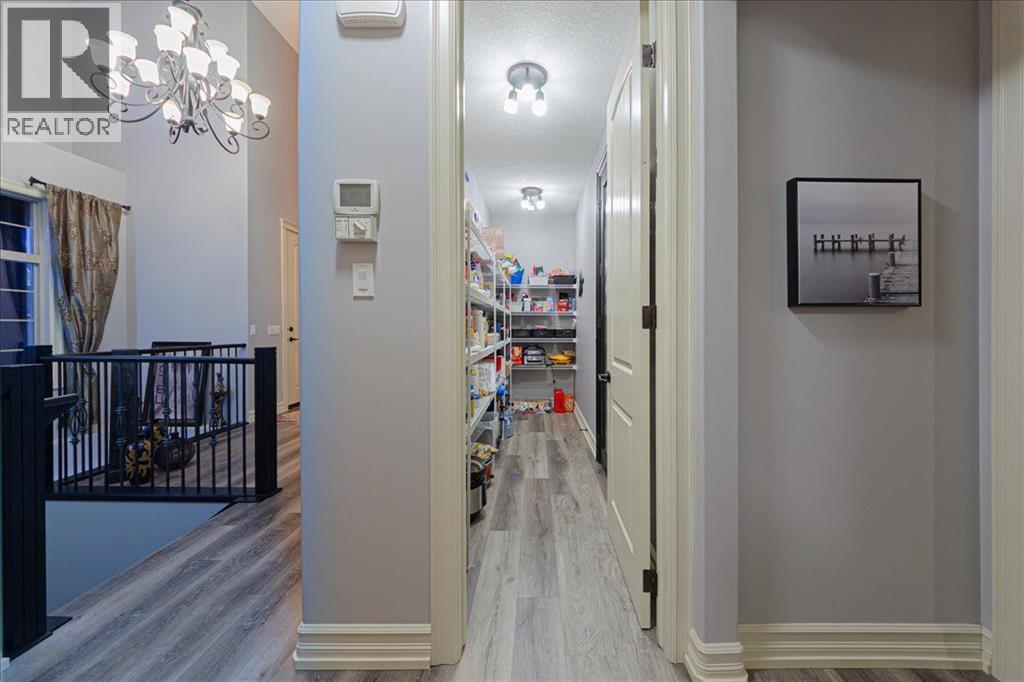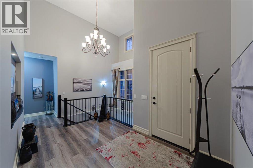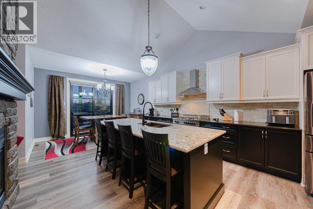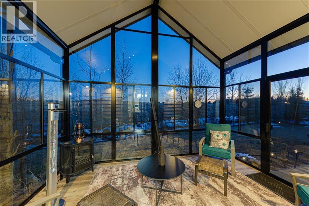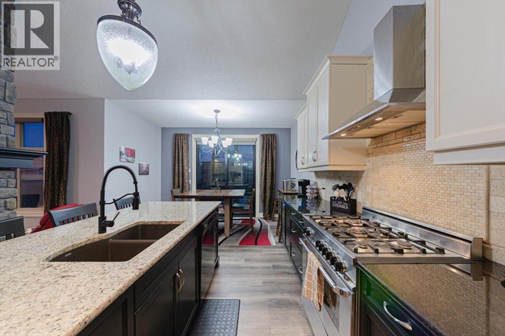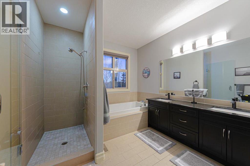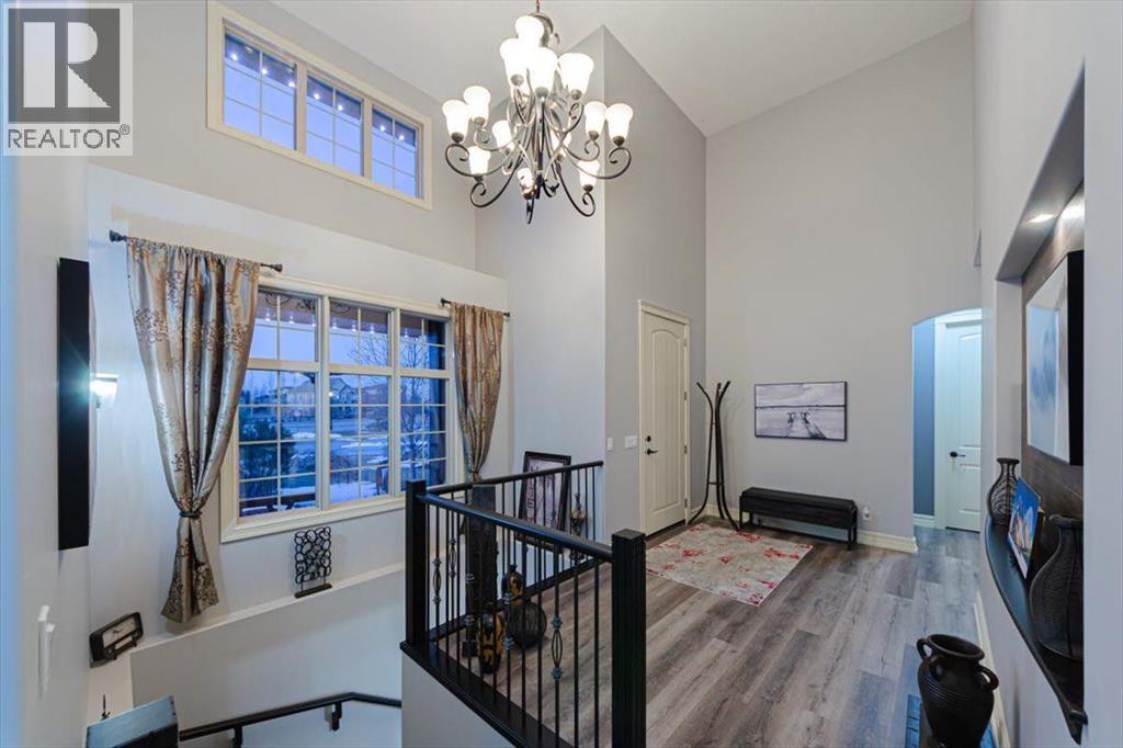 Welcome to an exceptional bungalow estate, gracefully positioned on a beautifully landscaped 0.41-acre lot in the prestigious community of Monterra in the Cochrane Lakes—offering the rare luxury of no rear neighbors and uninterrupted views of tranquil green space. From the moment you arrive, the home’s striking stone exterior and inviting covered front porch set the tone for the elegance within. Step into a grand foyer that opens into a private study, a refined formal living and dining area, where soaring vaulted ceilings and a stunning two-way stone fireplace create an atmosphere of warmth and timeless sophistication. The heart of the home is an exquisitely designed kitchen, thoughtfully appointed with a center island breakfast bar, perfect for both everyday living and entertaining. A beautifully crafted two-way pinnacle fireplace connects the kitchen to the living space, enhancing both ambiance and flow. This home has been meticulously maintained and thoughtfully upgraded, including brand new shingles in 2025 and the addition of a spectacular all-season solarium—an ideal retreat that seamlessly extends your living space into the serene natural surroundings beyond. The fully finished layout offers three spacious bedrooms, including two luxurious ensuites, and a total of three and a half beautifully appointed bathrooms, providing both comfort and privacy for family and guests alike. Downstairs, the lower level is fully finished with the exception of one room ready for your personal needs. For your conveniance there is infloor heating already roughed in. Completing this remarkable property is a triple attached garage, offering ample space for vehicles, and storage. This is more than a home—it’s a private retreat where elegance, comfort, and nature come together in perfect harmony. (id:63190)