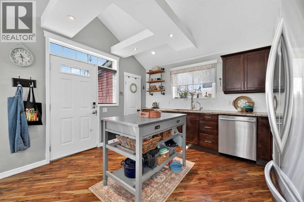 Welcome to your sweet Tuxedo Park home—an inner-city gem designed for those who crave charm, style, and a space to truly call their own. Perfect for a single professional or young couple, this beautifully updated bungalow blends character with modern comfort, all just minutes from downtown.Step inside to discover a bright, airy layout featuring 2 bedrooms, 2.5 baths, and two inviting living spaces—ideal for relaxing, entertaining, or working from home. The upper dining room offers flexibility and could easily be converted into a private at home office with the addition of a barn door. The heart of the home is the stunning kitchen, where vaulted ceilings and a skylight flood the space with natural light. You’ll love the granite countertops, breakfast bar seating, abundant cabinetry, large pantry, and added convenience of a water filtration system—perfect for both everyday living and hosting friends. This home has been thoughtfully maintained and extensively renovated (2006/2007), including updated layouts on both levels, windows, plumbing, electrical, roof, furnace, stucco exterior, and gorgeous 45-degree walnut hardwood flooring. Custom closet shelving adds smart storage throughout. Recent upgrades include fresh paint, new LED lighting, and recently central air conditioning to keep you comfortable all summer. Outside, your private south-facing backyard is a true retreat—featuring a large sun-soaked deck, newer fencing, and elegant columnar aspens that create a serene, garden boxes to grow produce, and a secluded atmosphere. An oversized single garage completes the package. Cute, stylish, and completely move-in ready, this Tuxedo Park bungalow offers the best of inner-city living with a warm, welcoming vibe you’ll fall in love with the moment you arrive. An absolute must see! (id:63190)