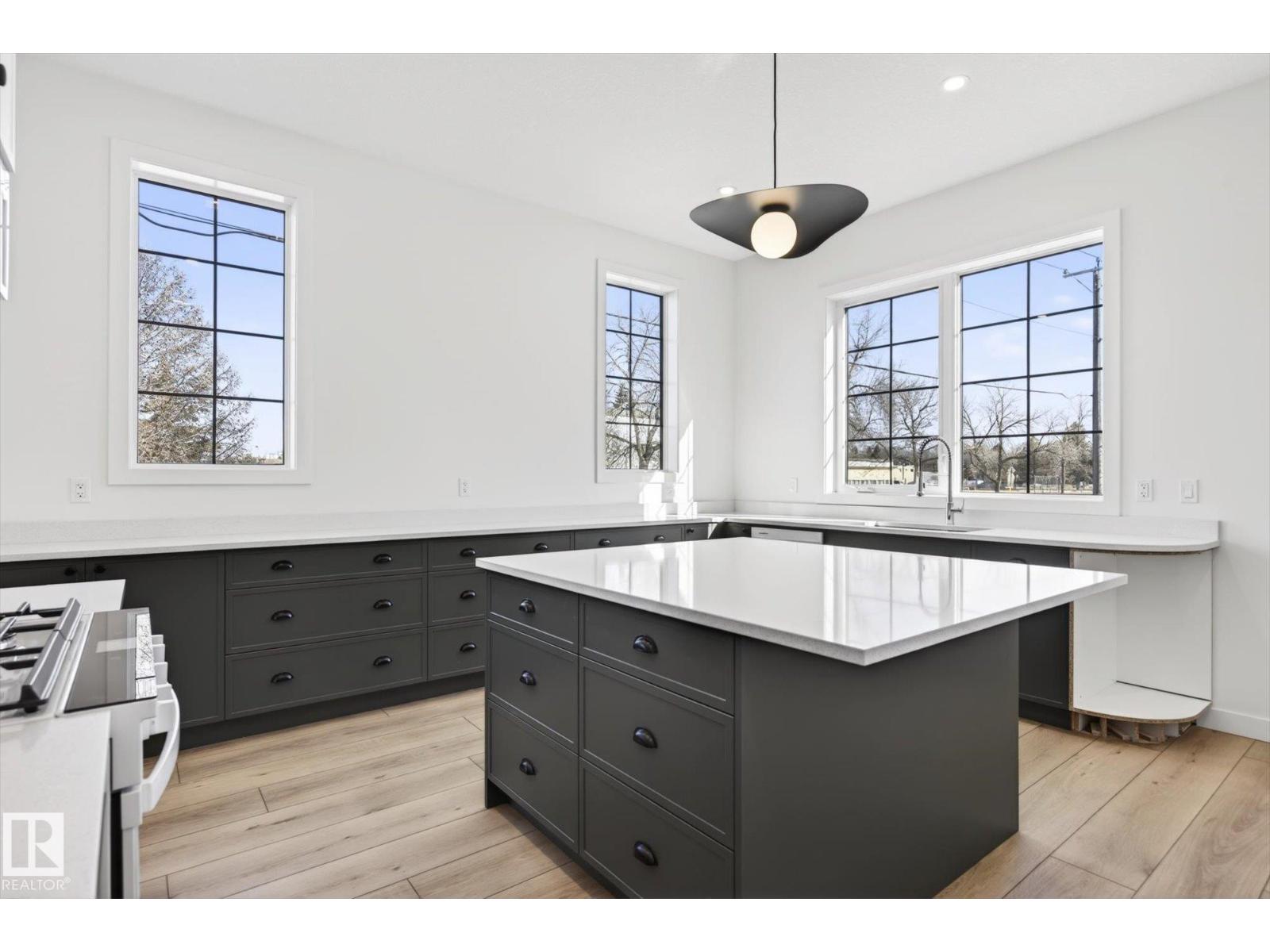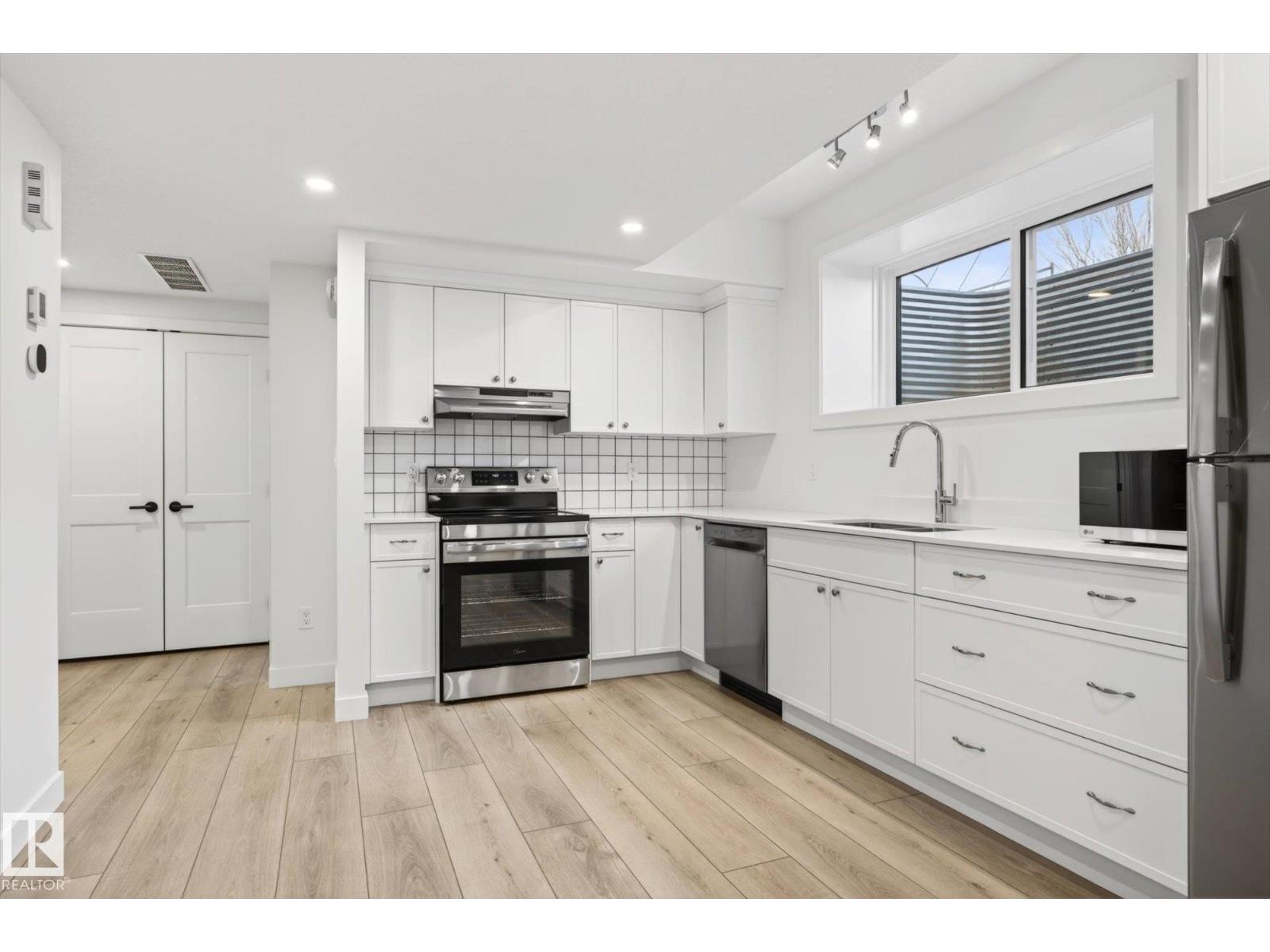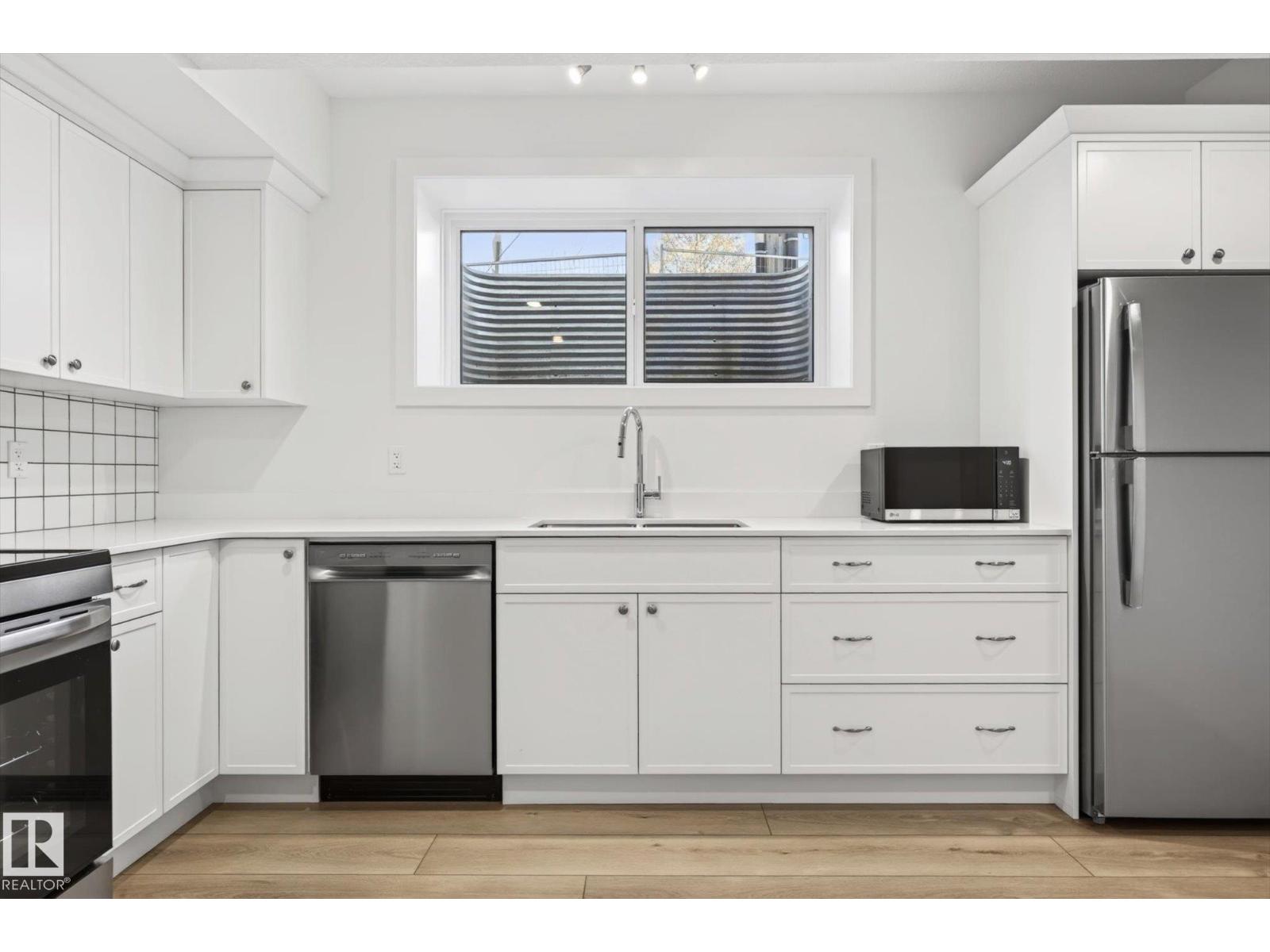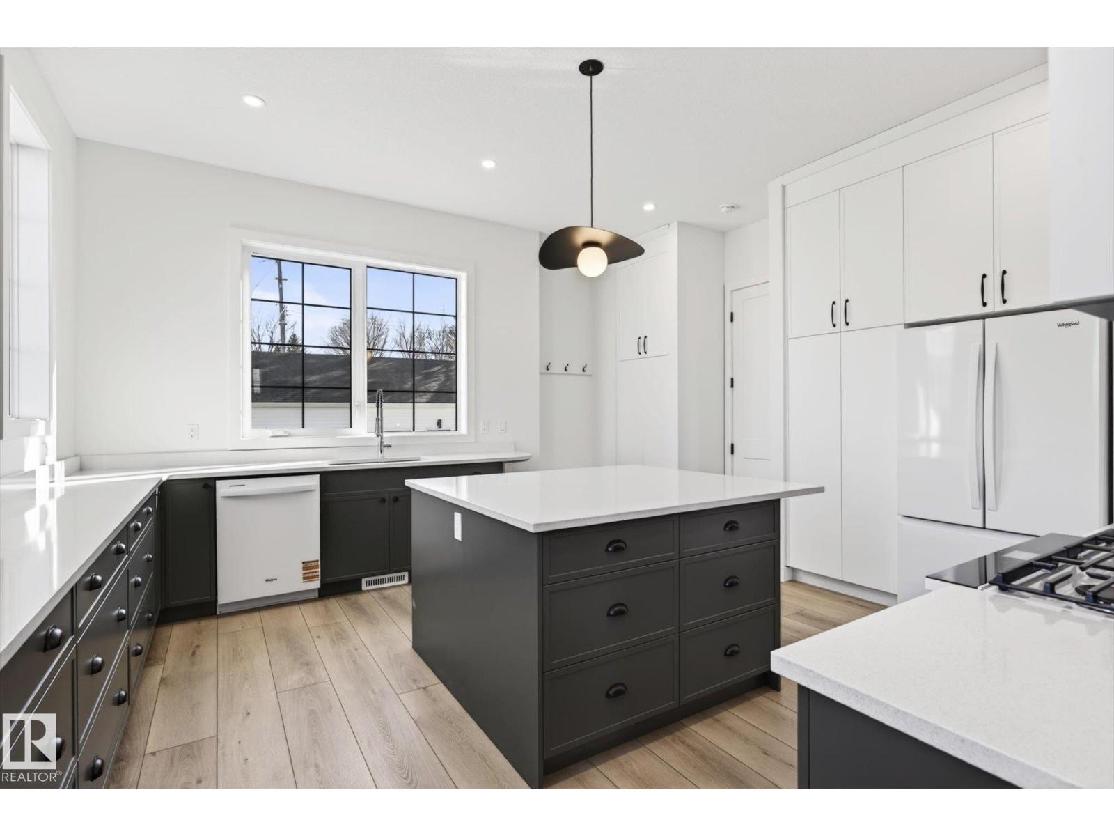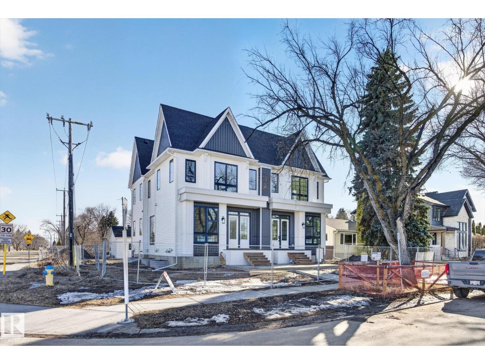 Luxury living -- 9705 68 Avenue NW! — in Hazeldean; new upscale half-duplex by Chizen & Company blends timeless architectural with modern design. Offering 1,908 SqFt above grade with legal 1-bedroom basement suite with separate entrance, this is the perfect opportunity for elevated living with income potential. The main floor features 10’ ceilings, a sophisticated living room with arch detail, built-in bookshelves & fireplace; a formal dining area; & designer kitchen with large island, custom cabinetry & modern appliances. Upstairs boasts 9’ ceilings, 3 spacious bedrooms including a luxurious primary retreat with walk-in closet & elegant ensuite, plus an upper laundry room. The legal suite includes full kitchen, living area, bedroom & separate laundry. Double detached garage, premium exterior finishes & exceptional craftsmanship throughout & ALL appliances!. Ideal for professionals or investors seeking the highest of quality infill just steps to Mill Creek Ravine, Whyte Ave & amenities! (id:63190)