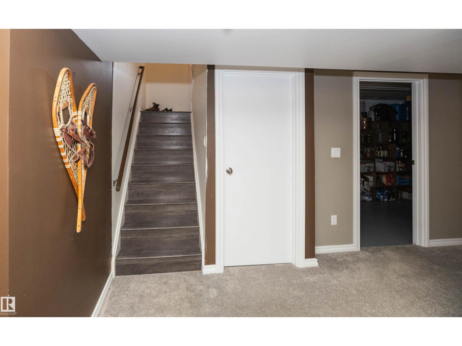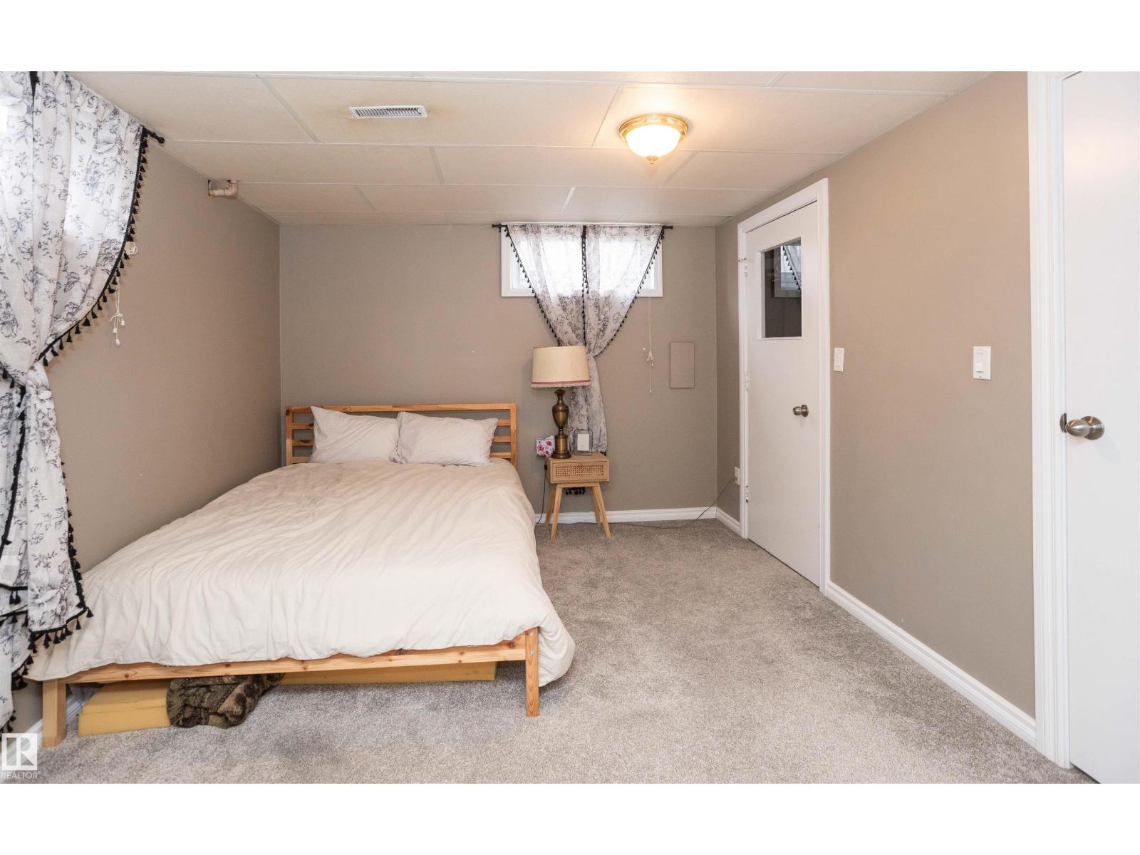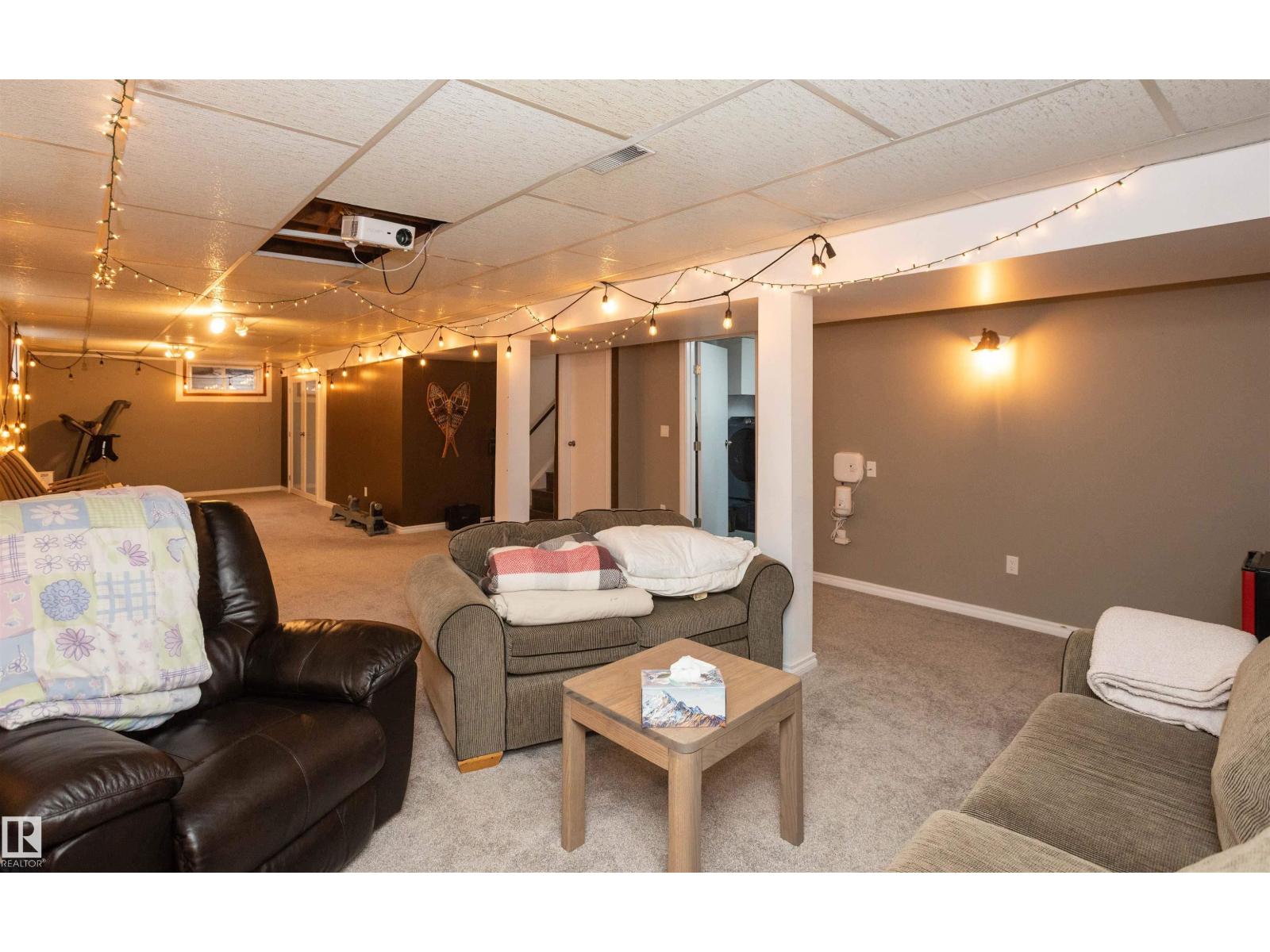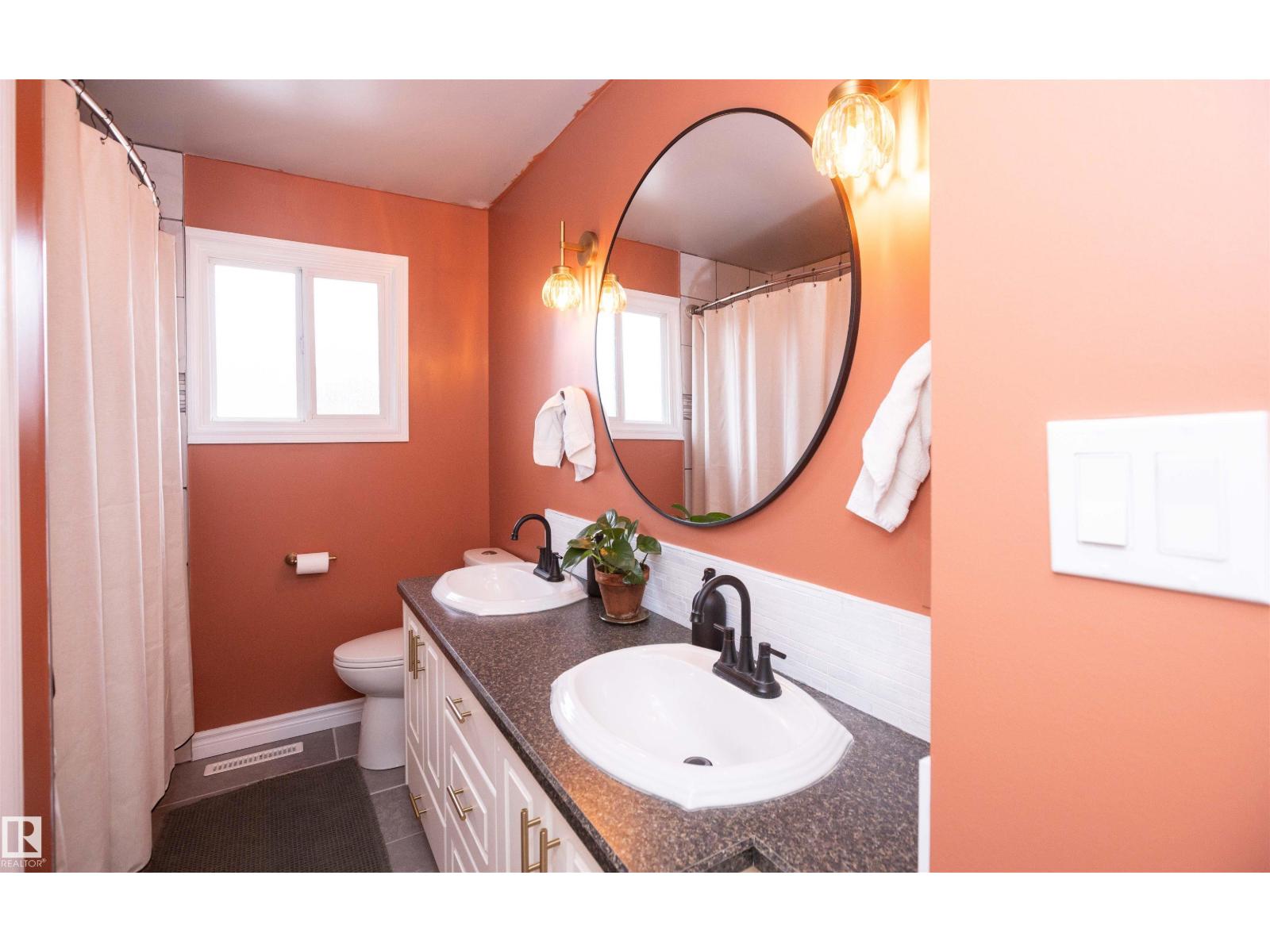 Across from Westlock Elementary school is a lovely home. Bright south-facing kitchen w/white cabinets, nice countertops, beautiful appliances (gas stove 1 yr) & nice eating area. Patio doors to deck on west. Spacious living room is lovely & bright. Three bedrooms main floor- the primary bdrm has full wall of closets. Bdrm 2 - nice size & bdrm 3 makes a nice den or office w/patio doors to large deck. Main floor bath w/double sinks, deep soaker tub & ceramic floor. Downstairs you'll find a massive family room w/beautiful carpet, large bdrm w/French doors & ensuite bath, laundry room w/plenty of space & front load W/D, storage room & furnace room. On your front deck sit and watch the fireworks on July 01. In the rear yard enjoy the beautiful new deck, trees & privacy. There is an area perfect for a garden, also two storage sheds, trees, new lawn & new landscaping! New shingles 2023. Furnace & water tank upgraded - not sure of date. Room for garage at rear or park on front driveway (room for 2) or street. (id:63190)