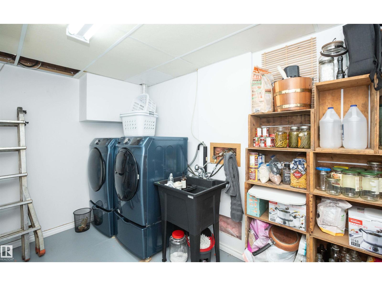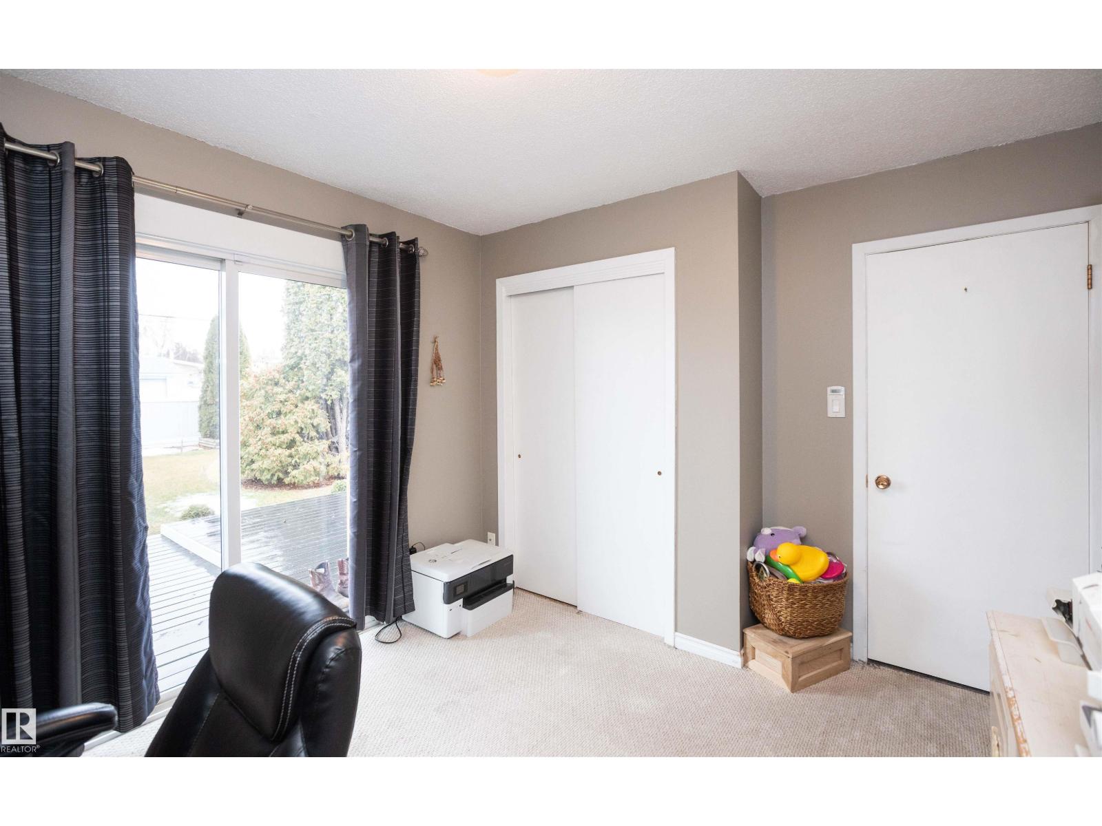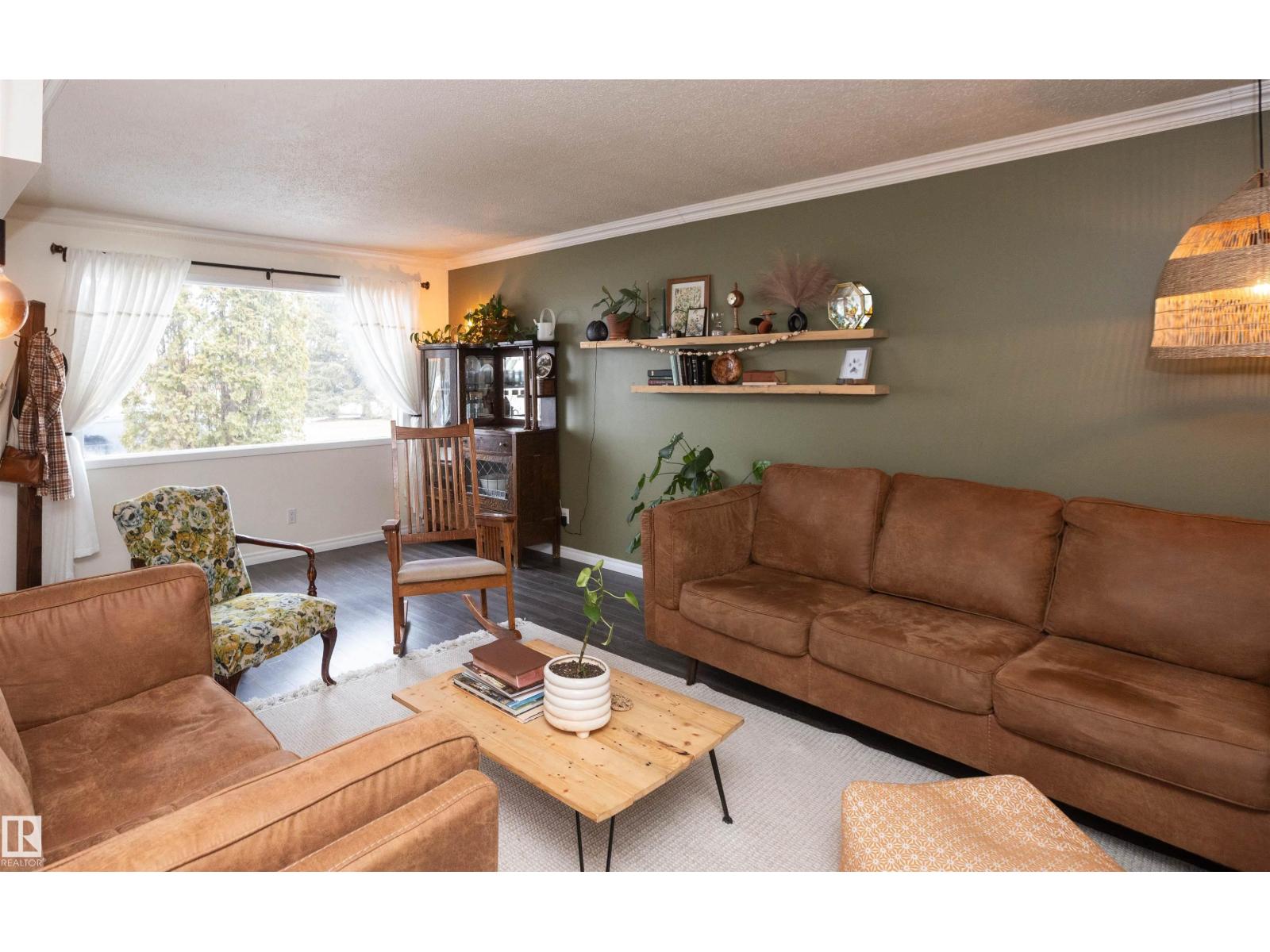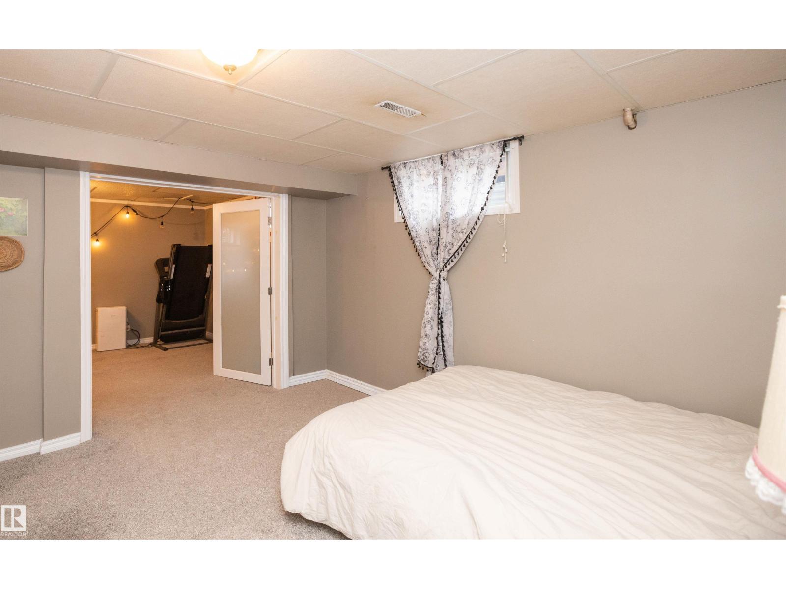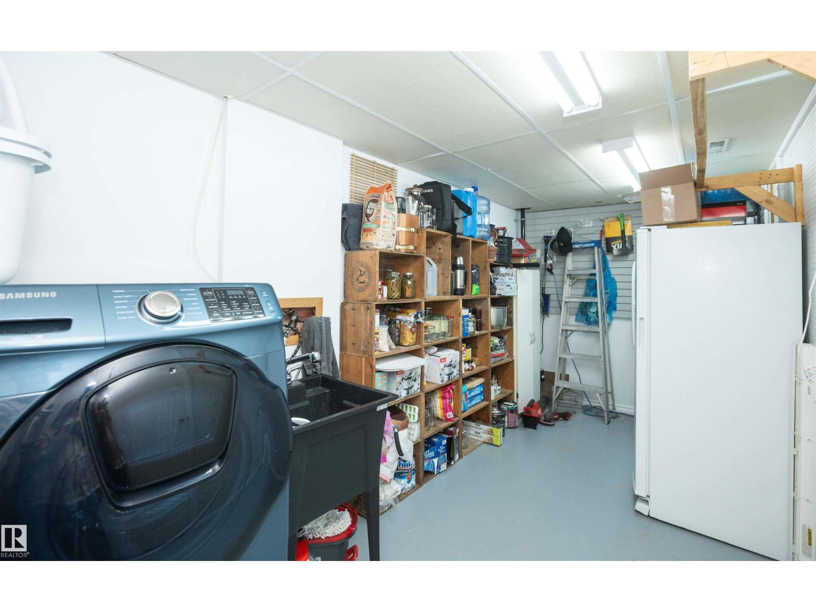 Across from Westlock Elementary school is a lovely home. Bright south-facing kitchen w/white cabinets, nice countertops, beautiful appliances (gas stove 1 yr) & nice eating area. Patio doors to deck on west. Spacious living room is lovely & bright. Three bedrooms main floor- the primary bdrm has full wall of closets. Bdrm 2 - nice size & bdrm 3 makes a nice den or office w/patio doors to large deck. Main floor bath w/double sinks, deep soaker tub & ceramic floor. Downstairs you'll find a massive family room w/beautiful carpet, large bdrm w/French doors & ensuite bath, laundry room w/plenty of space & front load W/D, storage room & furnace room. On your front deck sit and watch the fireworks on July 01. In the rear yard enjoy the beautiful new deck, trees & privacy. There is an area perfect for a garden, also two storage sheds, trees, new lawn & new landscaping! New shingles 2023. Furnace & water tank upgraded - not sure of date. Room for garage at rear or park on front driveway (room for 2) or street. (id:63190)