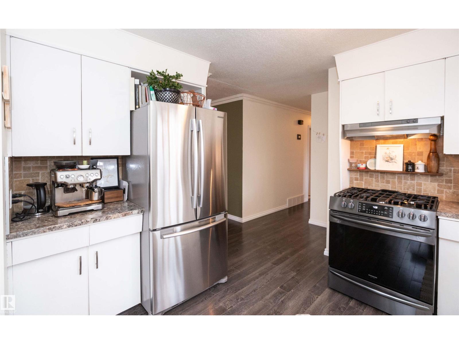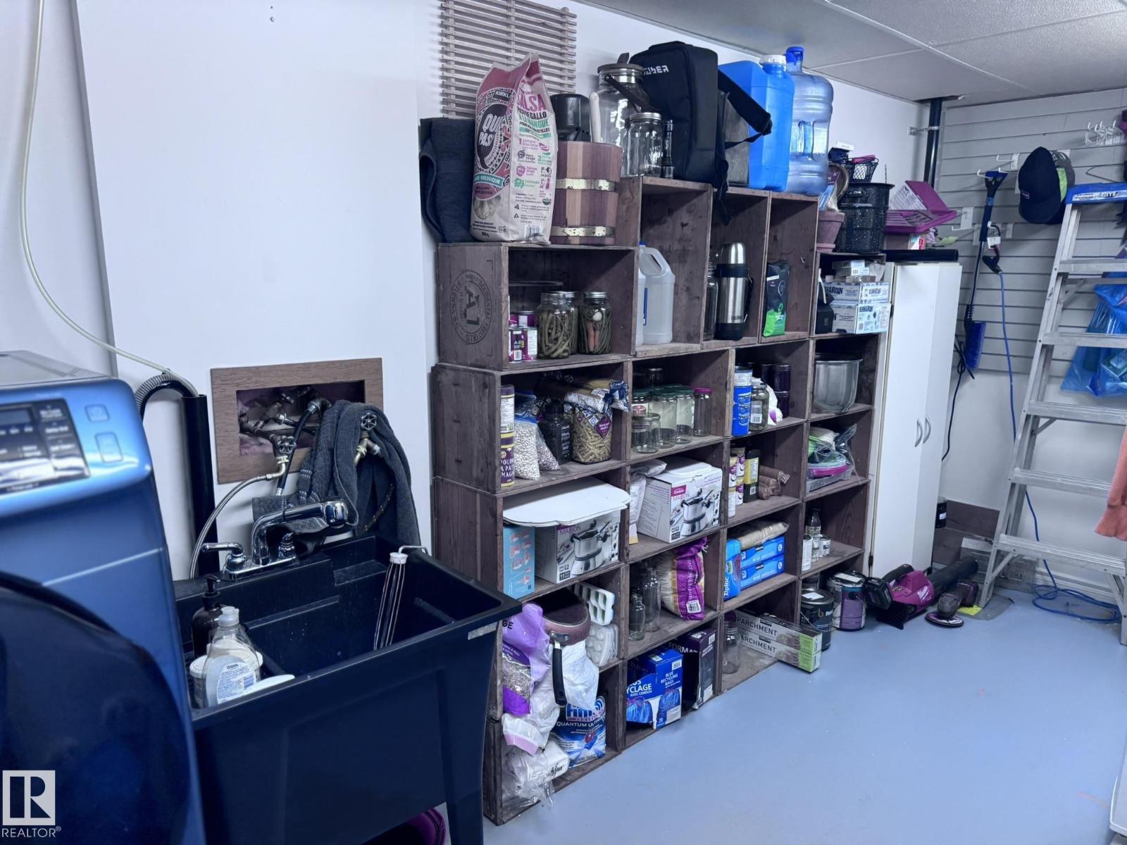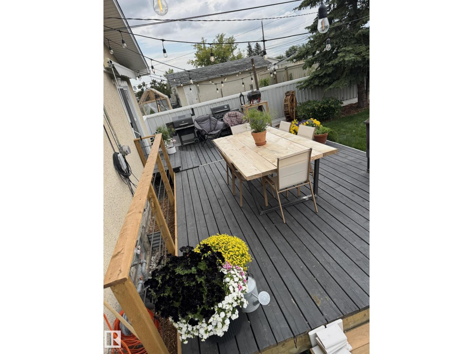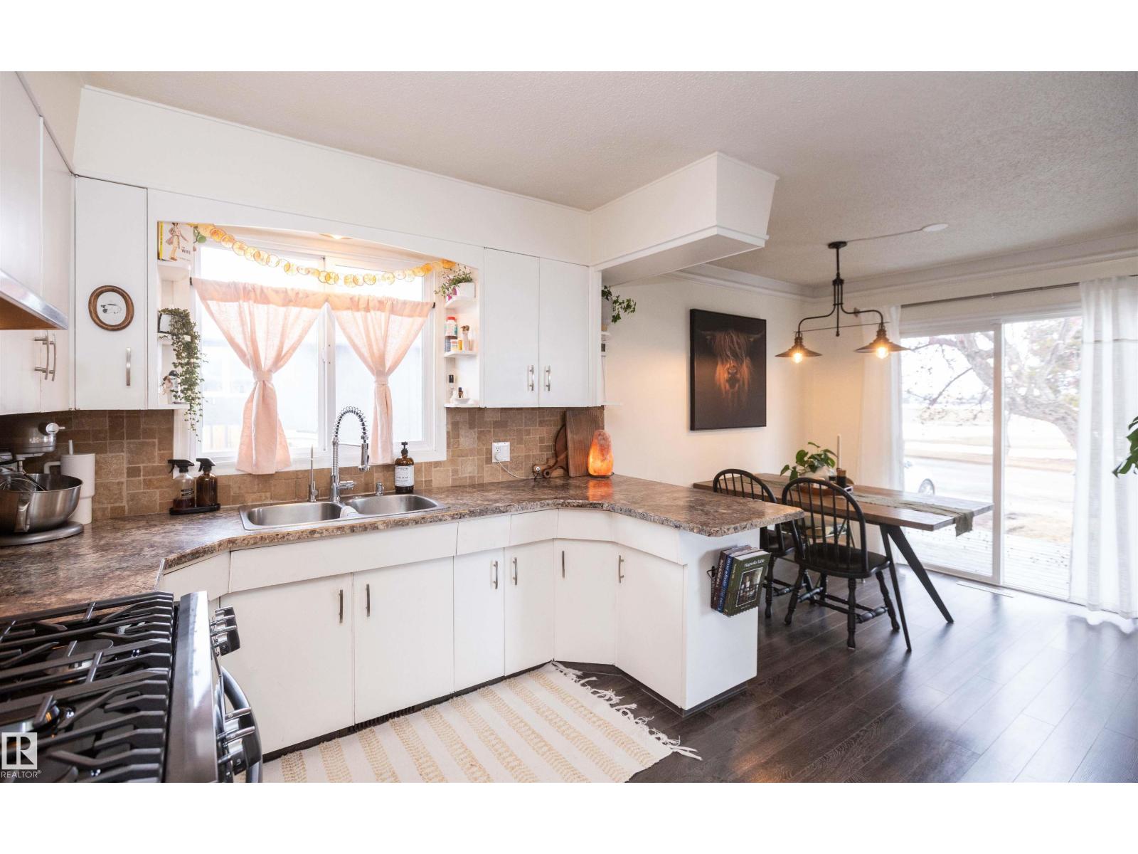 Across from Westlock Elementary school is a lovely home. Bright south-facing kitchen w/white cabinets, nice countertops, beautiful appliances (gas stove 1 yr) & nice eating area. Patio doors to deck on west. Spacious living room is lovely & bright. Three bedrooms main floor- the primary bdrm has full wall of closets. Bdrm 2 - nice size & bdrm 3 makes a nice den or office w/patio doors to large deck. Main floor bath w/double sinks, deep soaker tub & ceramic floor. Downstairs you'll find a massive family room w/beautiful carpet, large bdrm w/French doors & ensuite bath, laundry room w/plenty of space & front load W/D, storage room & furnace room. On your front deck sit and watch the fireworks on July 01. In the rear yard enjoy the beautiful new deck, trees & privacy. There is an area perfect for a garden, also two storage sheds, trees, new lawn & new landscaping! New shingles 2023. Furnace & water tank upgraded - not sure of date. Room for garage at rear or park on front driveway (room for 2) or street. (id:63190)