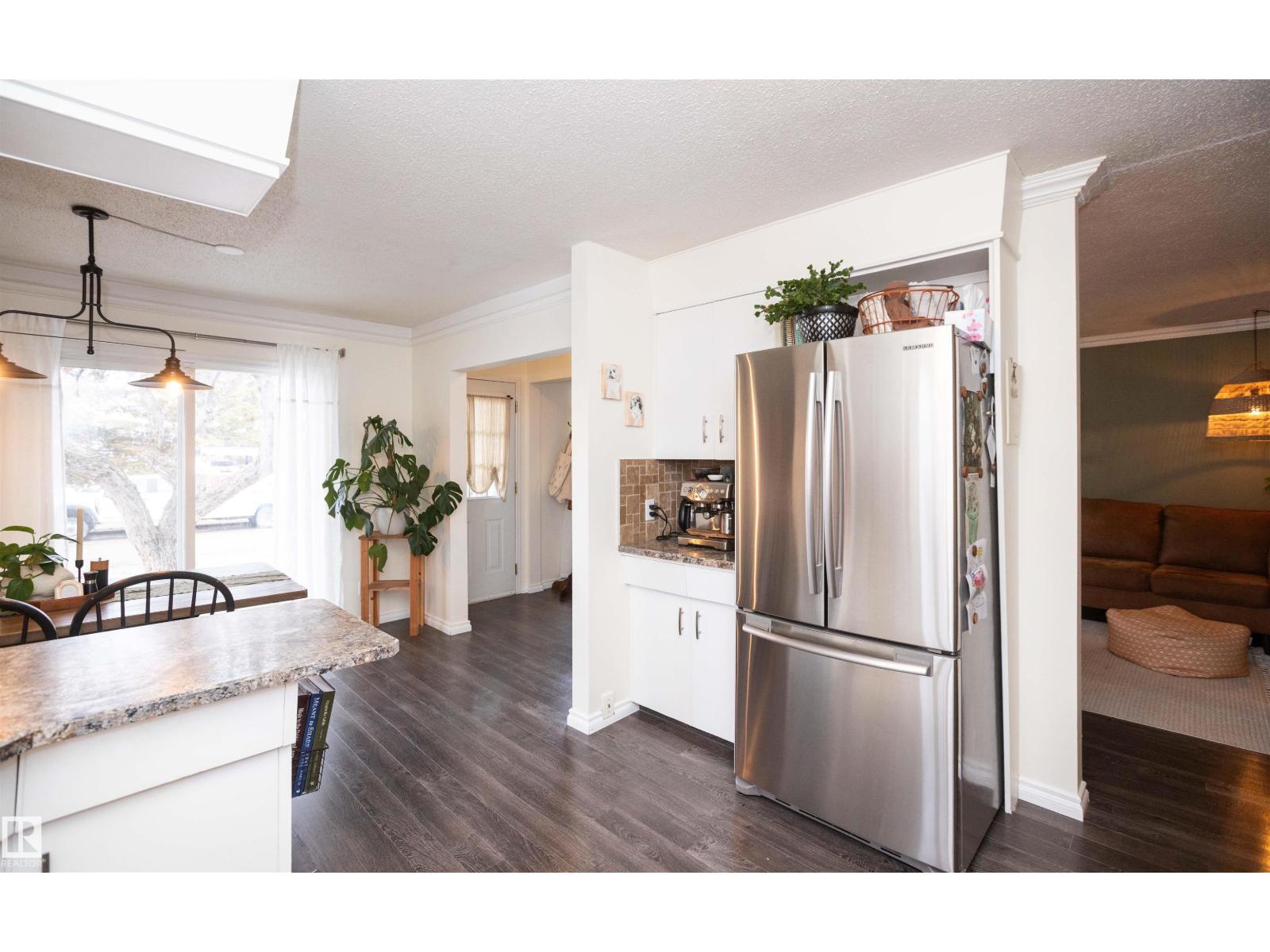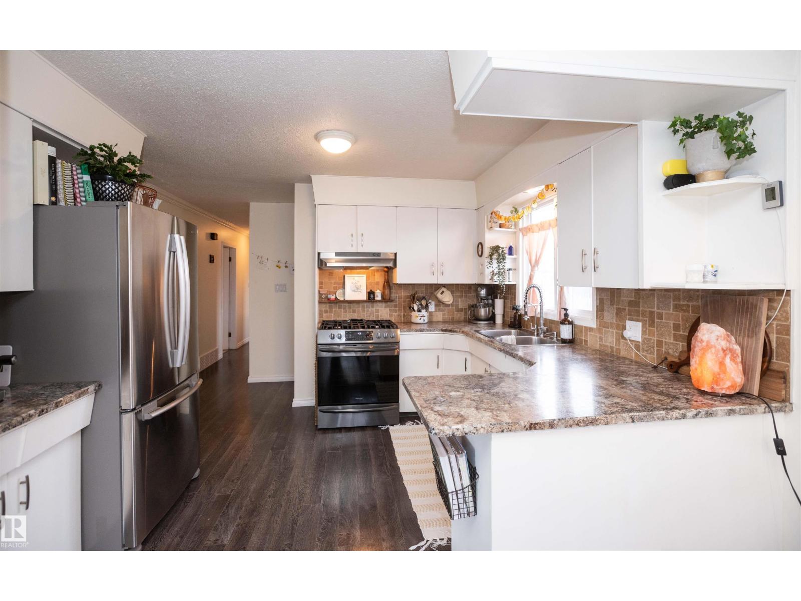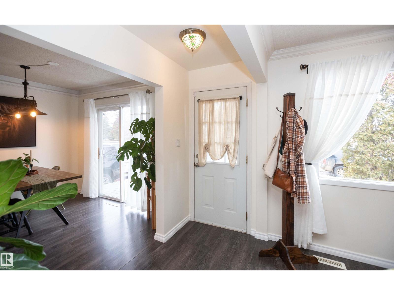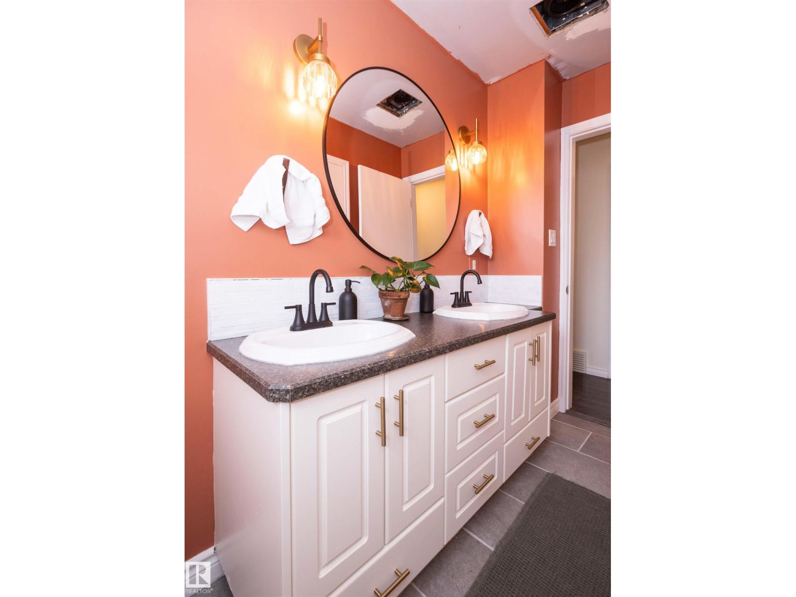 Across from Westlock Elementary school is a lovely home. Bright south-facing kitchen w/white cabinets, nice countertops, beautiful appliances (gas stove 1 yr) & nice eating area. Patio doors to deck on west. Spacious living room is lovely & bright. Three bedrooms main floor- the primary bdrm has full wall of closets. Bdrm 2 - nice size & bdrm 3 makes a nice den or office w/patio doors to large deck. Main floor bath w/double sinks, deep soaker tub & ceramic floor. Downstairs you'll find a massive family room w/beautiful carpet, large bdrm w/French doors & ensuite bath, laundry room w/plenty of space & front load W/D, storage room & furnace room. On your front deck sit and watch the fireworks on July 01. In the rear yard enjoy the beautiful new deck, trees & privacy. There is an area perfect for a garden, also two storage sheds, trees, new lawn & new landscaping! New shingles 2023. Furnace & water tank upgraded - not sure of date. Room for garage at rear or park on front driveway (room for 2) or street. (id:63190)