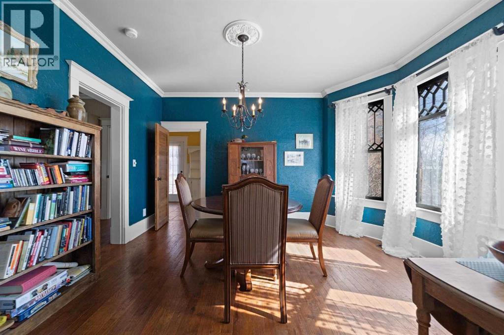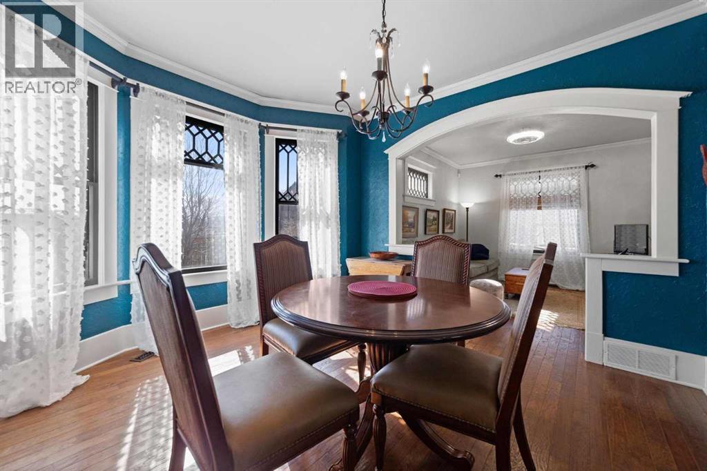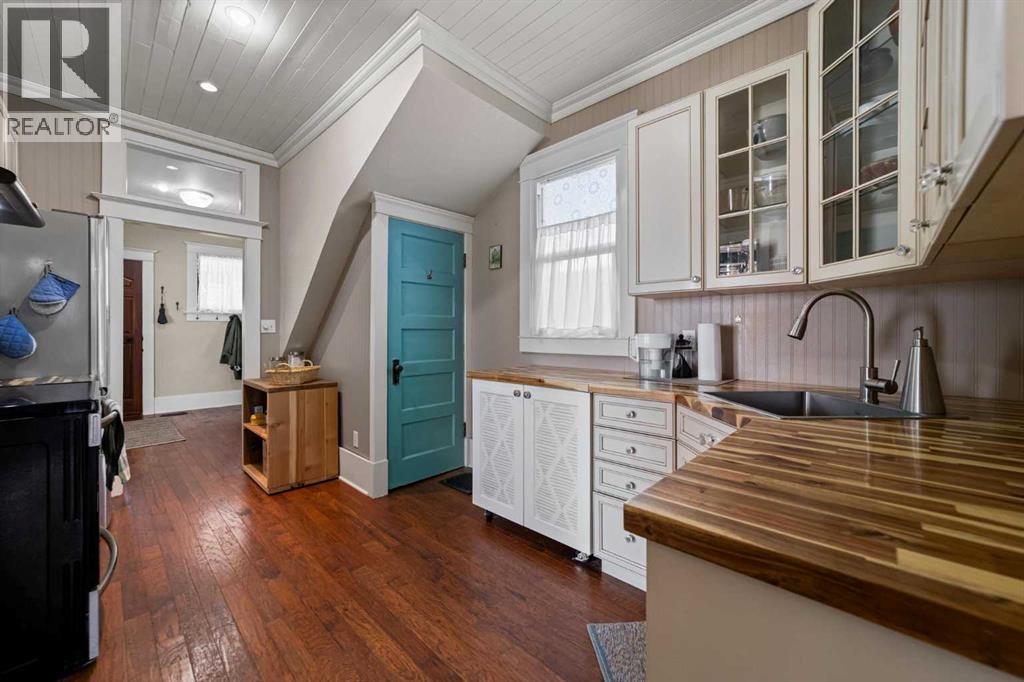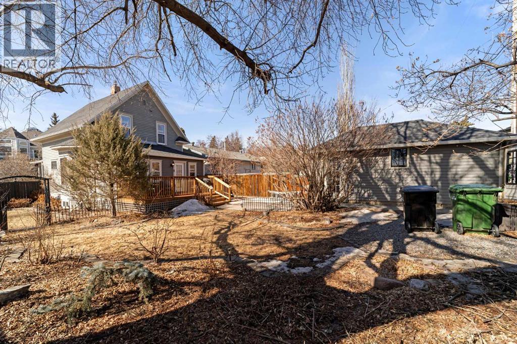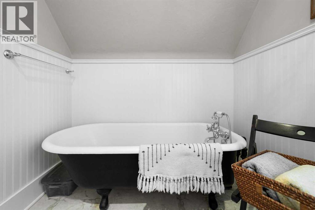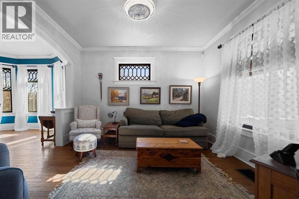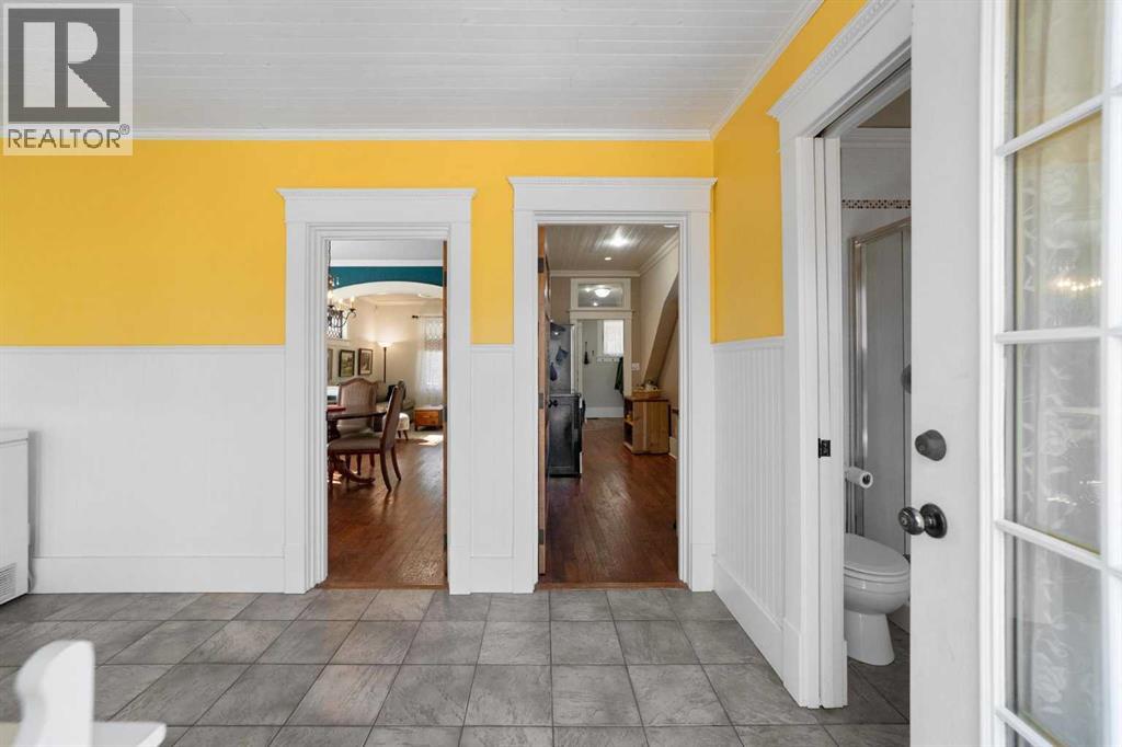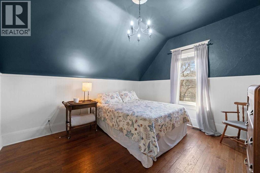This home tells a story, and it's ready for the next chapter with you! The epitome of grandeur, charm and character, this 1912 two story home in the downtown core of Camrose offers convenience, lifestyle and charisma that is a true rarity. Pride of ownership is evident with outdoor living elevated from every direction - a stately covered front porch, fully fenced and landscaped back yard and deck with new stairs, an aggregate patio, fruit trees, flower gardens, raised beds, lilacs, peonies, roses, a rhubarb patch, flowering shrubs and the canopy of a mature poplar tree. In the glory of summer while in full bloom, it creates a park like setting - your very own secret garden escape. Offering timeless curb appeal with classic architectural details and a warm welcoming neutral pallet, you won't be disappointed as you step inside. Rich hardwood floors, crown moulding, wide doorways and trims, tall ceilings and defined living spaces help keep the authenticity of the era while meshing modern and stylish touches like the crystal fandelier in the living room. The large windows flood the main floor with light, and the bay windows in the formal dining room expand your views while enjoying time around the table. There is a 4 season sunroom at the back of the house, along with an updated 3 piece bath. In the kitchen you will appreciate the updated appliances, new butcher block counters and an idyllic balance of openness and separation. The crafted staircase leads you to the second story where you will find another full bath complete with claw foot tub, 3 bedrooms and a generous landing that creates a flex space. In the basement you will find a wide open canvas to finish to your desire or continue to enjoy as a functional laundry, storage and utility room. The HWT was replaced summer of 2025, the furnace in 2024 and there is even central vac and a water softener installed for extra convenience. The single garage has alley access, and you can stroll across the street for groceri es or access to mirror lake, and downtown shops and services are a mere block away. With rich heritage and a bright future, this solid home was built to last - don't wait to book your viewing today! (id:63190)