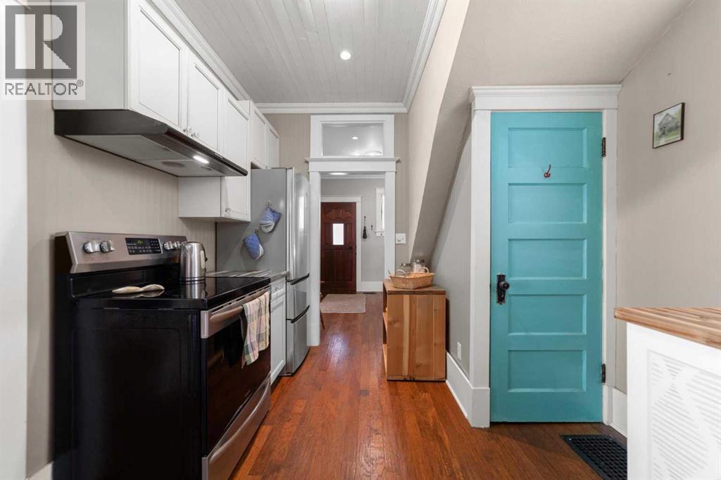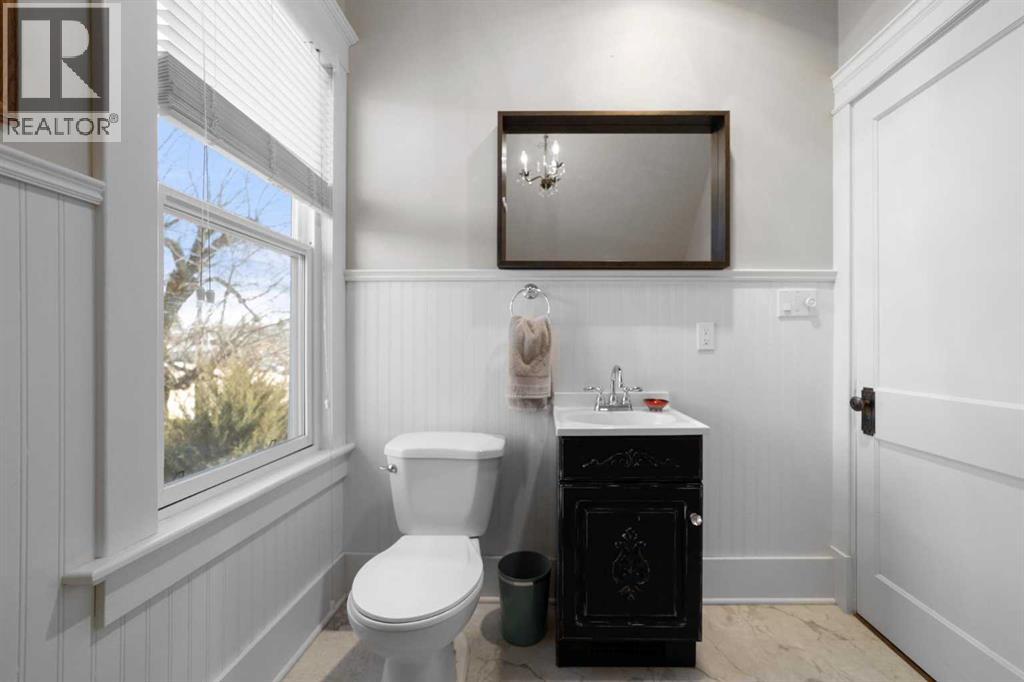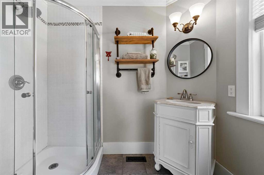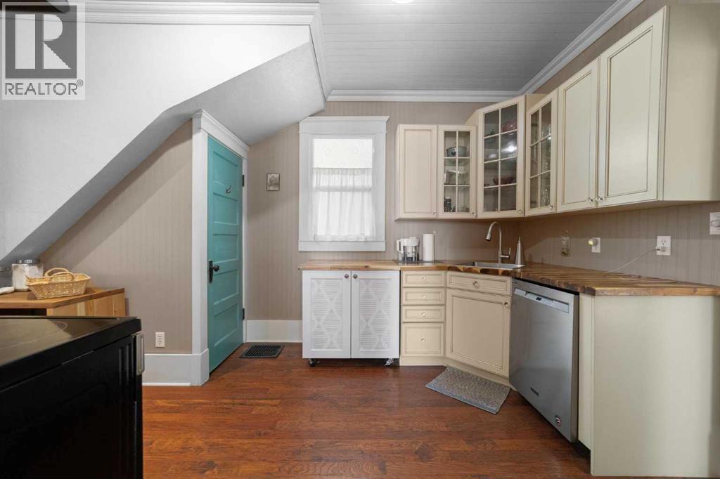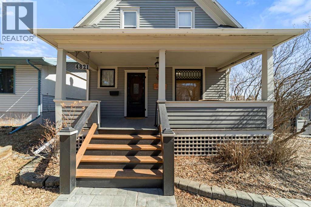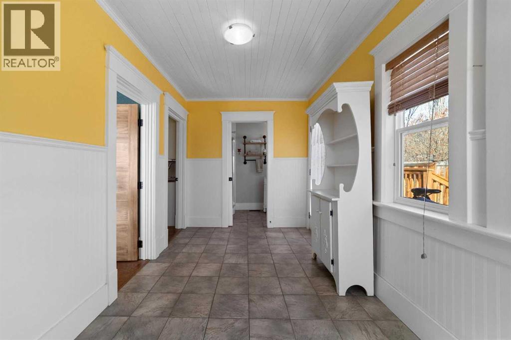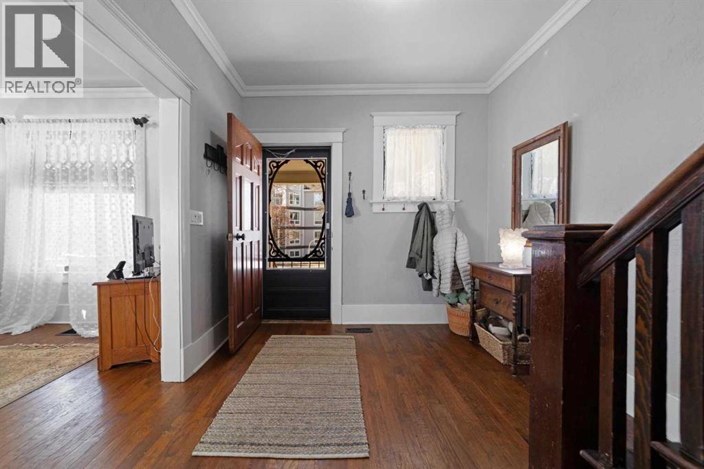 This home tells a story, and it's ready for the next chapter with you! The epitome of grandeur, charm and character, this 1912 two story home in the downtown core of Camrose offers convenience, lifestyle and charisma that is a true rarity. Pride of ownership is evident with outdoor living elevated from every direction - a stately covered front porch, fully fenced and landscaped back yard and deck with new stairs, an aggregate patio, fruit trees, flower gardens, raised beds, lilacs, peonies, roses, a rhubarb patch, flowering shrubs and the canopy of a mature poplar tree. In the glory of summer while in full bloom, it creates a park like setting - your very own secret garden escape. Offering timeless curb appeal with classic architectural details and a warm welcoming neutral pallet, you won't be disappointed as you step inside. Rich hardwood floors, crown moulding, wide doorways and trims, tall ceilings and defined living spaces help keep the authenticity of the era while meshing modern and stylish touches like the crystal fandelier in the living room. The large windows flood the main floor with light, and the bay windows in the formal dining room expand your views while enjoying time around the table. There is a 4 season sunroom at the back of the house, along with an updated 3 piece bath. In the kitchen you will appreciate the updated appliances, new butcher block counters and an idyllic balance of openness and separation. The crafted staircase leads you to the second story where you will find another full bath complete with claw foot tub, 3 bedrooms and a generous landing that creates a flex space. In the basement you will find a wide open canvas to finish to your desire or continue to enjoy as a functional laundry, storage and utility room. The HWT was replaced summer of 2025, the furnace in 2024 and there is even central vac and a water softener installed for extra convenience. The single garage has alley access, and you can stroll across the street for groceri es or access to mirror lake, and downtown shops and services are a mere block away. With rich heritage and a bright future, this solid home was built to last - don't wait to book your viewing today! (id:63190)