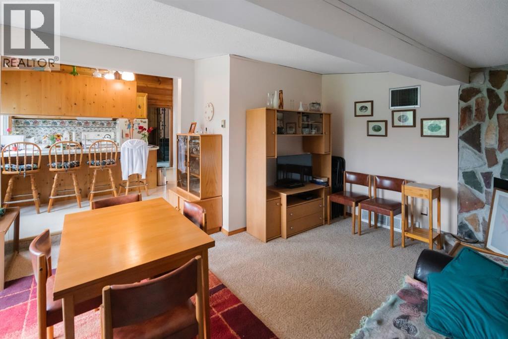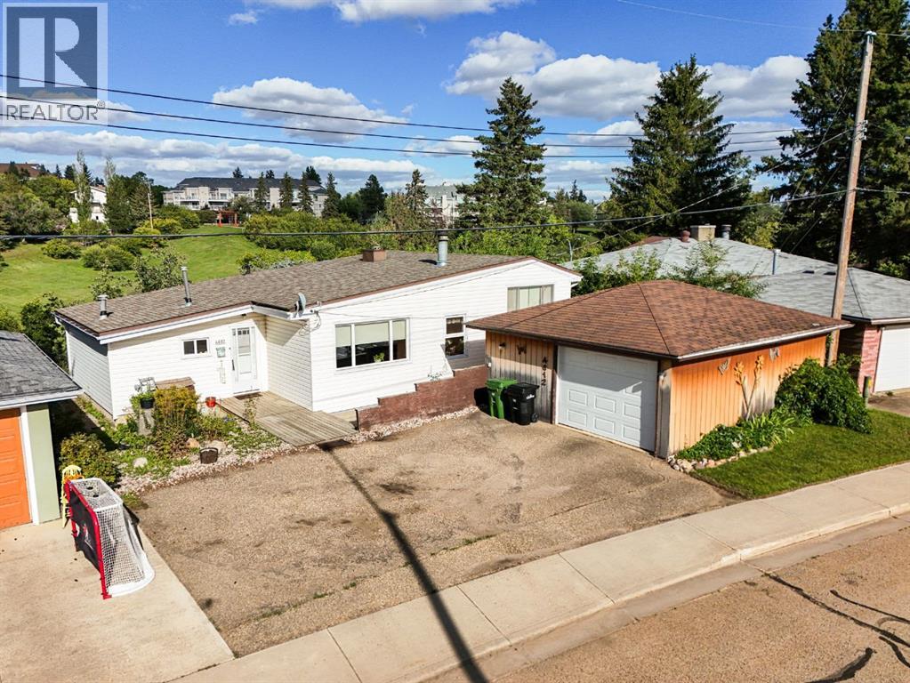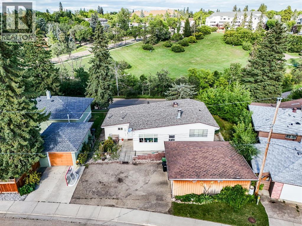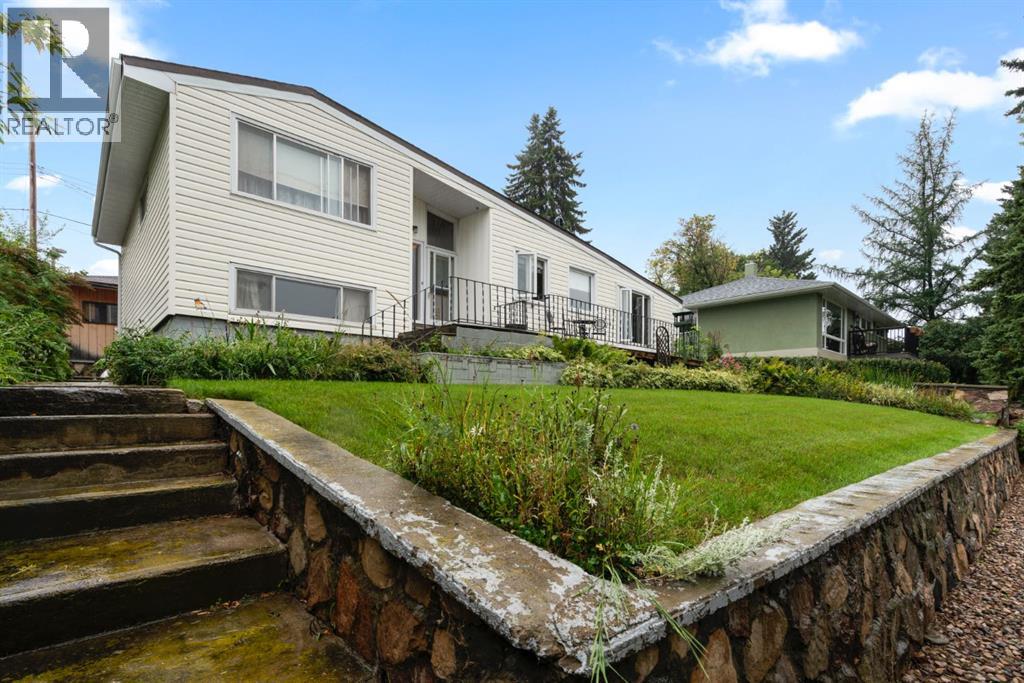 Nestled in an amazing location overlooking Camrose Jubilee Park, this unique 3-level split offers the perfect blend of character and convenience. Just steps from walking trails, the valley, the University of Alberta – Augustana Campus, and the hospital, this home is ideal for those who appreciate both nature and accessibility. Showcasing original wood vaulted ceilings that add warmth and charm, the layout features 2 bedrooms, 2 bathrooms, a cozy living room, a functional kitchen and dining area. Enjoy beautiful views of the park from your home, and take advantage of the double detached garage for ample storage and parking. A truly special find in a sought-after neighbourhood. Mature trees and a large front deck complete this home. Great Opportunity! (id:63190)
