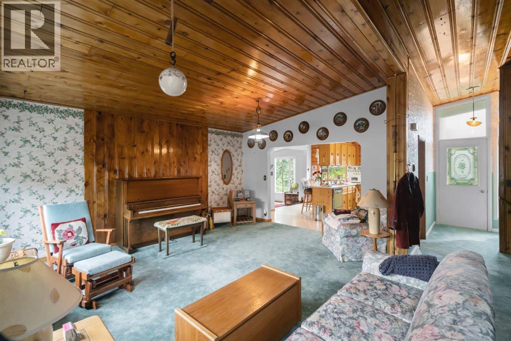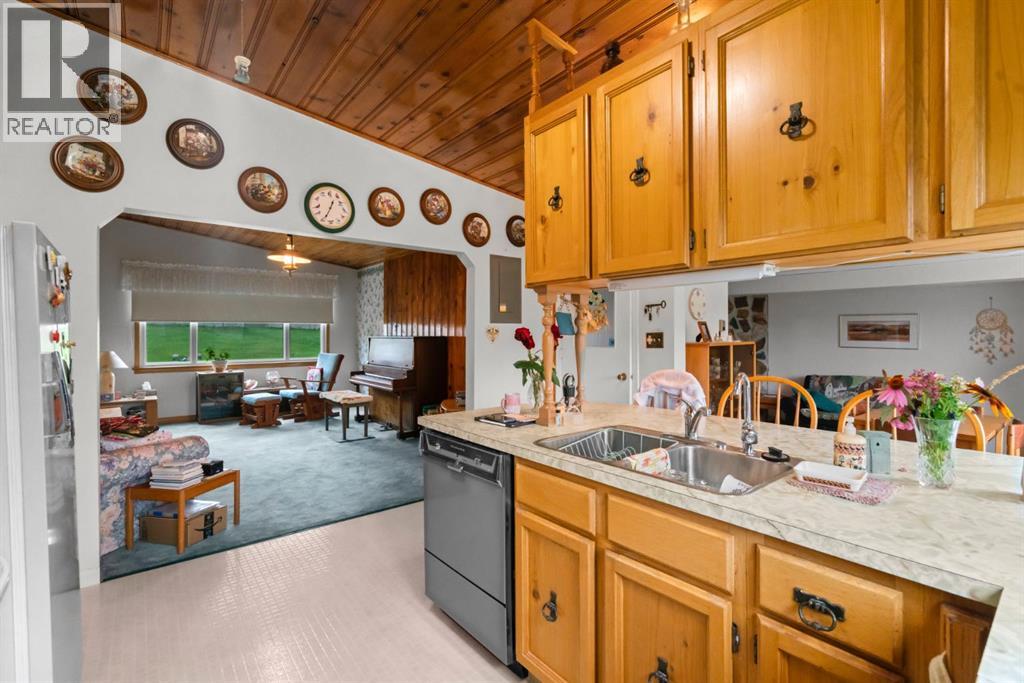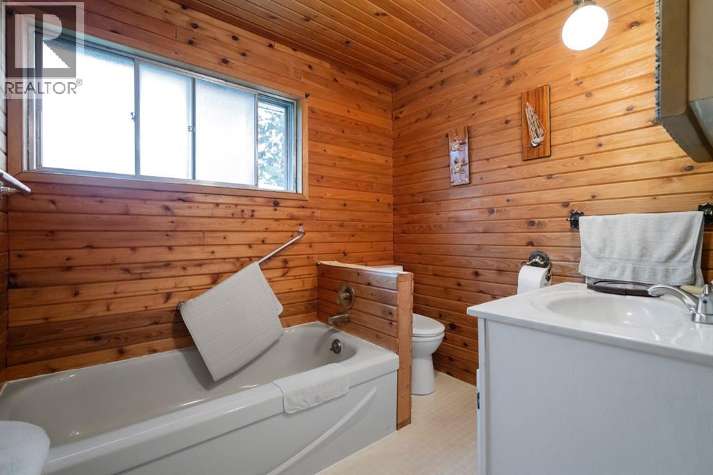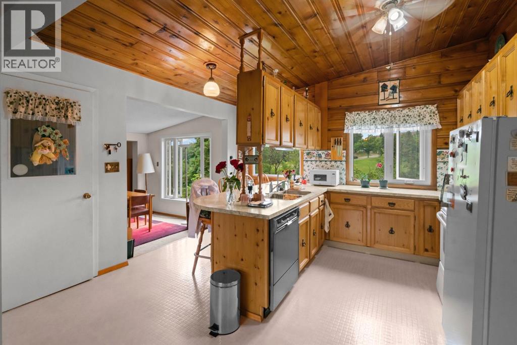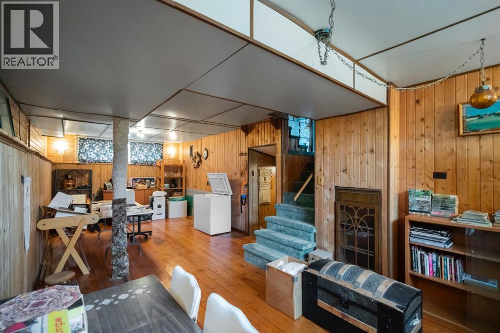Nestled in an amazing location overlooking Camrose Jubilee Park, this unique 3-level split offers the perfect blend of character and convenience. Just steps from walking trails, the valley, the University of Alberta – Augustana Campus, and the hospital, this home is ideal for those who appreciate both nature and accessibility. Showcasing original wood vaulted ceilings that add warmth and charm, the layout features 2 bedrooms, 2 bathrooms, a cozy living room, a functional kitchen and dining area. Enjoy beautiful views of the park from your home, and take advantage of the double detached garage for ample storage and parking. A truly special find in a sought-after neighbourhood. Mature trees and a large front deck complete this home. Great Opportunity! (id:63190)