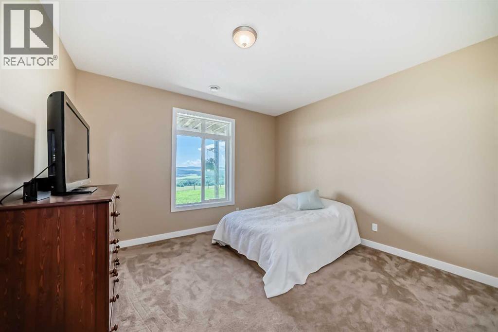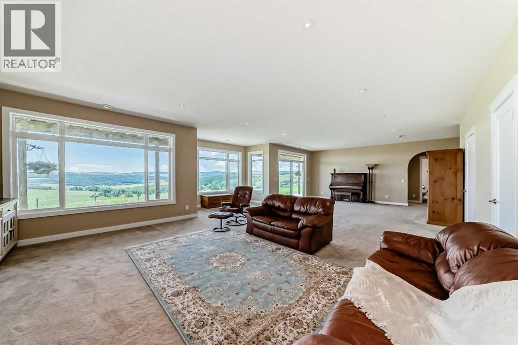 This exceptional 50-acre parcel offers panoramic views of the downtown skyline and foothills, visible from nearly every vantage point on the property. Perfectly located across from the Ann & Sandy Cross Conservation Area and only 2.5 km from the city, you’ll enjoy peaceful country living with quick access to everyday amenities, including Red Deer Lake School and Costco Buffalo Run.This property presents outstanding potential for future development or long-term investment with its gentle sloping land ideal for walk-out sites, multiple access points including a southeast road allowance, and two high producing wells both exceeding 12 gpm.With over 3200 sq ft of developed living space, this 5 bedroom, walk-out bungalow, built in 2016, has views that are as stunning from the main floor 600+ sq ft deck, as they are from the walk-out lower-level’s oversized windows. The heart of the home is the kitchen with rich, espresso-stained cabinetry, sleek granite counters, a massive island for prep or casual dining. The kitchen connects to a bright dining area, living room and large outdoor deck. The main floor has the primary bedroom, attached ensuite, as well as two additional bedrooms, additional full bath and laundry room. The lower level is an open plan with 9’ ceilings and features an expansive rec room, two additional bedrooms, a full bathroom with dual vanities, and a mechanical room. Whether you’re looking to invest, develop, or simply enjoy an expansive rural retreat within minutes of the city, this is an exceptional opportunity. *Note: some images digitally edited. (id:63190)