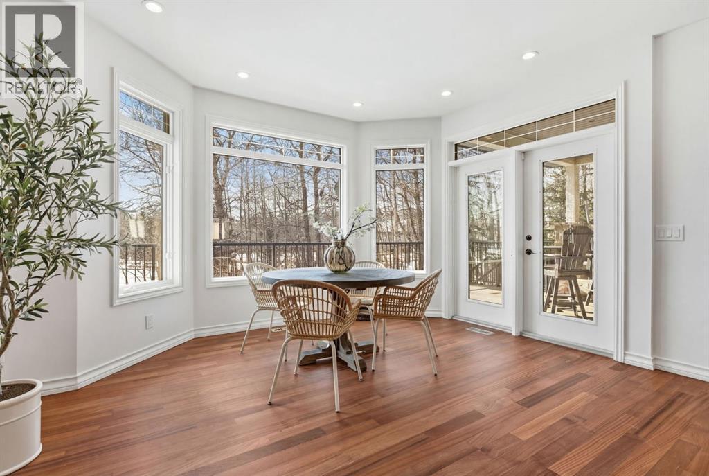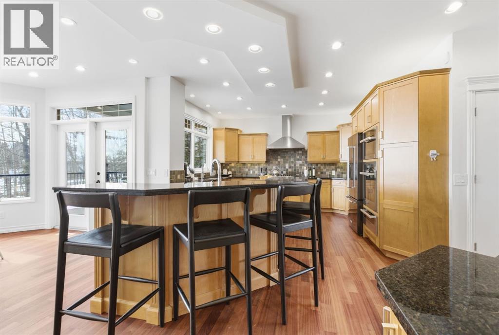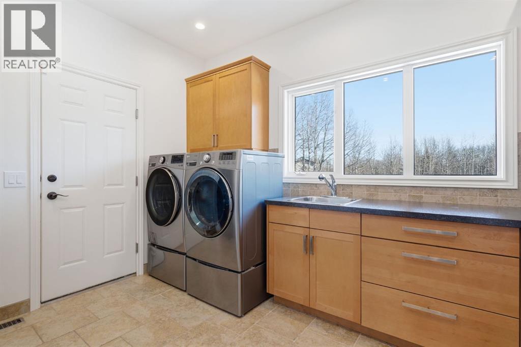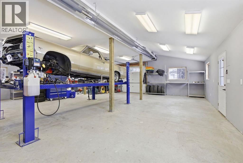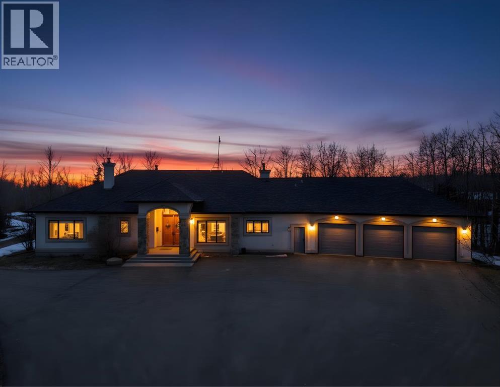 Acreage buyers know the trade-offs. Some acreage properties give you land. Others give you a house. The rare ones give you both and then add a real shop besides. Set on 3.95 acres in Lochend Heights, this walkout bungalow is the kind of property that offers balance from the moment you arrive.The setting feels established and easy to enjoy, with mature trees, open lawn for play, a greenhouse and garden shed, a fenced dog run, and berry bushes that return with the seasons. Wildlife moves through the property, and on the right night, so do the northern lights. Water is supplied through a co-op, eliminating the need for a private well.The shop is not an afterthought here. It was carefully considered, engineered, and built to be a true extension of the property. Heated, lofted, and substantial in scale (40'x40'), with three overhead doors, 220V power, bright workshop lighting, and infrared heat, it adds value in a way buyers will immediately understand. The triple attached garage adds even more to the sense that this property is exceptionally well equipped.Inside, the home is bright in a way that changes the whole experience of acreage living. Windows in nearly every direction keep the outdoors present, refinished African walnut hardwood brings warmth underfoot, and the more traditional layout gives the home a sense of comfort and structure that is becoming harder to find. The rebuilt southwest-facing deck is a major part of this acreage’s way of living. Engineered with substantial beams and finished with heavy-weight UV-stabilized vinyl decking, it is a high-end outdoor space built to be used and enjoyed. Accordion doors off the living room open fully to the deck, allowing the whole main floor to breathe.The main level is both comfortable and well planned, with a separate formal dining room, a bright kitchen, main floor laundry, and two bedrooms positioned away from the main living areas. The primary is tucked into a quieter corner of the home, creating a greate r sense of privacy, while an additional main-floor bedroom offers flexibility for guests or office space. Three bathrooms on the main floor add to the ease of daily living, and the primary ensuite brings another layer of comfort with heated tile flooring, an air jet soaker tub, and a steam shower.The walkout level feels fully part of the home. Large windows keep it bright throughout, while three oversized bedrooms and expansive open areas create room for a second living room, gym, games area, or some combination of all three. Built-in bookshelves, a wet bar, and direct access to the patio give the lower level both character and versatility, even in its more original finish.This is not an acreage that asks you to imagine how it could work. It already does. (id:63190)
