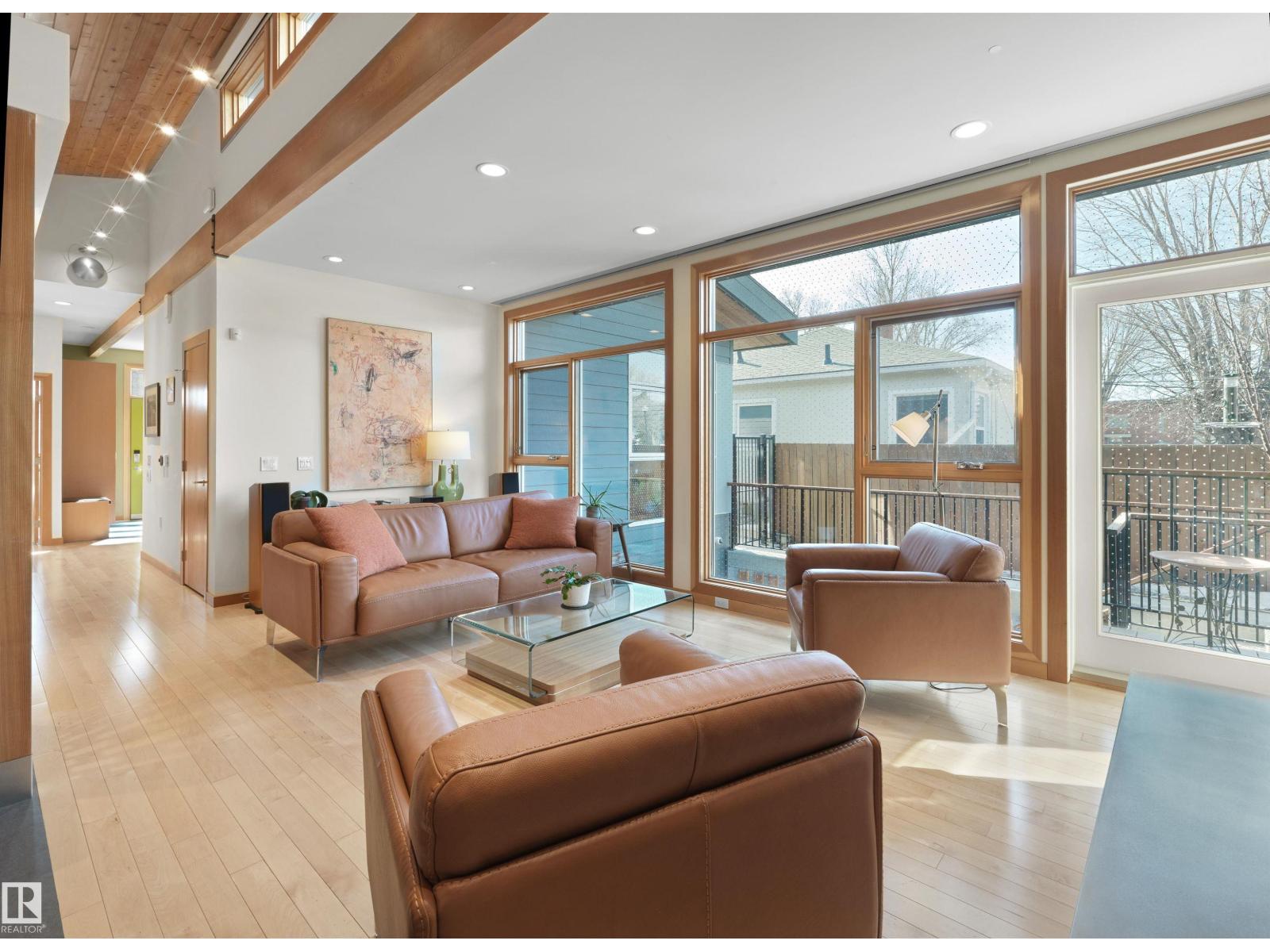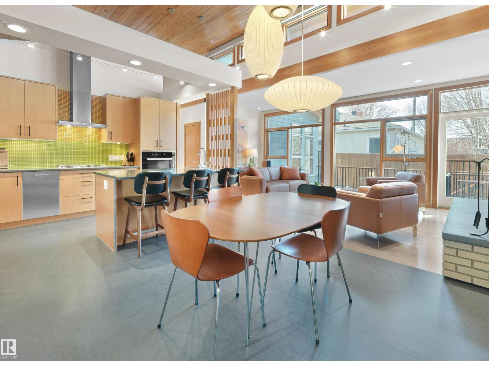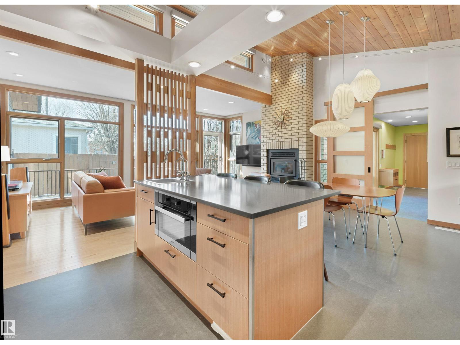 Glenora architecture at its finest - The Mid-Century Modern design aesthetic is typically characterized by clean, simple lines & honest use of materials – blending natural elements with quality construction. This architectural beauty is a true repreparation of MCM! With just over 3487sqft of finished living space (1745sqft main floor) – 3 bedrooms, 3.5 bathrooms, Walkout basement, 20ft ceilings, ELEVATOR, barrier free, in floor heating, wood fired/high efficiency fireplace, 2 laundry rooms, oversized double ATTACHED garage (possible 3 or 4 car garage) & more! From the solid core doors to the wood-framed/oversized windows (all with electric blinds) this home has every luxury feature you are looking for. Custom cabinetry by Waygood, Miele appliances, quartz countertops, AC, outdoor lounge area with motorized screen & heater for year-round use. A truly one of a kind Mid-century Modern architectural home! (id:63190)