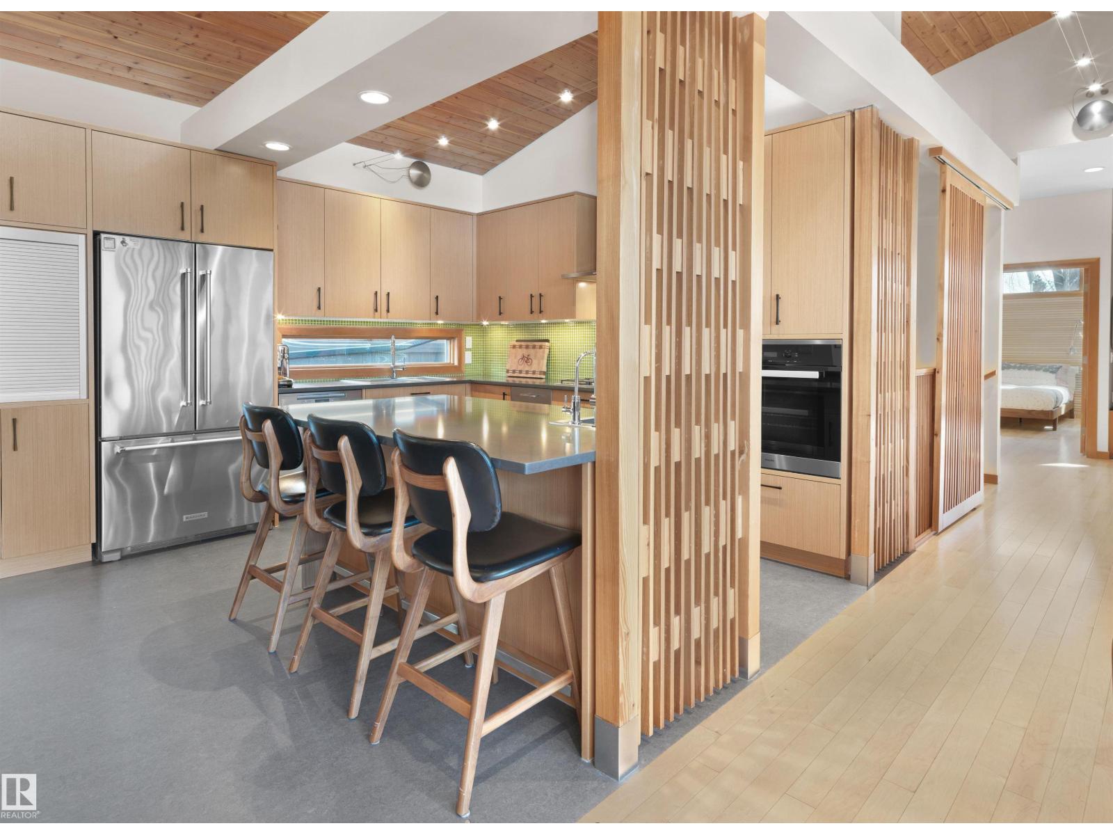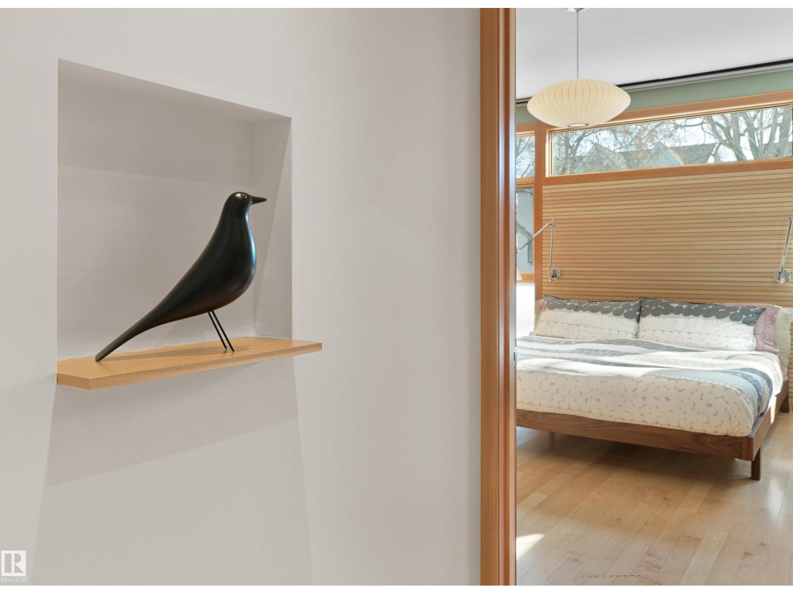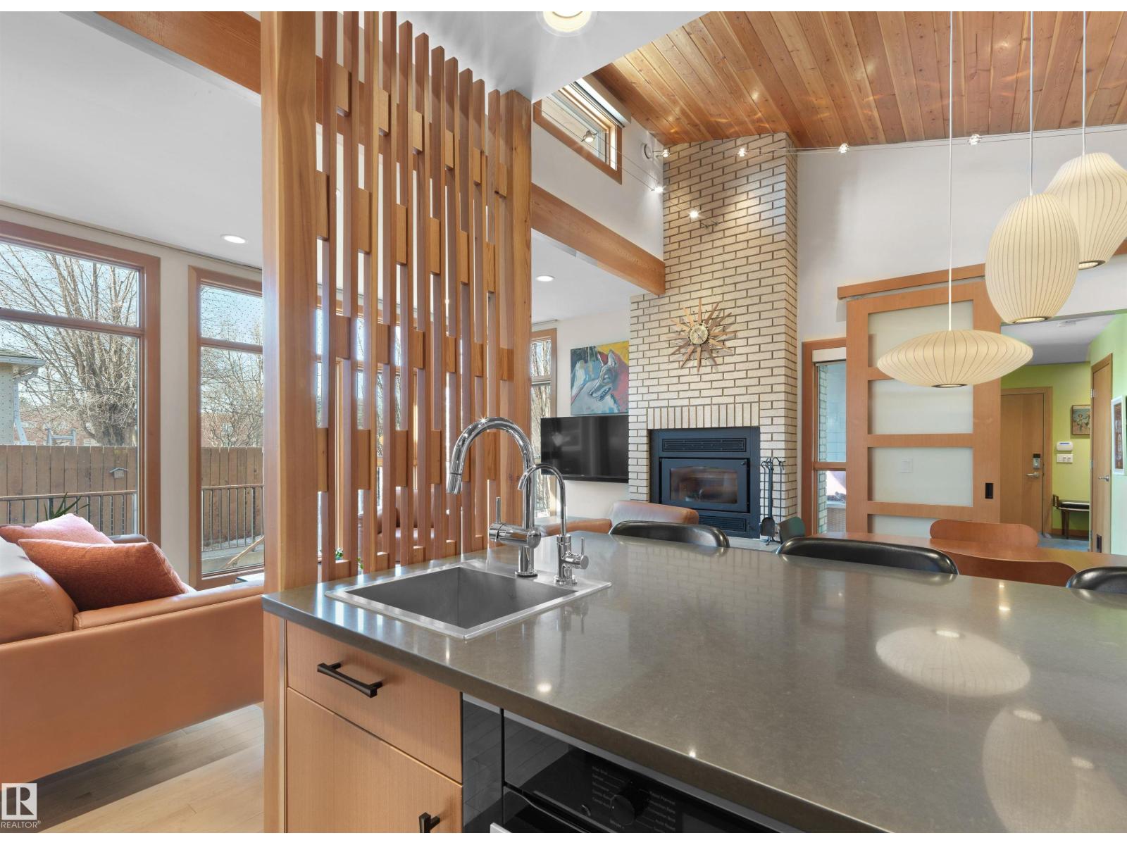 Glenora architecture at its finest - The Mid-Century Modern design aesthetic is typically characterized by clean, simple lines & honest use of materials – blending natural elements with quality construction. This architectural beauty is a true repreparation of MCM! With just over 3487sqft of finished living space (1745sqft main floor) – 3 bedrooms, 3.5 bathrooms, Walkout basement, 20ft ceilings, ELEVATOR, barrier free, in floor heating, wood fired/high efficiency fireplace, 2 laundry rooms, oversized double ATTACHED garage (possible 3 or 4 car garage) & more! From the solid core doors to the wood-framed/oversized windows (all with electric blinds) this home has every luxury feature you are looking for. Custom cabinetry by Waygood, Miele appliances, quartz countertops, AC, outdoor lounge area with motorized screen & heater for year-round use. A truly one of a kind Mid-century Modern architectural home! (id:63190)