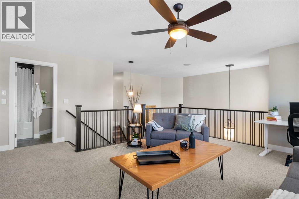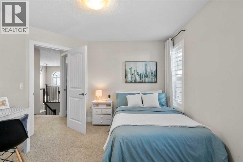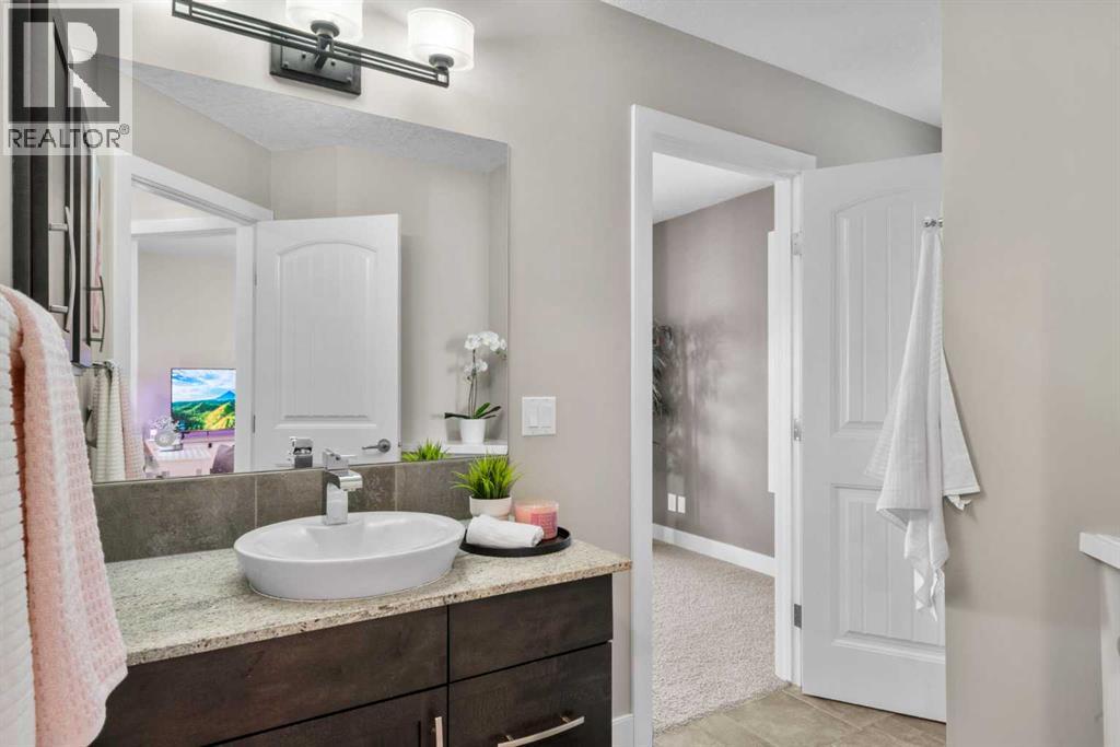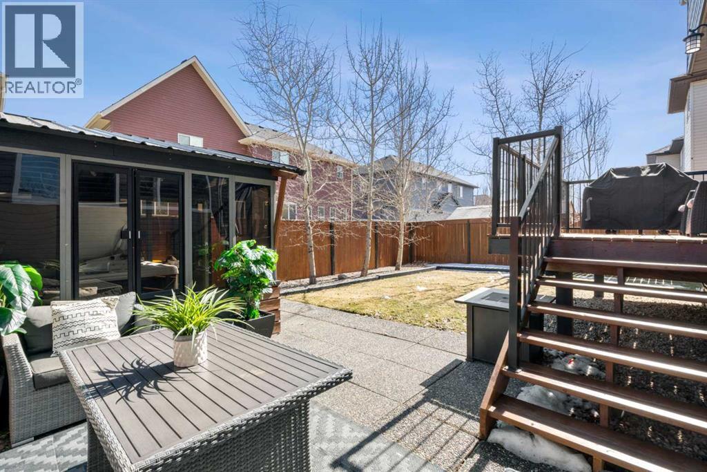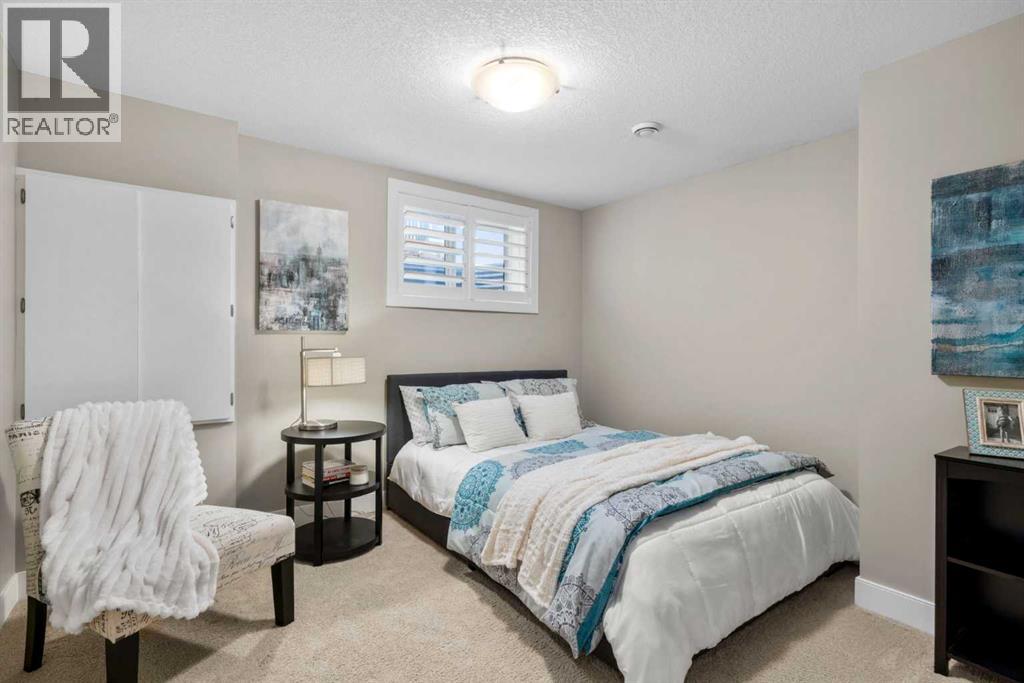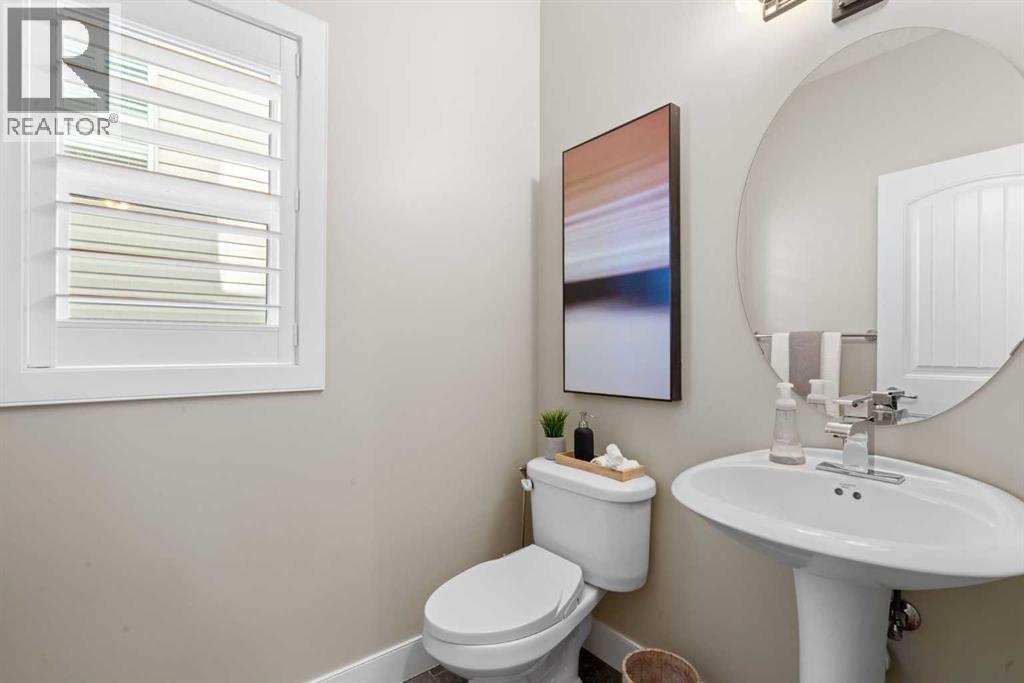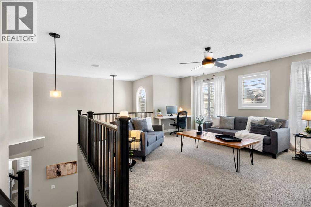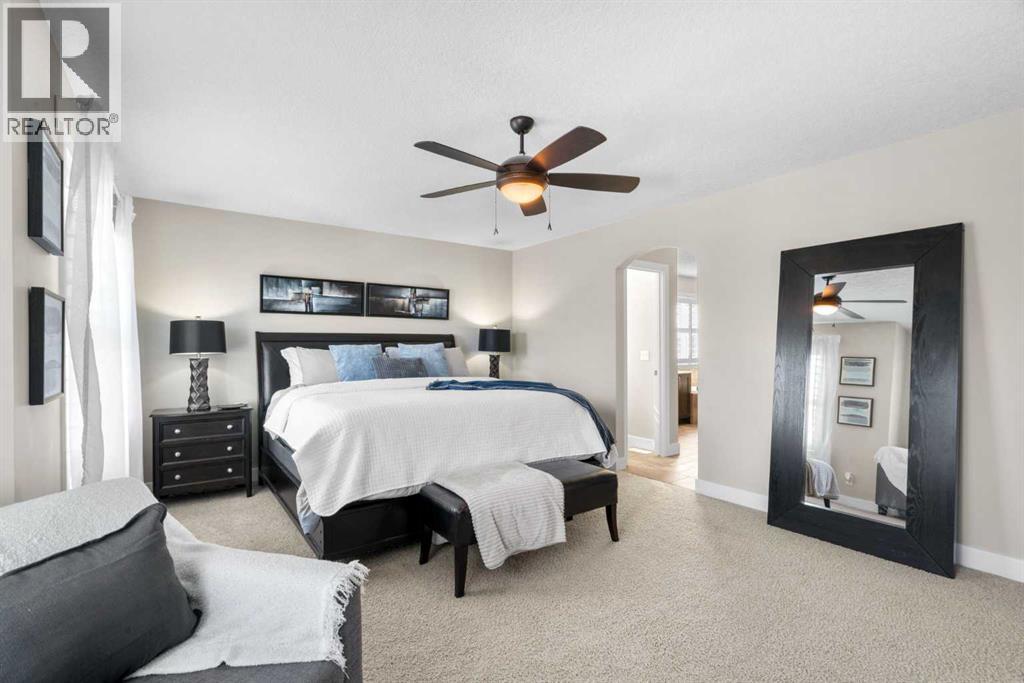 Welcome to this elegantly designed luxury residence offering nearly 4,000 sq ft of sophisticated living space, thoughtfully crafted to balance comfort and functionality. From the moment you enter, you’re greeted by a bright, airy interior featuring 9’ ceilings, rich hardwood flooring, and an abundance of natural light, creating a warm and refined atmosphere.The main level showcases a striking open-concept layout. The chef-inspired kitchen is a true showpiece, featuring a stunning oversized island, extensive cabinetry, and a walk-through pantry connecting seamlessly to a spacious mudroom. The inviting living room is anchored by a gas fireplace, while a private main-floor office offers a quiet and versatile workspace.Upstairs, the primary suite is a luxurious retreat, complete with a spa-inspired ensuite and expansive walk-in closet. Completing the upstairs is a spacious bonus room with fireplace and two additional generous sized bedrooms—both with walk-in closets—provide exceptional comfort.The fully developed basement extends the home’s living space with a wet bar, expansive recreation area, third fireplace, fourth bedroom, full bathroom, and ample storage—perfect for entertaining and family living.Step outside to a beautifully landscaped backyard with a deck, patio, gazebo, and hot tub, creating a serene, resort-inspired setting—perfect for entertaining or unwinding in style and comfort.Ideally located on a quiet street in one of Airdrie’s most sought-after communities, with creekside pathways, parks, schools, shopping, restaurants and transit all close by, this is a rare opportunity you won’t want to miss. (id:63190)