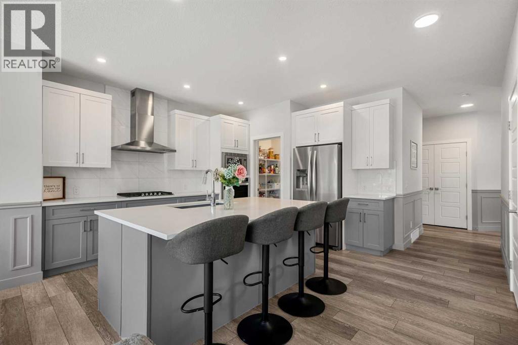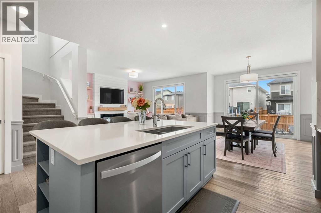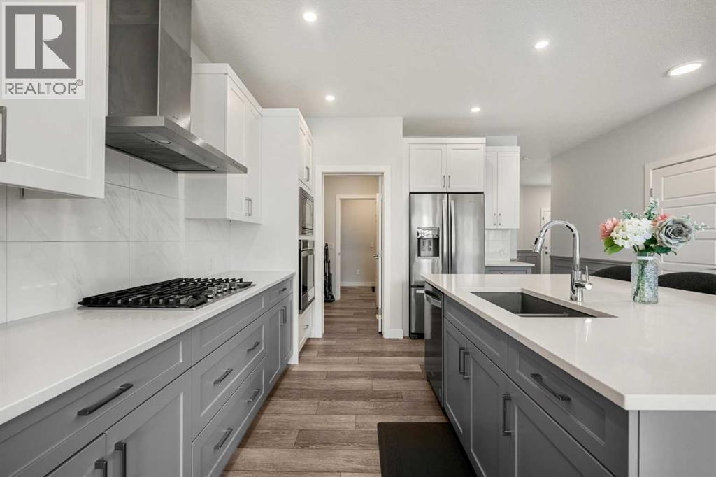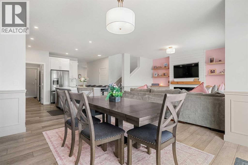 Welcome to this beautifully finished 2-storey home in the vibrant community of Heartland in Cochrane, offering a perfect blend of modern design, family-friendly functionality, and stylish living throughout.Step inside to a bright and open main floor featuring wide-plank flooring, large windows, and a thoughtfully designed layout. The living room is warm and inviting, highlighted by a sleek modern fireplace with custom built-ins and designer accents, creating the perfect space to relax or entertain. The kitchen is a true centerpiece, showcasing quartz countertops, stainless steel appliances, a gas cooktop, built-in wall oven and microwave, full-height cabinetry, and a large central island with seating — ideal for hosting and everyday living. The dining area flows seamlessly to the backyard, while a main floor office, a convenient 2-piece bath, and a functional mudroom complete this level.Upstairs, you’ll find an exceptional layout with four spacious bedrooms, including a stunning primary retreat featuring a luxurious 5-piece ensuite with dual vanities, a soaker tub, glass shower, and a walk-in closet. A second full bathroom, upper-level laundry, and a generous bonus/family room provide added comfort and flexibility for growing families.The fully developed basement offers even more living space with a large recreation area, perfect for movie nights or entertaining, along with a wet bar, an additional bedroom, and a full bathroom, ideal for guests or extended family.Outside, enjoy a fully fenced backyard with space for kids, pets, and outdoor gatherings, all set within a quiet and welcoming neighbourhood. Living in Heartland means access to parks, playgrounds, pathways, and nearby amenities, all within a short drive.Cochrane is known for its unique blend of small-town charm and outdoor adventure. Residents enjoy a vibrant downtown with local shops, cafes, and restaurants, along with easy access to amenities and services. Outdoor enthusiasts will love the prox imity to the Bow River pathways, hiking and biking trails, golf courses, and the Rocky Mountains, making weekend getaways and year-round recreation effortlessly accessible. (id:63190)
