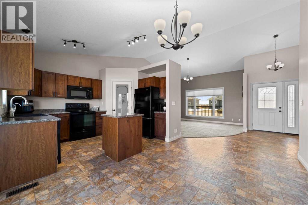 Step into this wonderful Forestburg family home and feel instantly welcomed. The roomy front entry opens into a large living area and a bright, well designed kitchen complete with an island, pantry, and French doors leading to a spacious back deck, perfect for morning coffee or summer BBQs. Three main floor bedrooms, including a primary with ensuite, offer comfortable living for the whole family. You’ll absolutely love the bonus room above the garage, whether you imagine it as a games room, movie space, or a quiet hideaway. Main-floor laundry adds everyday convenience. Downstairs, the huge family room gives you endless possibilities, along with another bedroom, a 3 piece bath, and an office that could easily become a fifth bedroom. In-floor heating in both the basement and garage keeps the home warm and cozy. The fully fenced, landscaped yard provides plenty of outdoor space and yes, there’s room for your RV too. (id:63190)