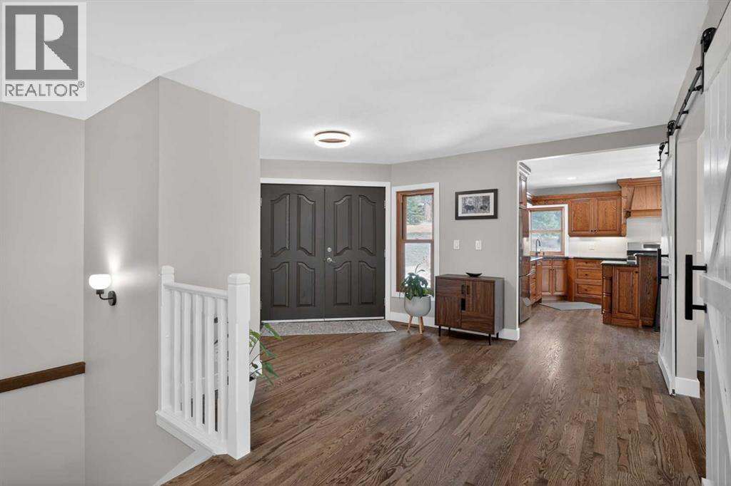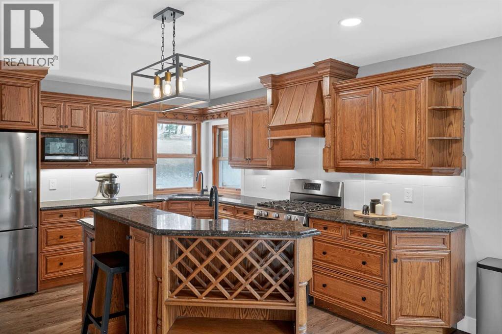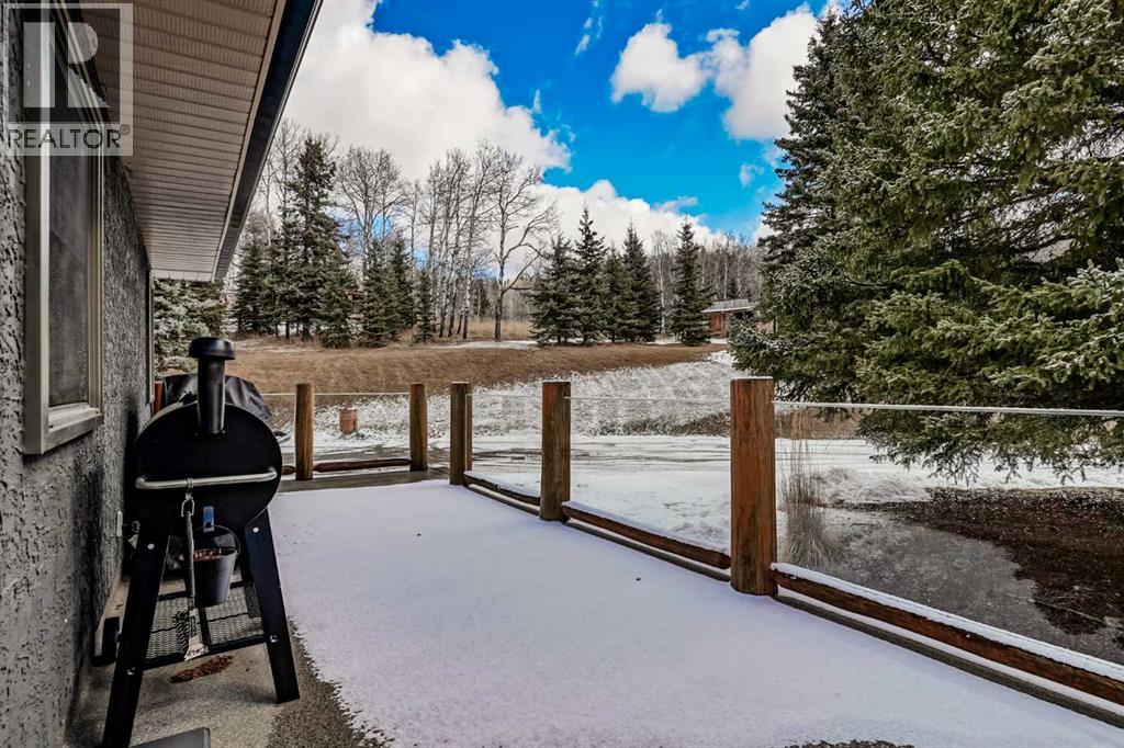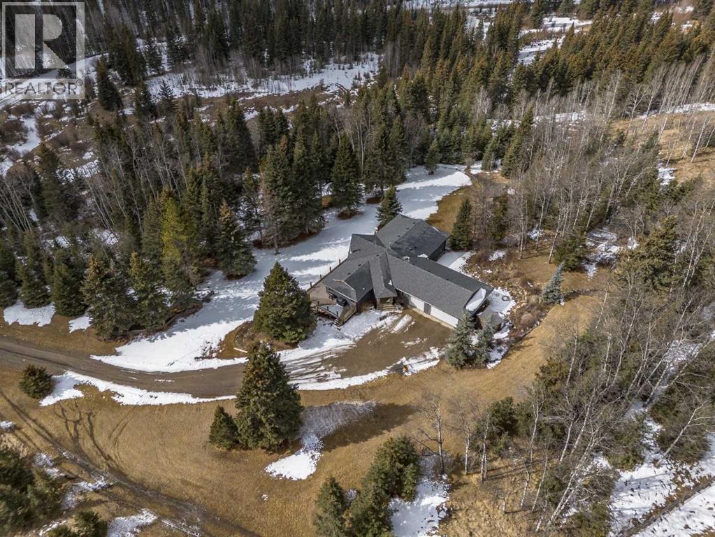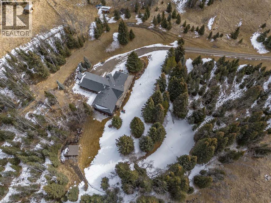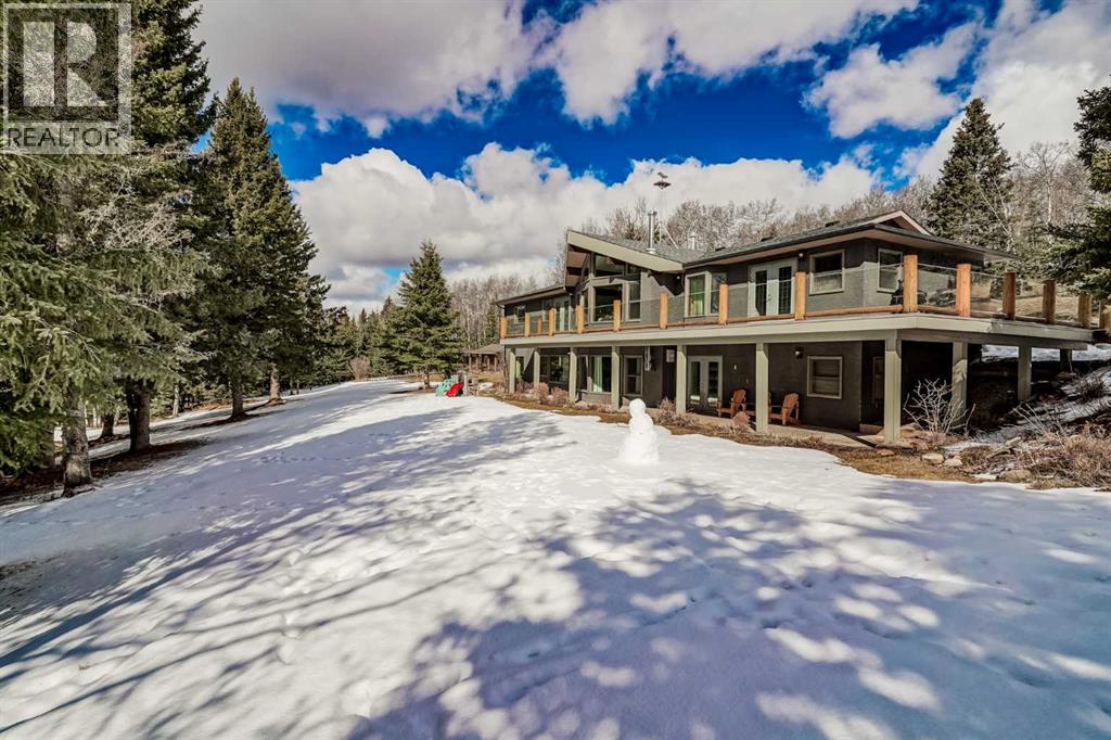 Discover your own private paradise on this stunning 19.85-acre estate, where the Dogpound Creek meanders through a park-like landscape at the rare convergence of lush forest, rolling foothills, and tranquil water features. This beautifully updated walkout bungalow offers a sprawling 4,195 square feet of developed living space, featuring 5 spacious bedrooms and 4 updated bathrooms that provide a cohesive feel throughout. Recent transformations include the addition of a second kitchen and a luxurious second primary suite in the walkout basement—perfect for multi-generational living—while the main level shines with stunning a-frame style living room overlooking your land, and a 2020 exterior overhaul consisting of a new roof, gutters, and a complete deck rebuild. Nestled within a forest of aspen, spruce, and pine, the property is a haven for local bird species and an equestrian’s dream, boasting full fencing, three paddocks, horse shelter, hay shed and an automatic watering system across beautiful undulating terrain. Perfectly positioned for families, you are located on bus route just 15 minutes from the highly regarded Westbrook School, and the home is rounded out by an oversized, heated attached triple garage. This rare sanctuary perfectly balances secluded country living with everyday accessibility, only 30 minutes to Cochrane, a lifestyle that is truly second to none. (id:63190)