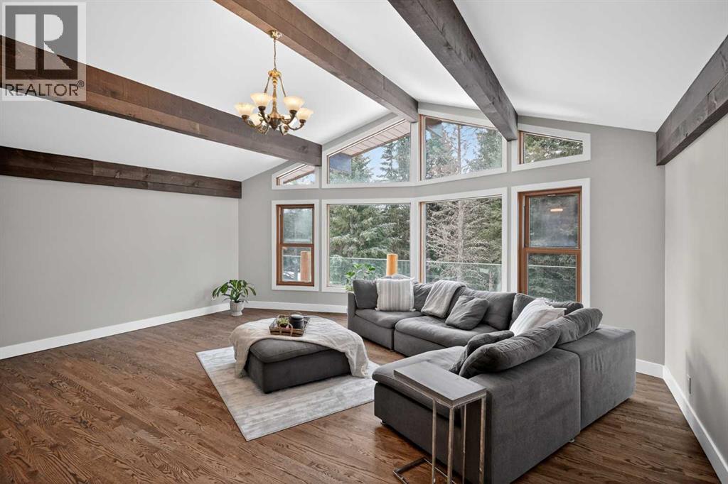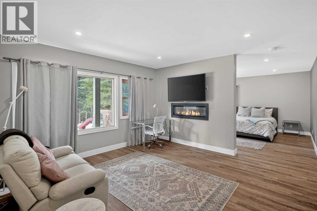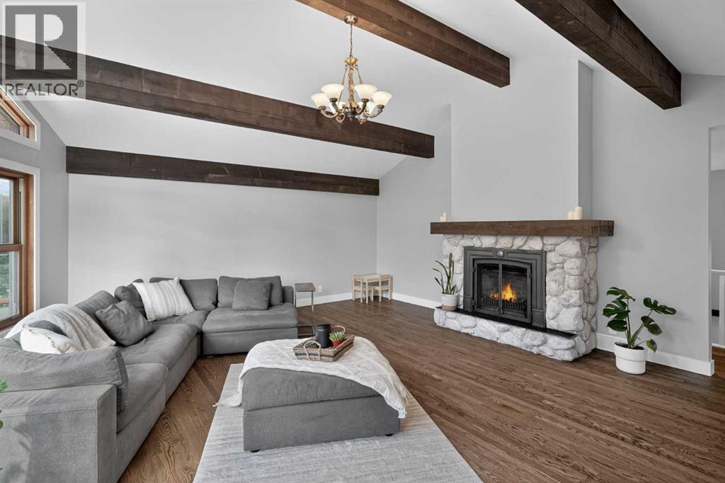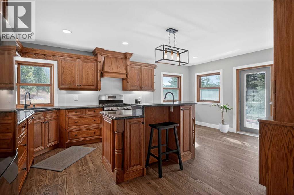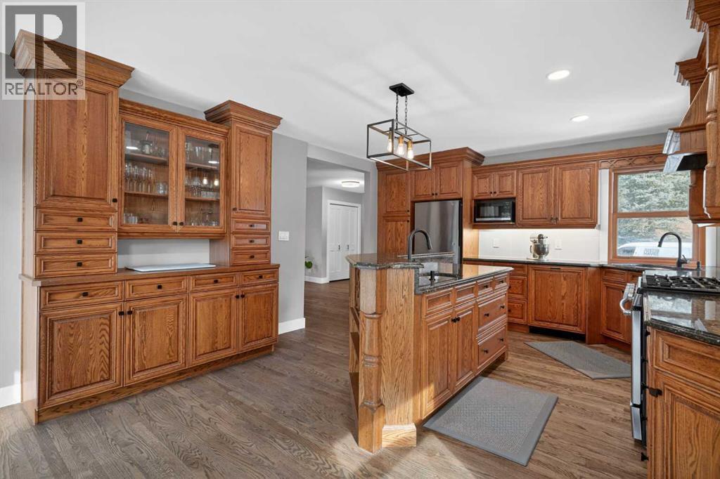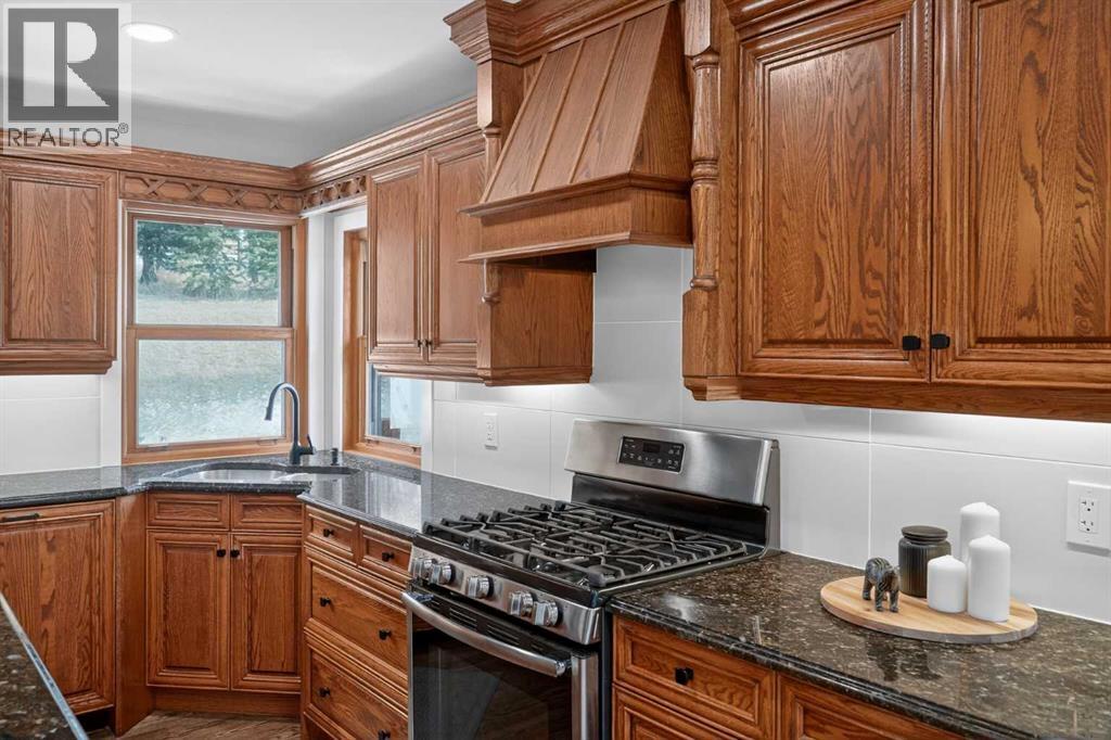 Discover your own private paradise on this stunning 19.85-acre estate, where the Dogpound Creek meanders through a park-like landscape at the rare convergence of lush forest, rolling foothills, and tranquil water features. This beautifully updated walkout bungalow offers a sprawling 4,195 square feet of developed living space, featuring 5 spacious bedrooms and 4 updated bathrooms that provide a cohesive feel throughout. Recent transformations include the addition of a second kitchen and a luxurious second primary suite in the walkout basement—perfect for multi-generational living—while the main level shines with stunning a-frame style living room overlooking your land, and a 2020 exterior overhaul consisting of a new roof, gutters, and a complete deck rebuild. Nestled within a forest of aspen, spruce, and pine, the property is a haven for local bird species and an equestrian’s dream, boasting full fencing, three paddocks, horse shelter, hay shed and an automatic watering system across beautiful undulating terrain. Perfectly positioned for families, you are located on bus route just 15 minutes from the highly regarded Westbrook School, and the home is rounded out by an oversized, heated attached triple garage. This rare sanctuary perfectly balances secluded country living with everyday accessibility, only 30 minutes to Cochrane, a lifestyle that is truly second to none. (id:63190)
