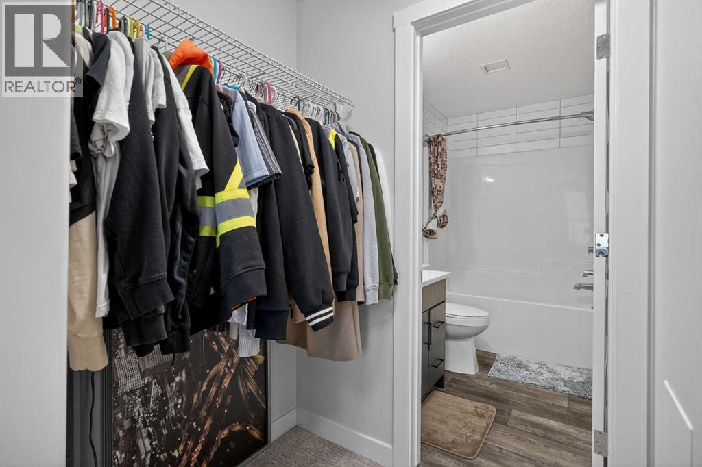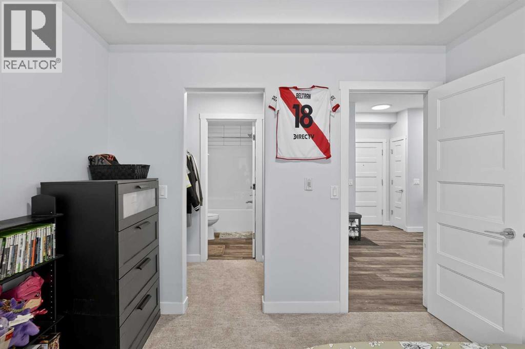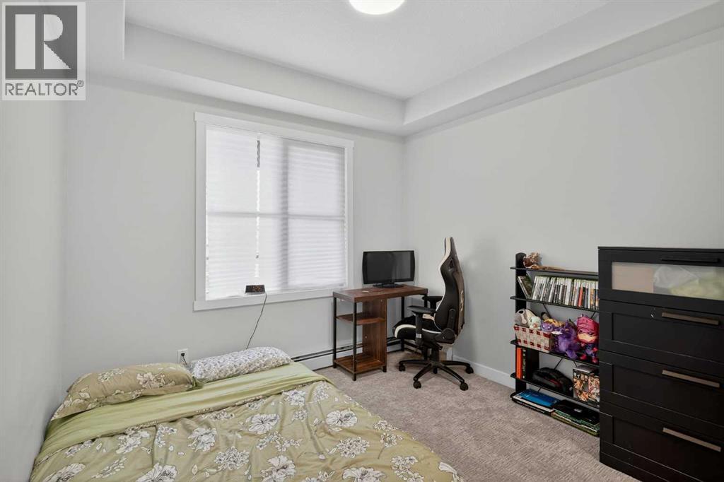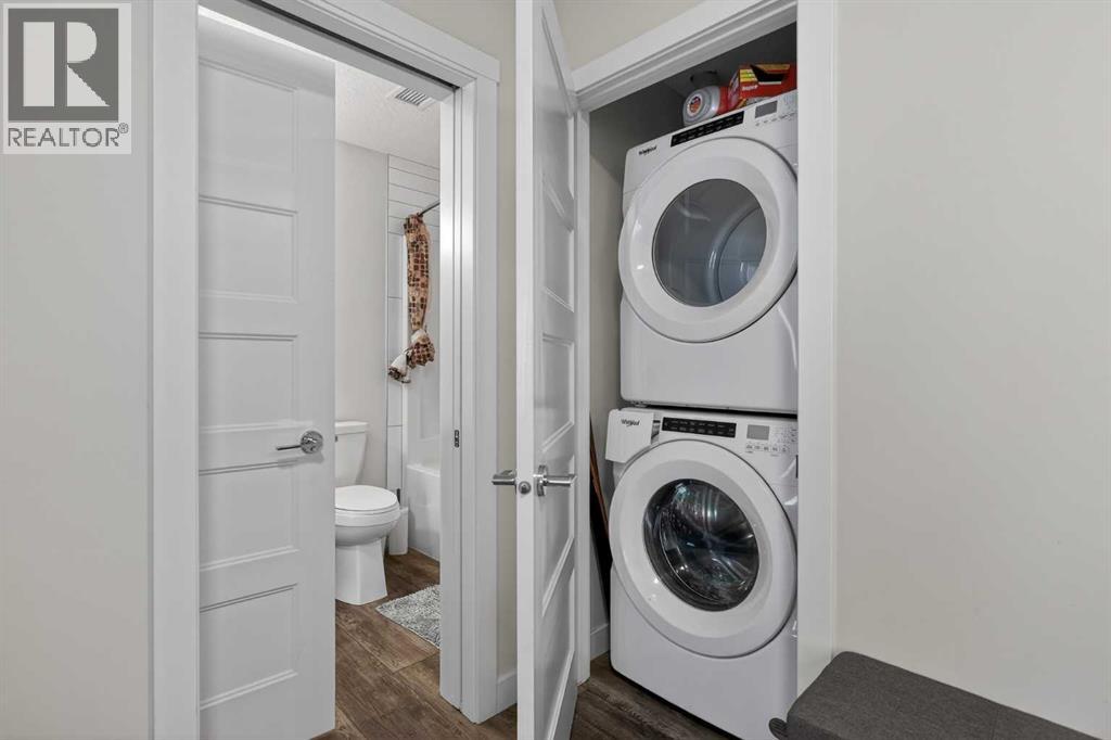 Experience elevated modern living in this exceptional third-floor condominium, perfectly situated in the vibrant new community of Wolf Willow. This home has been meticulously curated with premium upgrades, including soaring nine foot ceilings and durable luxury vinyl plank flooring, creating a sophisticated environment that seamlessly blends high-end style with everyday convenience.The heart of the home is a chef-inspired kitchen designed for both functionality and aesthetic appeal, featuring elegant quartz countertops, full-height cabinetry, and a versatile center island. The space is fully equipped with a top-tier KitchenAid stainless steel appliance package, while the open-concept layout extends naturally to a contemporary balcony offering unobstructed views. This residence accommodates two spacious bedrooms and two elegant full bathrooms, each thoughtfully designed with integrated vanity drawers to maximize storage.Beyond the living quarters, the property offers significant value with in-suite laundry, a titled underground parking stall, and a dedicated storage cage conveniently located directly in front of the parking space. Nestled along the Bow River Valley and adjacent to Fish Creek Park, the location provides unparalleled access to nature while remaining highly connected via Macleod Trail and Stoney Trail. With quick possession available, this professionally designed condo offers a premier turnkey opportunity in one of Calgary’s most desirable southern communities. (id:63190)