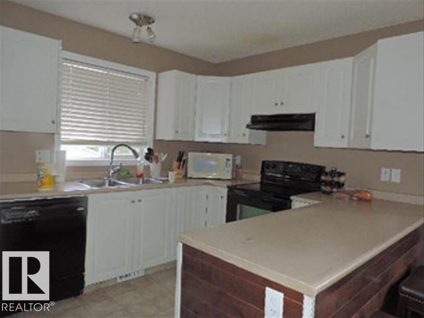Great Location, just walking distance to the Lake and Marina. A Walk-Out basement with its Own Kitchen and woodstove in the Family room is another. Main level boasts Open Concept living, dining, and kitchen with hardwood floors and new paint. Two bedrooms with carpets, 4 pc bath and main floor laundry complete this floor. Kitchen opens to a deck overlooking a good size backyard with a shed for storage and firepit in the middle. Another deck at the front of the house. Front yard with 2 parking stalls on the one side and landscaped on the other. Walkout Basement Features two good size bedrooms, 3 pc bath with standing shower, Kitchen and spacious family room with wood stove to keep you warm in our cold winters. Laminate flooring throughout this floor and linoleum in the bathroom. Close To all Amenities, Lake, and Schools. (id:63190)
