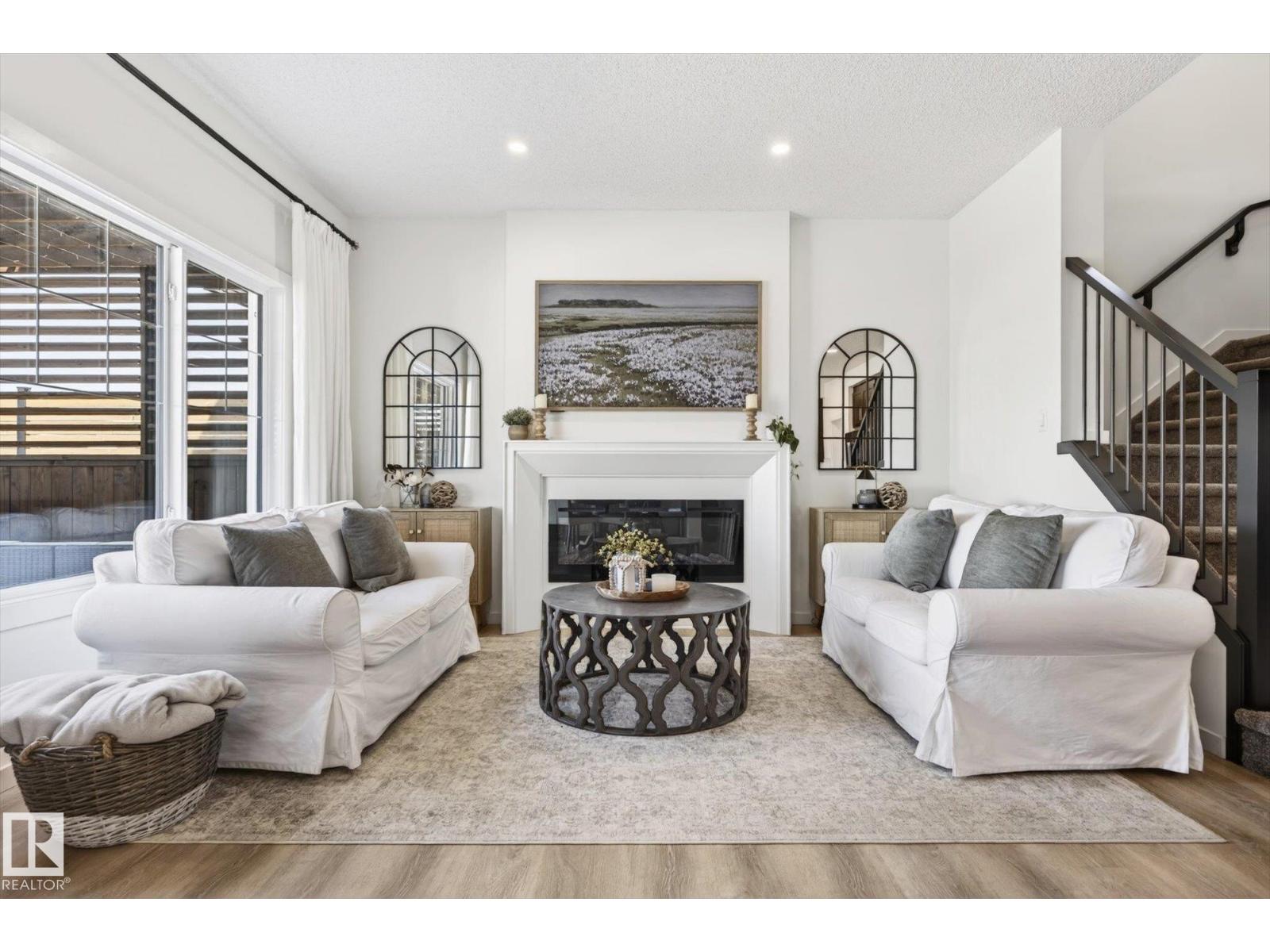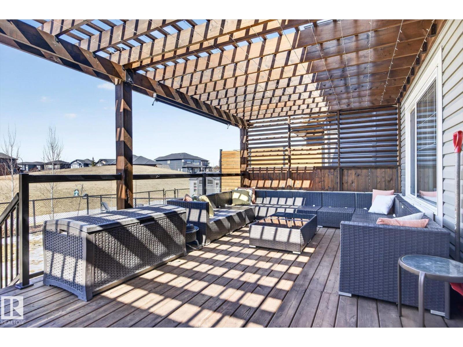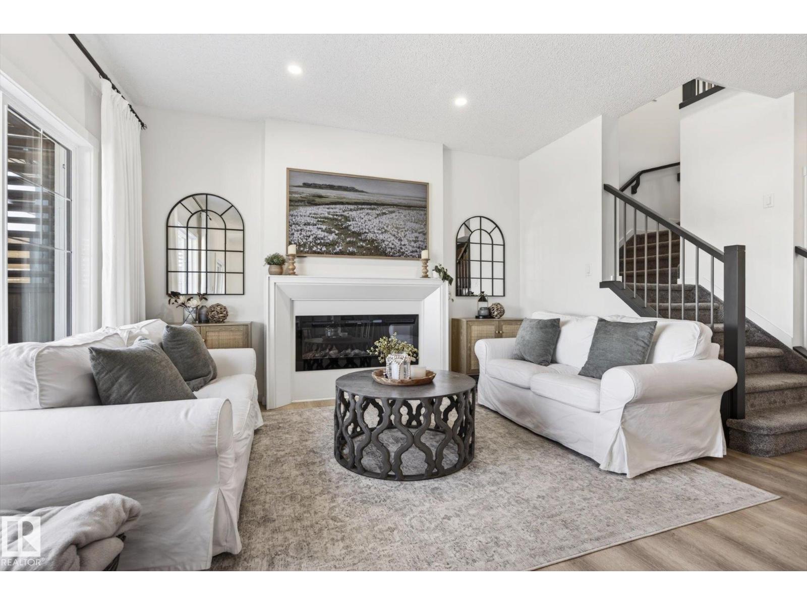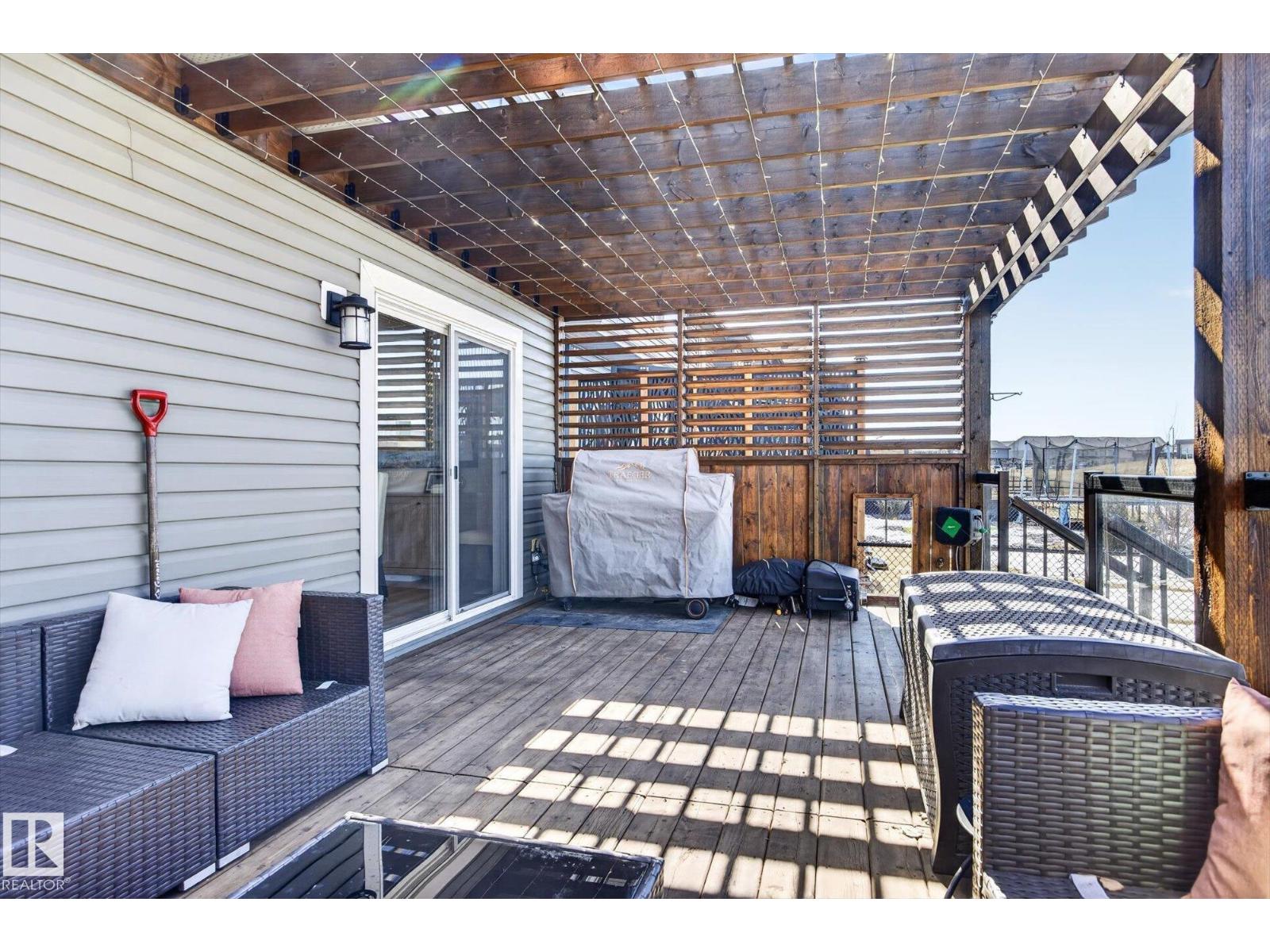 From the welcoming front entry, this well-maintained, DESIGNER-INSPIRED FAMILY home offers comfort and functionality throughout. The main floor features a bright, OPEN-CONCEPT living space anchored by a cozy GAS FIREPLACE. The living area flows seamlessly into the SPACIOUS kitchen, which offers excellent counter & storage space along with pleasant views. The adjoining dining area opens onto a large deck featuring a PERGOLA and privacy side blinds, creating an ideal outdoor retreat - beautiful landscaping & moody lighting! The upper level offers three GENEROUSLY sized bedrooms. The primary suite includes a well-appointed ensuite with a deep SOAKER TUB, his & her sinks, & quality finishes. Luxury vinyl plank flooring is throughout the home and is stunning! The property is completed by A/C, a HEATED TANDEM GARAGE( 32'6x20'1) with man door, providing added comfort and year-round practicality. This home offers a wonderful balance of modern finishes & family-friendly living!! Show stopping and a true 10/10! (id:63190)