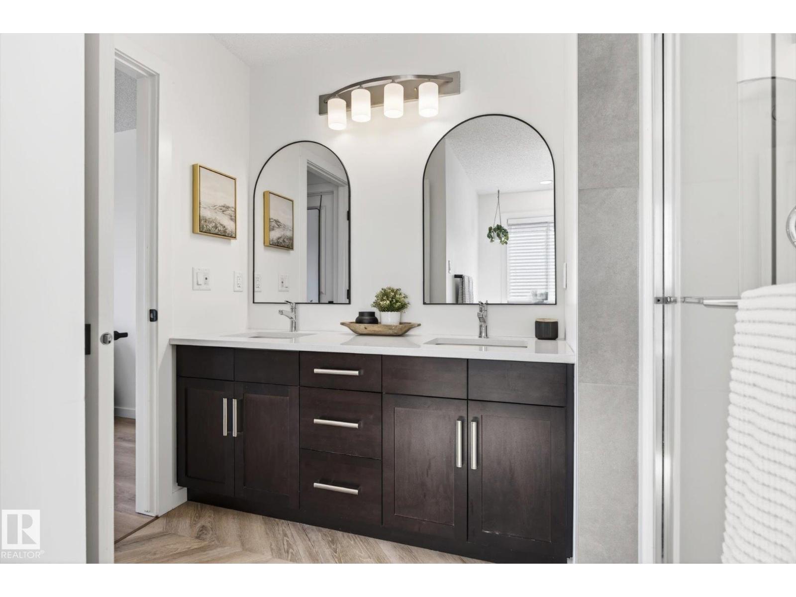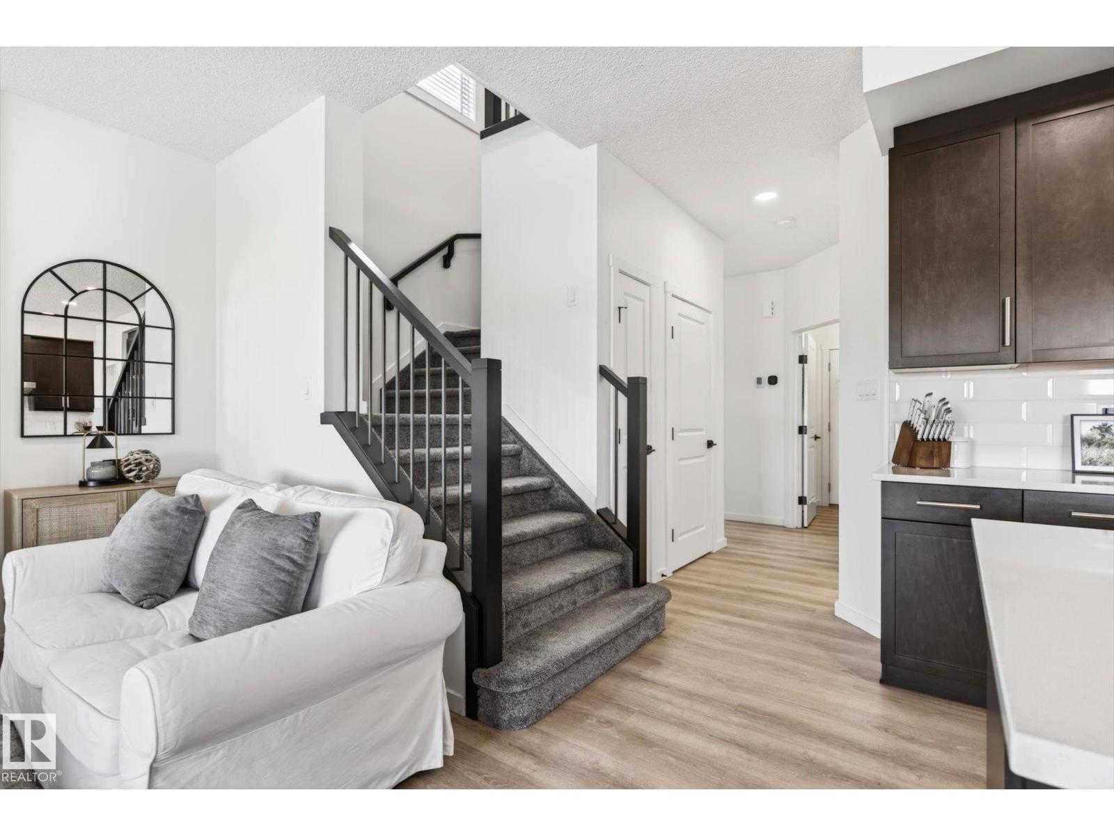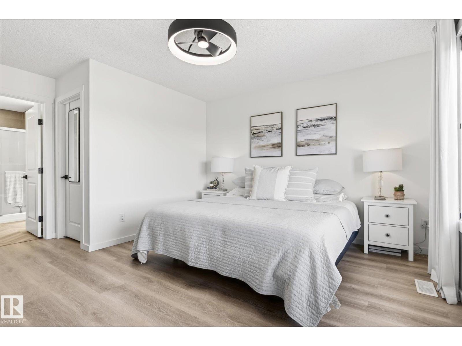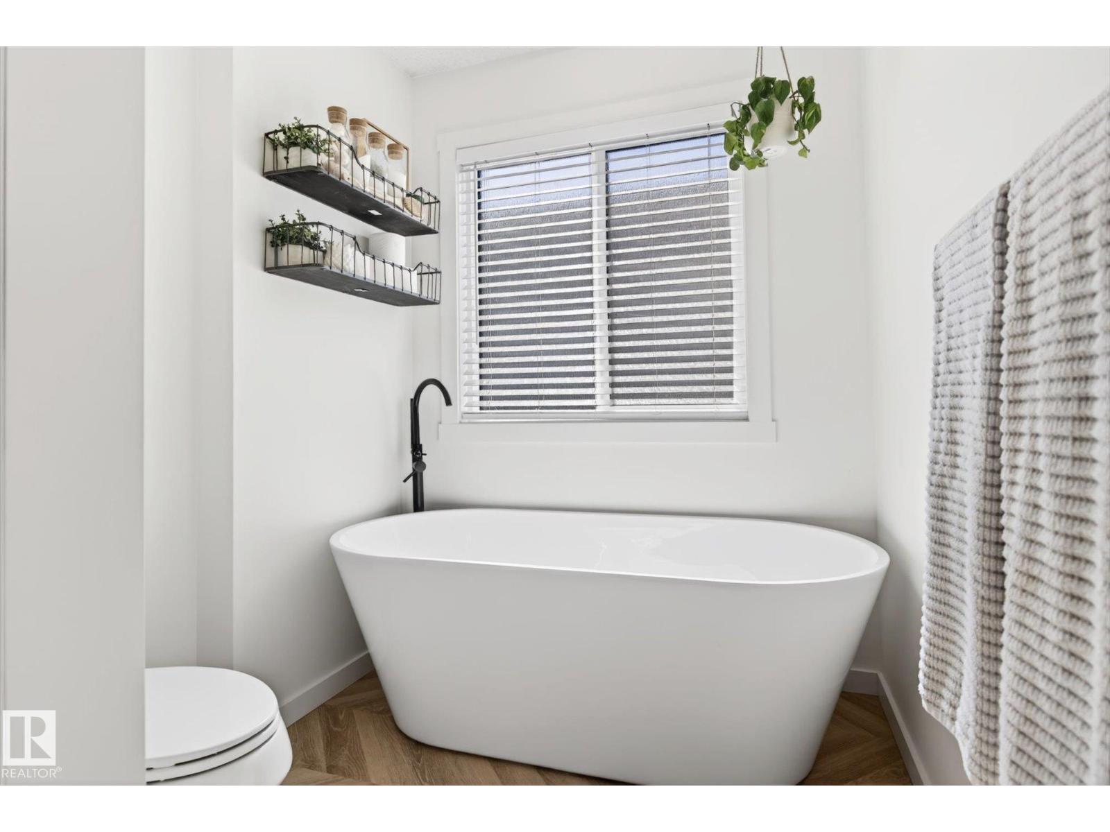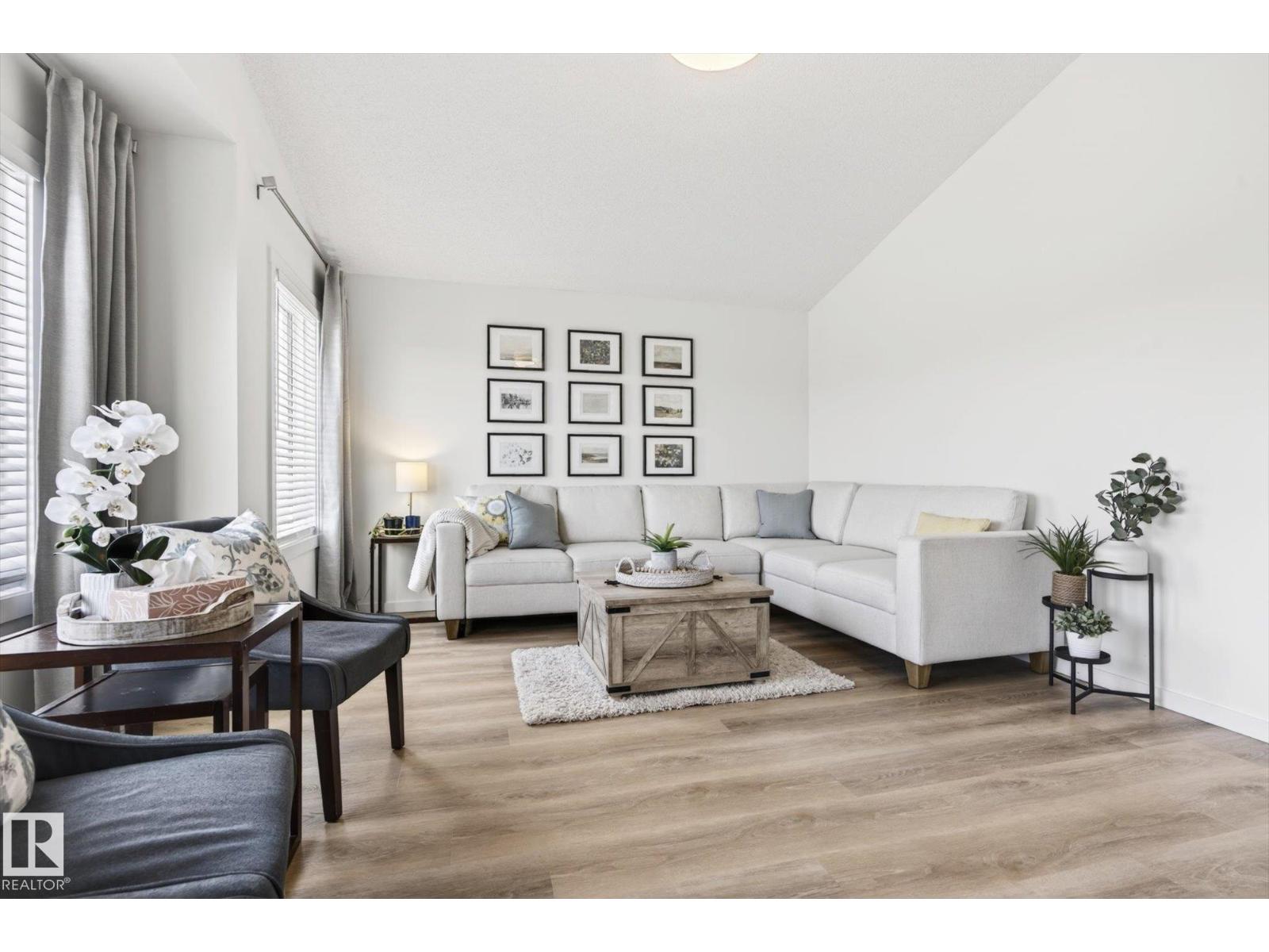 From the welcoming front entry, this well-maintained, DESIGNER-INSPIRED FAMILY home offers comfort and functionality throughout. The main floor features a bright, OPEN-CONCEPT living space anchored by a cozy GAS FIREPLACE. The living area flows seamlessly into the SPACIOUS kitchen, which offers excellent counter & storage space along with pleasant views. The adjoining dining area opens onto a large deck featuring a PERGOLA and privacy side blinds, creating an ideal outdoor retreat - beautiful landscaping & moody lighting! The upper level offers three GENEROUSLY sized bedrooms. The primary suite includes a well-appointed ensuite with a deep SOAKER TUB, his & her sinks, & quality finishes. Luxury vinyl plank flooring is throughout the home and is stunning! The property is completed by A/C, a HEATED TANDEM GARAGE( 32'6x20'1) with man door, providing added comfort and year-round practicality. This home offers a wonderful balance of modern finishes & family-friendly living!! Show stopping and a true 10/10! (id:63190)