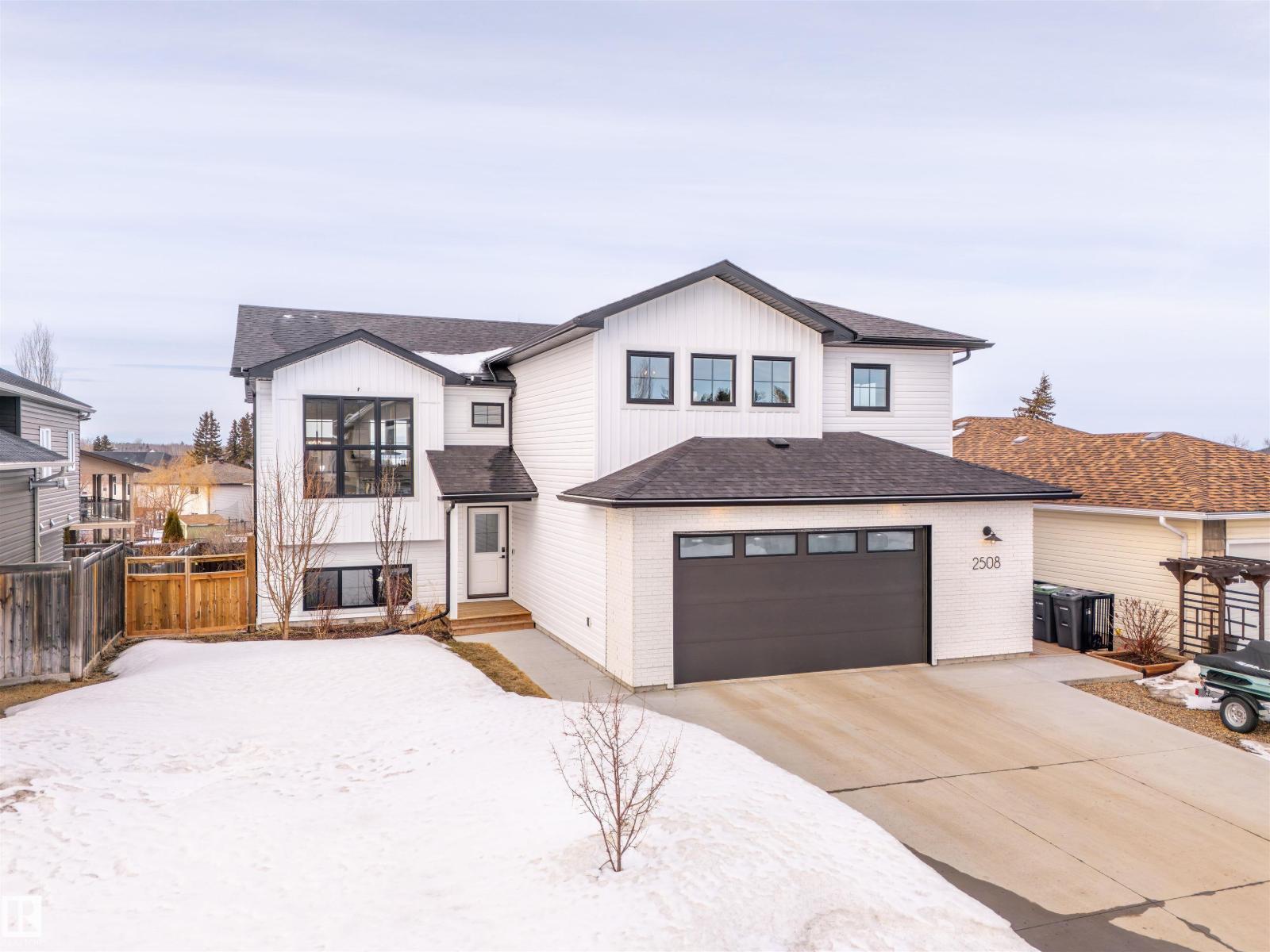 Custom built executive family home, located in prestigious Lakewood Estates with stunning lake views! This home has so many upgrades with a custom floor plan, unique to Cold Lake. Main floor features soaring 10’ ceilings and loads of windows to allow in tons of natural light. Custom kitchen features top of the line appliances including induction stove, Quartz counters, large island and a unique pantry set up, sure to please any chef. The deck off the dining room features glass rails to enjoy those lake views. 2 bedrooms on main and upstairs finds your massive primary suite featuring dream ensuite including impressive custom shower, deep soaker tub, & quartz counters! Fully finished walkout basement features in-floor heat, 9’ ceilings, custom built-ins in the family room, indoor playhouse, wet bar, 4th bedroom /w 3pc ensuite, & a full gym. Other extras include large fenced yard with concrete patio, large shed and firepit area, wiring for a hot tub, Central Air, and an oversized headed double garage. (id:63190)