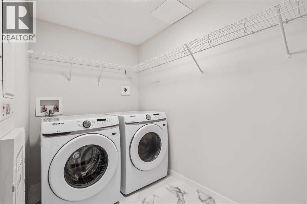 Welcome to this stunning 2 bedroom, 2 bathroom condo in Carrington NW, built by Cedarglen Living and offering over 1,080 sq ft of beautifully designed living space, titled underground parking, and peaceful community garden views. Located in one of Northwest Calgary’s fastest-growing communities, this move-in ready condo combines modern finishes, a functional layout, and a unique outlook that truly sets it apart.Inside, you’ll love the bright open-concept design featuring 9 ft ceilings, Low-E triple pane windows, luxury vinyl plank flooring, quartz countertops, stainless steel appliances, and a highly sought-after split-bedroom layout. The beautifully appointed kitchen offers full-height cabinetry, quartz counters, a corner pantry, stainless steel appliances, and a large island with seating, making it ideal for entertaining, casual meals, or everyday living.The dining area flows seamlessly through sliding patio doors to the northeast-facing corner balcony with BBQ gas line, overlooking the beautifully maintained condo community garden. This peaceful outdoor space creates the perfect extension of the home for morning coffee, summer evenings, and relaxing views.The spacious living room is warm and inviting, while the split-bedroom floorplan places the bedrooms on opposite sides of the unit for maximum privacy—ideal for roommates, guests, downsizers, or a home office setup. The primary suite features its own private full ensuite, and the second bedroom is perfectly positioned beside the main bathroom.A generously sized laundry room with extra storage adds everyday convenience, and the home also includes one titled underground heated parking stall.Located in a pet-friendly Carrington NW condo complex, this home is steps from parks, pathways, shopping, restaurants, and quick access routes, all while offering the rare charm of overlooking the condo’s private community garden space.A fantastic opportunity for first-time buyers, investors, downsizers, or anyone l ooking for a modern 2 bed 2 bath condo in Carrington NW with underground parking and garden views. (id:63190)