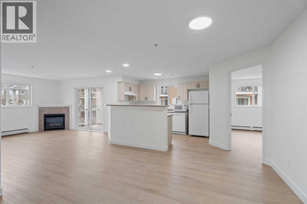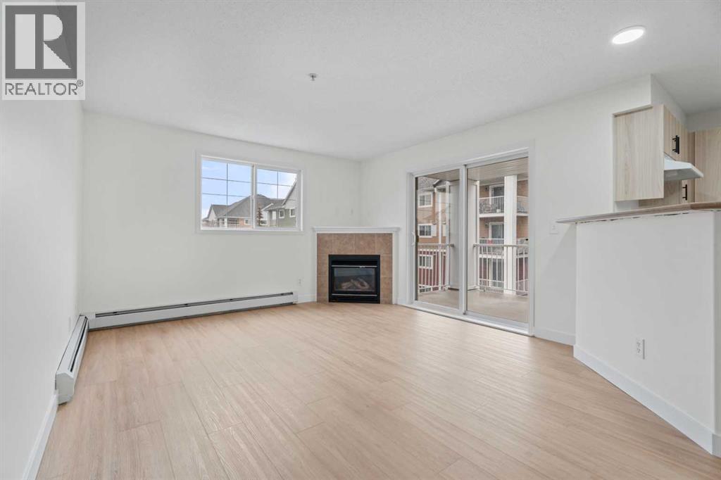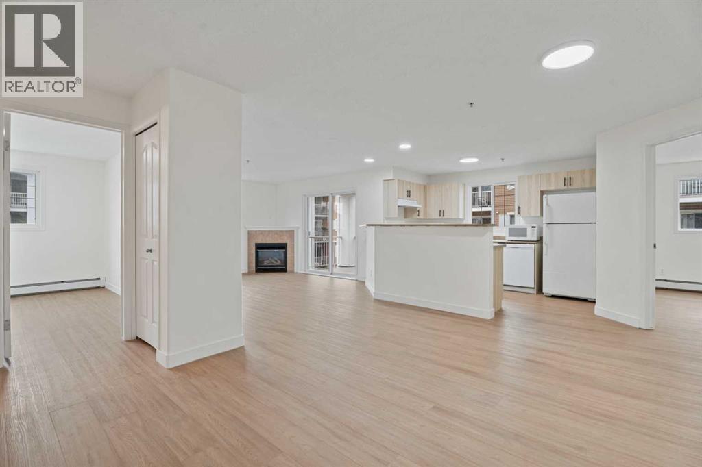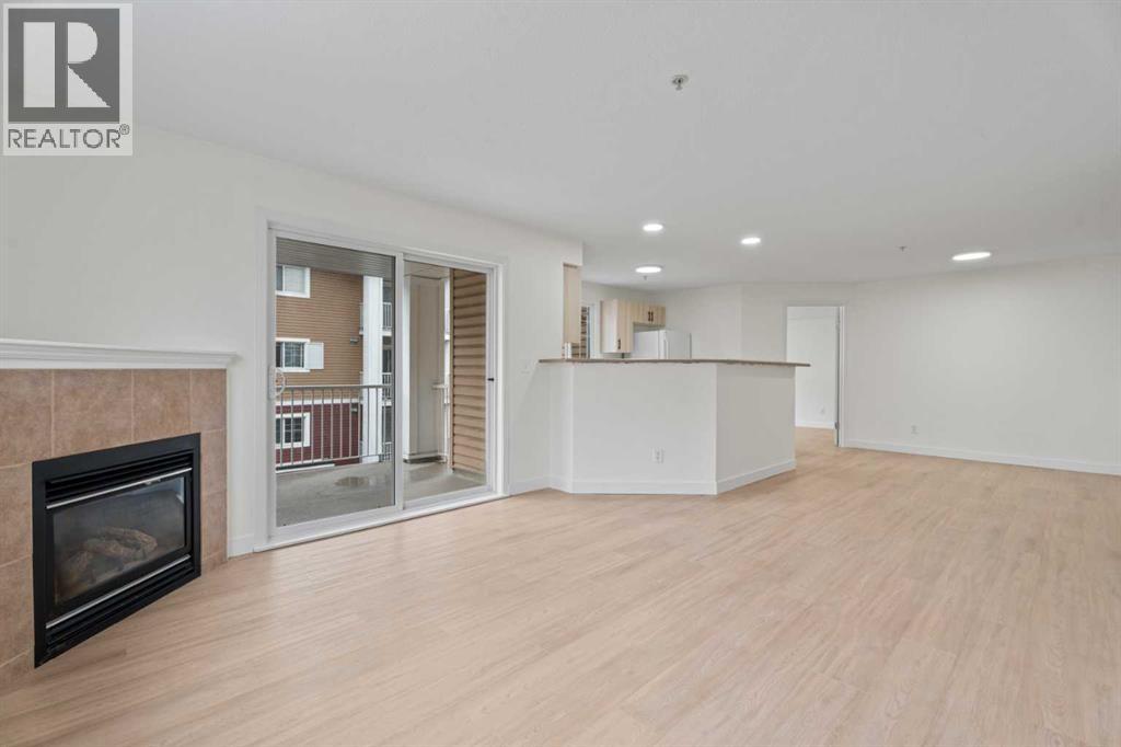Welcome to this beautifully refreshed and move-in ready corner unit home, where style meets comfort in all the right ways.Featuring 2 spacious bedrooms and 2 full bathrooms, this open-concept layout is designed for both everyday living and effortless entertaining. You’ll immediately notice the brand new luxury vinyl plank flooring that flows seamlessly throughout, complemented by fresh professional paint, new baseboards, and new modern lighting that gives the entire space a bright, contemporary feel.The kitchen has been thoughtfully updated with brand newly faced cabinets and hardware, offering a clean and stylish look while maintaining functionality at its core. Dishwasher new in 2025. The inviting living area is anchored by a cozy fireplace—perfect for relaxing evenings—and extends out to a private balcony, ideal for your morning coffee or unwinding at the end of the day. This unit also come with 1 titled parking stall right across from the entrance to the elevator.Every detail has been taken care of, making this home truly move-in ready. Whether you're a first-time buyer, downsizer, or investor, this is an opportunity to step into a turnkey property and enjoy immediate possession.A perfect blend of comfort, convenience, and modern updates—this one is not to be missed. (id:63190)