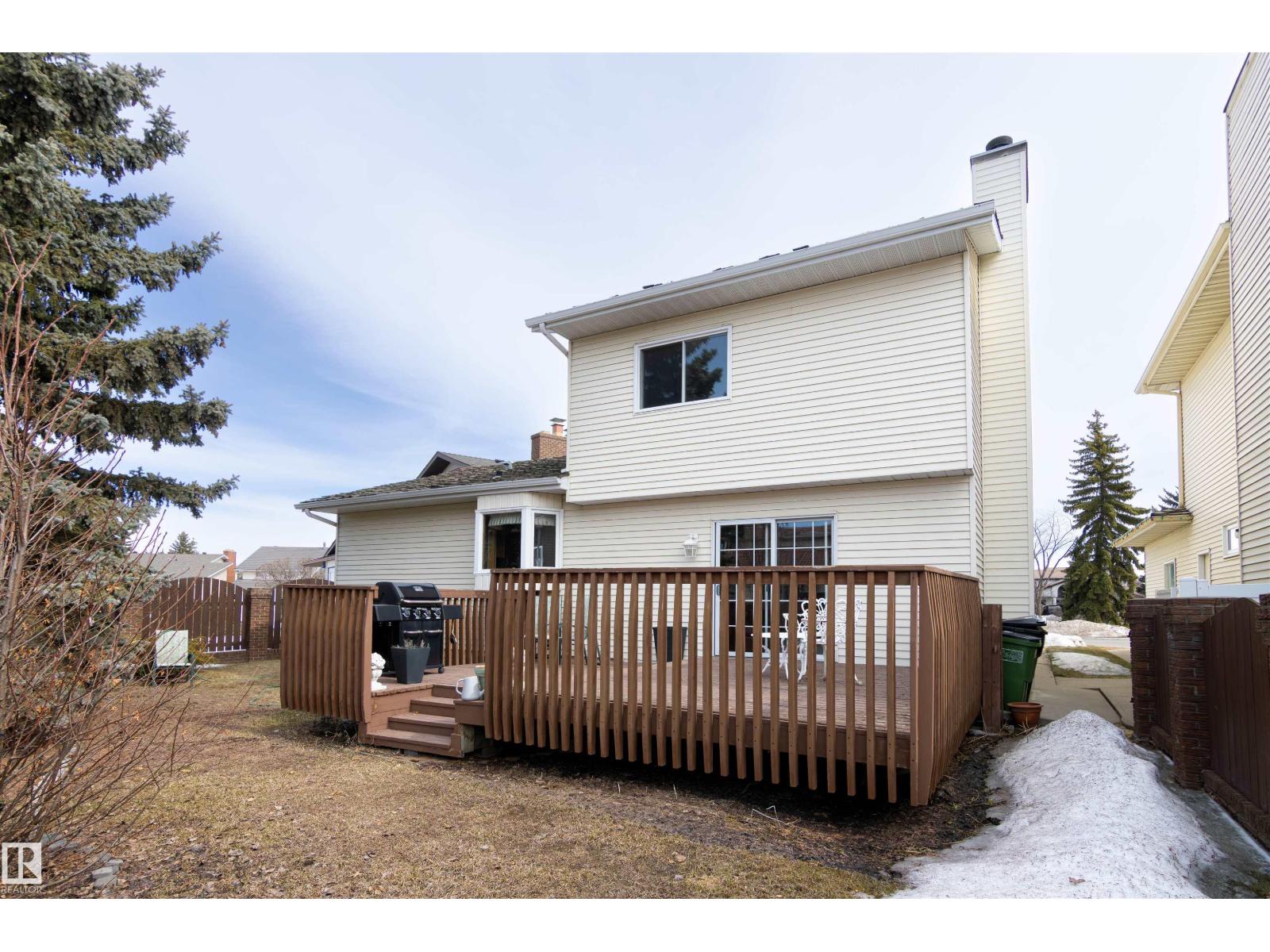 SPACIOUS 2-STOREY in a PREMIUM location just one block from scenic Beaumaris Lake! Tucked into a quiet cul-de-sac, this beautifully maintained 5 bedroom, 4 bath home offers incredible space for the whole family. The bright main floor features a welcoming living room with bay window, formal dining area, and a large kitchen with solid oak cabinetry and ample counter space, overlooking a cozy family room with brick fireplace and patio doors leading to the WEST-facing deck. A bedroom, full bath, and laundry complete the main level. Upstairs offers 3 generous bedrooms, a full bath, and a spacious primary retreat with ensuite and huge walk-in closet. The fully finished basement includes a massive rec room, 2 additional bedrooms, full bath, and plenty of storage. Gorgeous curb appeal and a private, fully fenced yard. Close to schools, parks, YMCA, and major shopping—an incredible opportunity in a sought-after neighbourhood! (id:63190)