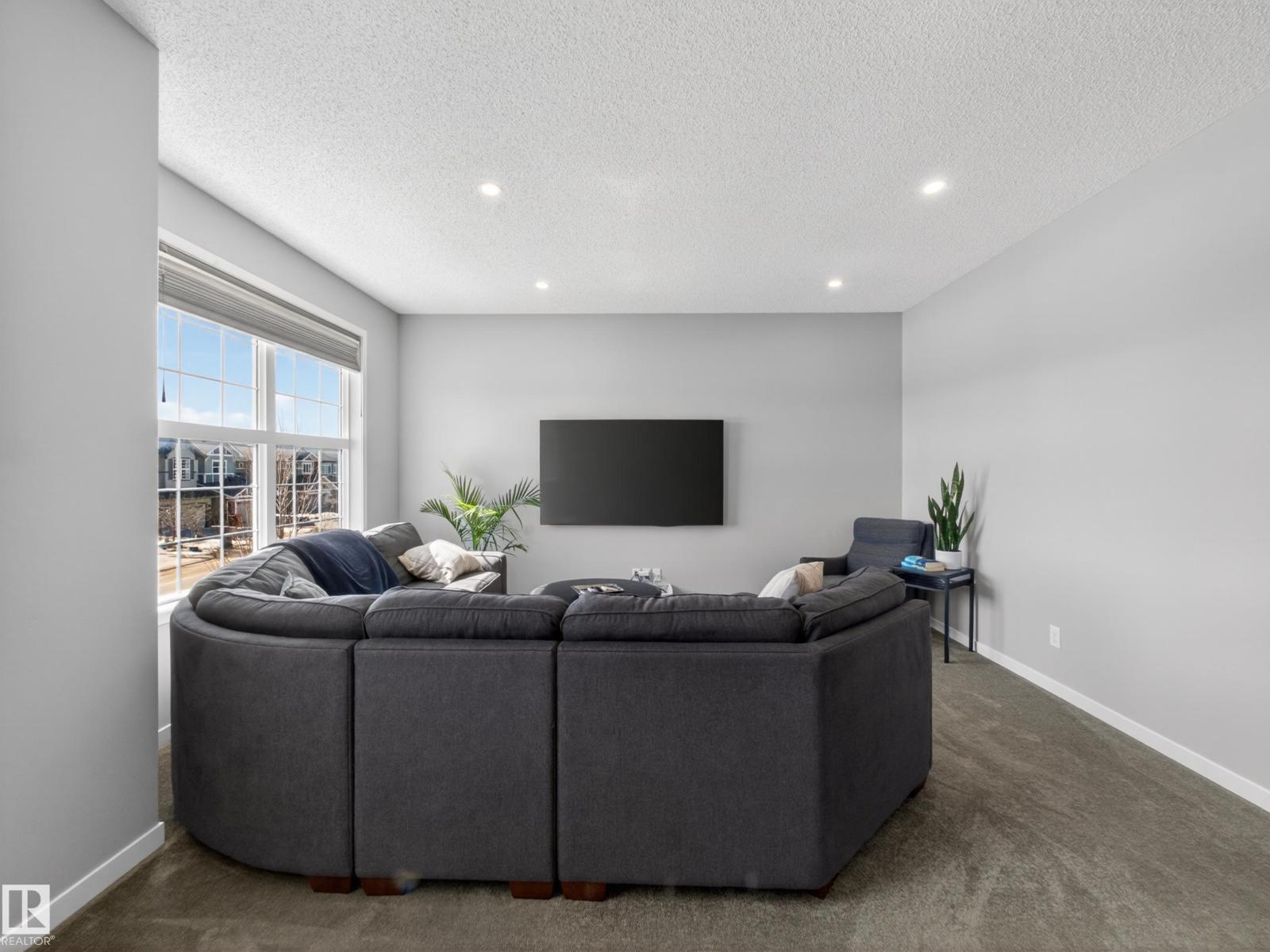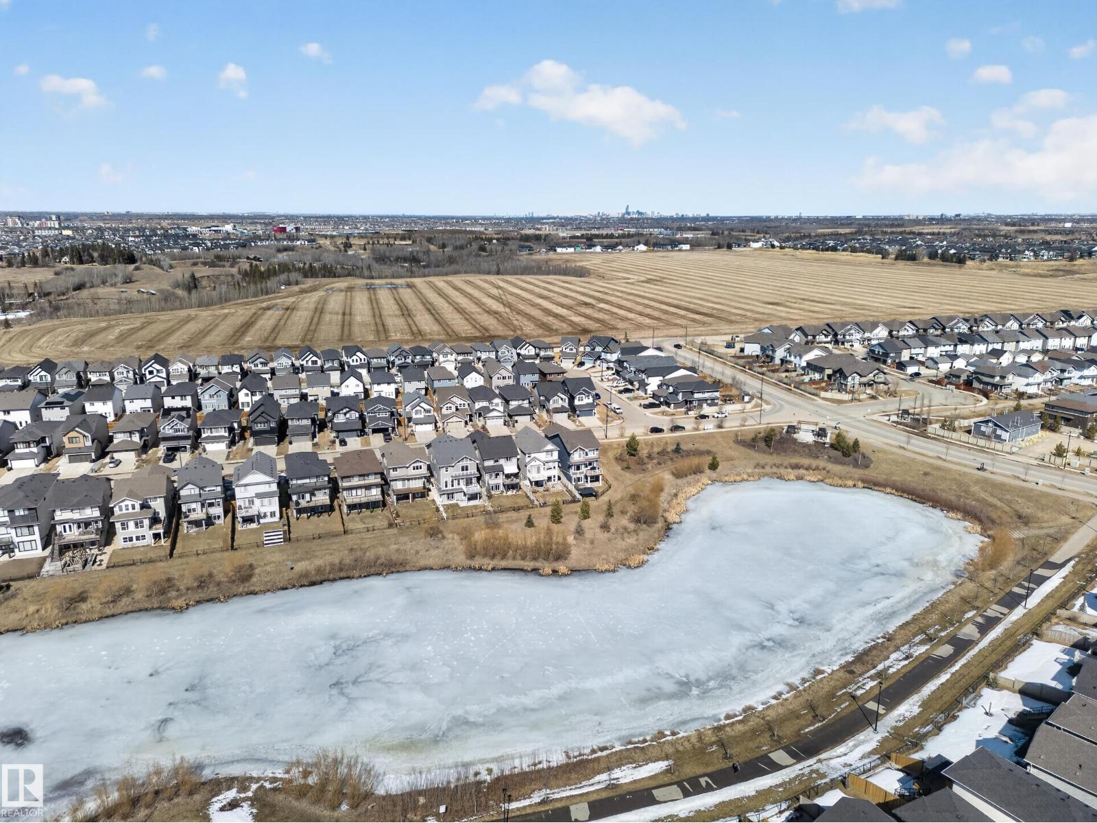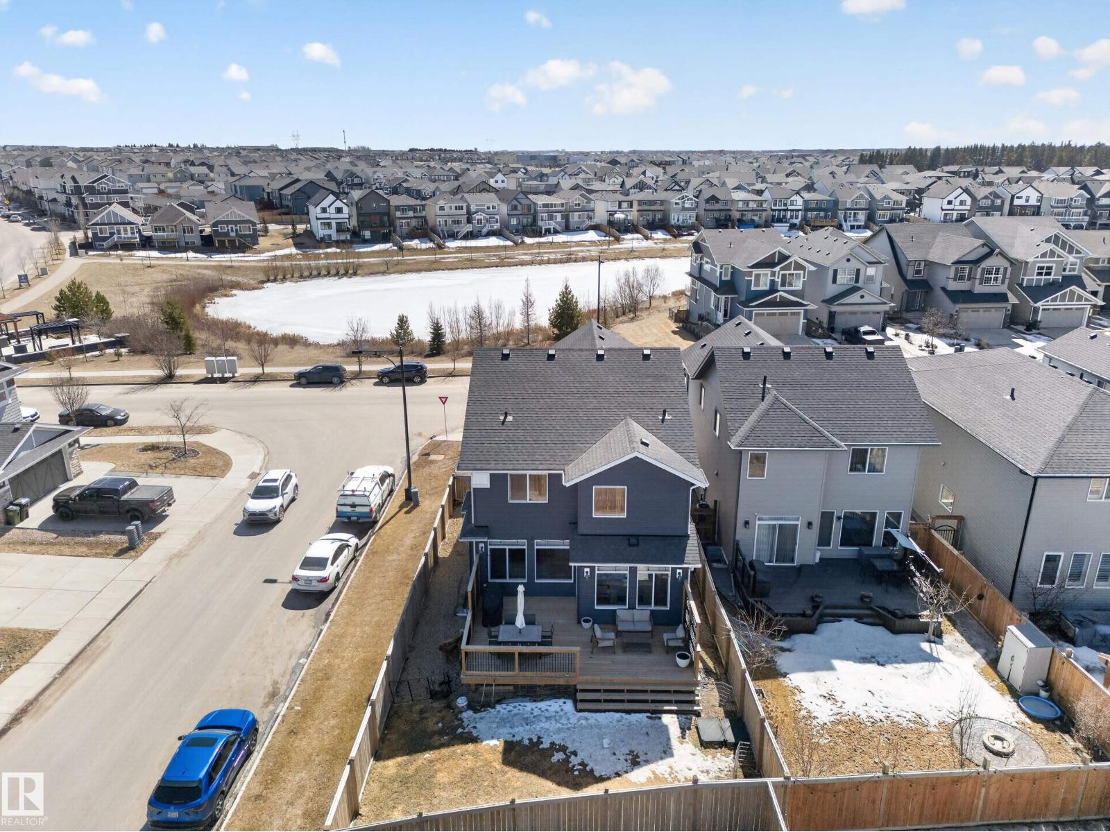 A home with a view! Perfectly situated across from a stunning pond with scenic walking trails, this beautiful 2-storey in sought-after Chappelle offers the ideal blend of comfort and lifestyle. Enjoy 9ft ceilings and luxury vinyl plank flooring throughout the main level, a spacious den perfect for working from home, and a bright, open kitchen featuring ceiling-height white cabinetry, quartz countertops, and high-end stainless steel appliances. The inviting living room showcases a cozy gas fireplace and patio doors leading to a fully fenced and landscaped yard. Upstairs, the impressive primary suite offers a generous bedroom, walk-in closet, and spa-inspired 5pc ensuite with a large soaker tub. Two additional bedrooms, a 4pc bath, convenient laundry room, and a bonus room with a picture window overlooking the pond complete the upper level. Located in a vibrant family community with parks, trails, and a recreation centre with a kids’ water park—this home truly has it all, including central A/C! (id:63190)
