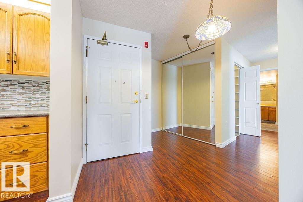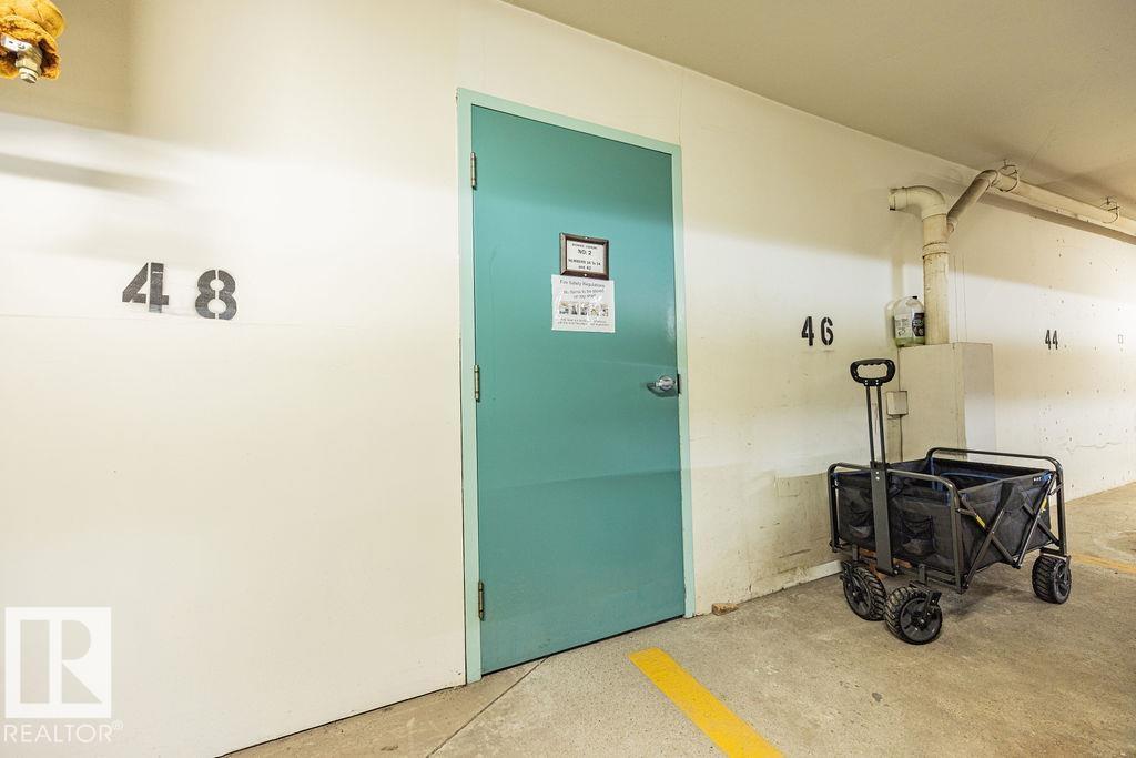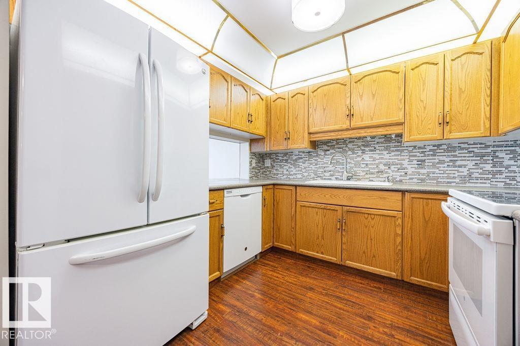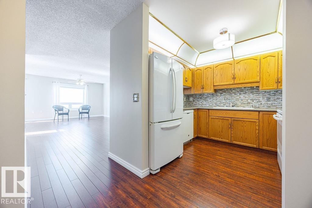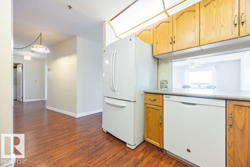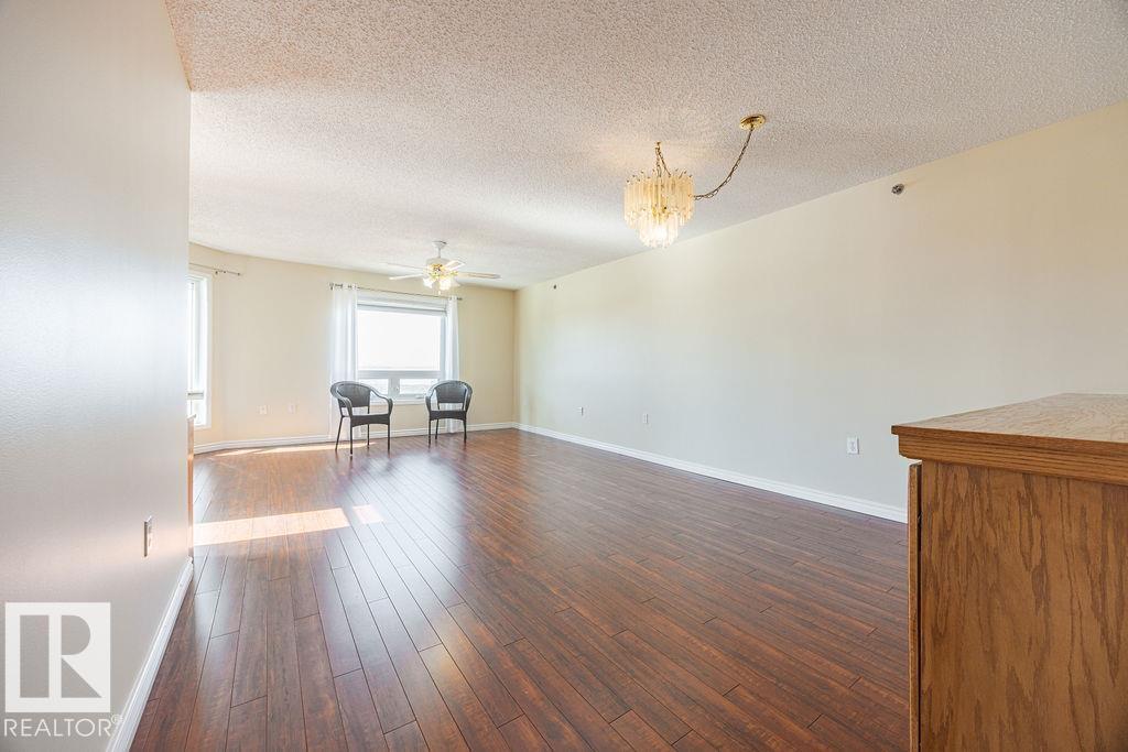 Enjoy the perfect combination of location, layout & views in this spacious (50+) condo just steps from the river valley and everyday amenities. Offering a wonderful floor plan, this 2-bedroom, 1-bath unit features expansive windows in every room, capturing beautiful river valley views & filling the home with natural light. The interior has been freshly painted & features laminate flooring throughout w/ carpet in the bedrooms. While largely original, the unit has been very well maintained and offers a fantastic opportunity to personalize over time. The open-concept living & dining area flows seamlessly to a massive private balcony, providing a peaceful outdoor space to take in the surrounding views. Additional highlights include in-suite laundry, ample storage, an underground parking with separate storage locker and car wash bay. A rare opportunity to secure a well-located unit with incredible fundamentals—ideal for buyers looking to enjoy retirement w/ a view!! (id:63190)