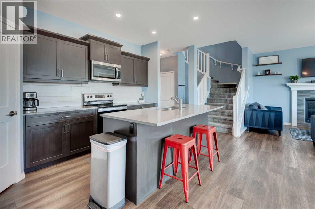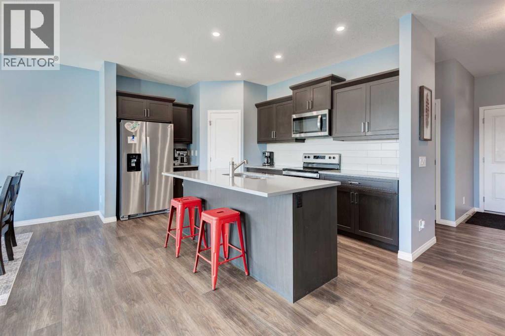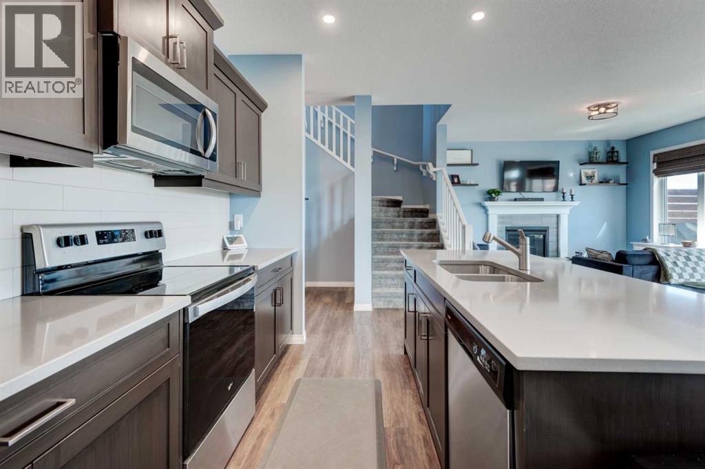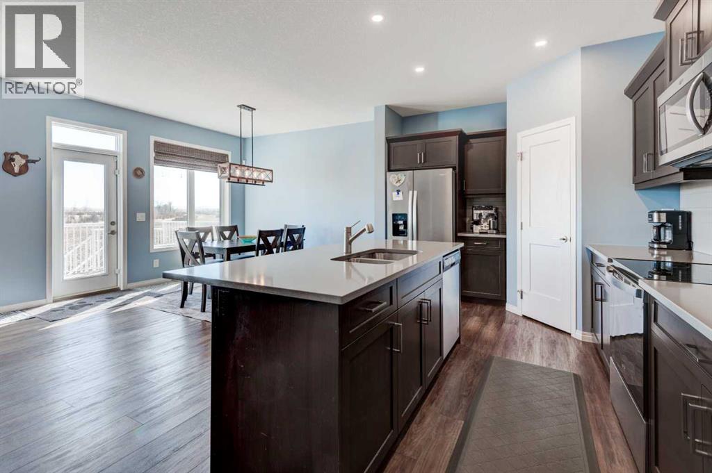Welcome to this beautifully maintained and thoughtfully designed home offering the perfect blend of comfort, style and functionality. Nestled in a desireable neighbourhood, this property is ideal for families, professionals, or anyone seeking a peaceful, yet convenient lifestyle. Step inside to discover a bright and spacious open-concept layout, featuring large windows that flood the home with natural light. The modern kitchen is equipped with modern stainless steel appliances, quartz countertops, ample cabinetry, separate pantry and a generous island, perfect for prepping, cooking, entertaining and family gatherings. The living and dining areas flow seamlessly, creating a warm and inviting atmosphere. There is also the convenience of private home office on this main floor. Upstairs, you'll find a spacious bonus room, well appointed bedrooms, including a large primary suite complete with walk in closet and luxurious five peice ensuite. The fully developed basement is thoughtfully finished, adding exceptional living space and versatility, featuring an open layout rec room with bar area, a full bathroom with modern fixtures, and an additional bedroom. Outside, you will enjoy a beautifully landscaped pie shaped yard which offers plenty of room for the addition of play structures, trampolines or firepit. Additional features include a south facing deck with gazebo off the main living area, central air conditioning fenced in dog run and a heated double attached garage. Additionally, the home has just been repainted throughout and brand new upper grade carpet and underlay installed on the stairs and entire upper floor. The location is stellar, offering gorgeous views from the rear deck and close proximity to walking paths, parks and shopping. This is a place you would be proud to call home, don't miss the opportunity to make it yours! (id:63190)