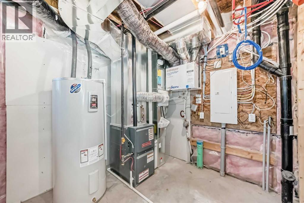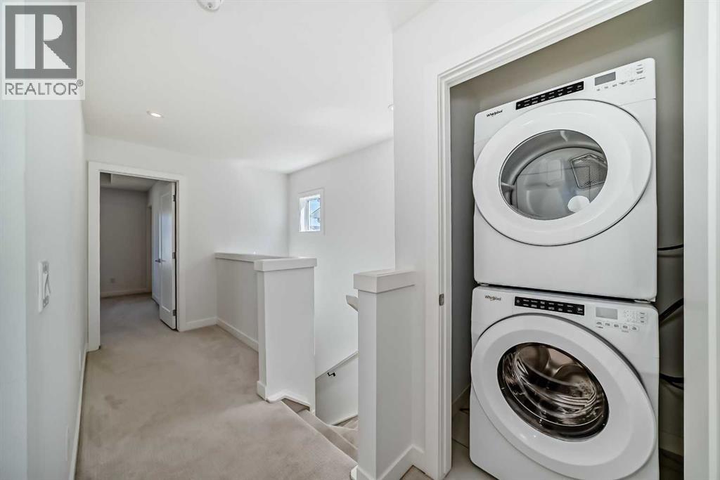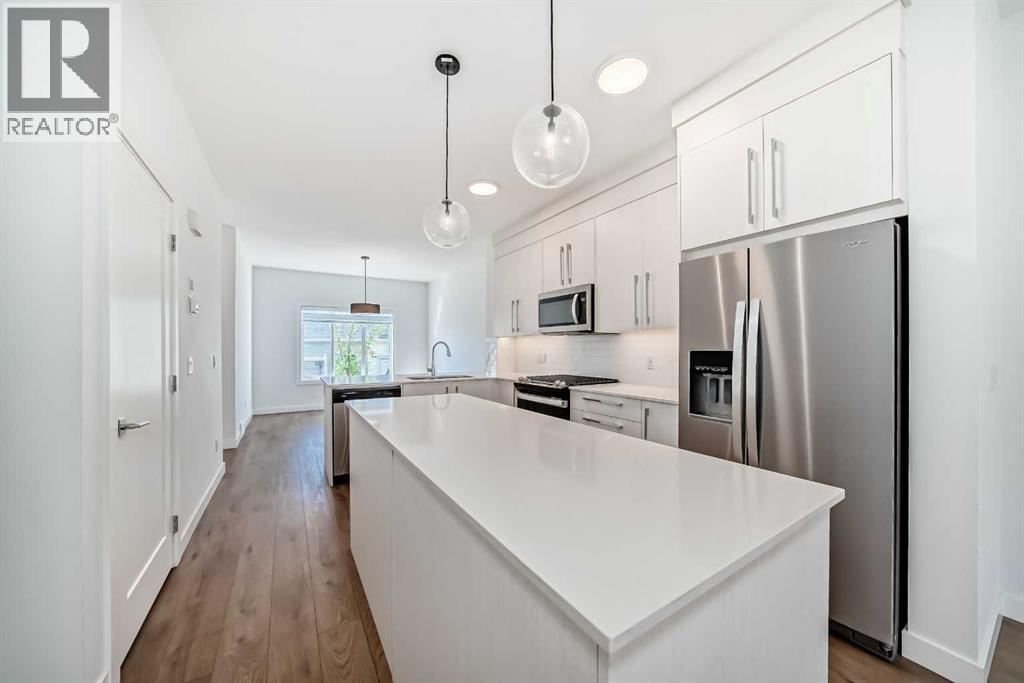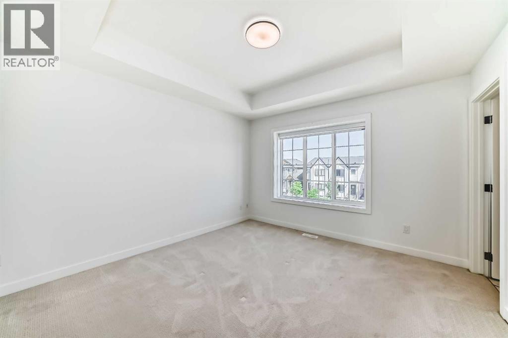 END UNIT | NO CONDO FEES | DOUBLE GARAGE! Stunning TRUMAN-built 3 bed, 2.5 bath townhouse in the vibrant SE community of Rangeview. This end unit offers an open-concept main floor with a bright chef’s kitchen featuring full-height cabinetry, quartz countertops, stainless steel appliances (gas range), pantry, and a large island—perfect for entertaining. Upstairs includes a spacious primary suite with walk-in closet and 4-piece ensuite, plus two additional bedrooms, full bath, and dedicated laundry closet with washer and dryer providing ample space for families and guests. The unfinished basement presents endless potential for customization— recreation space, or extra storage! Enjoy a double garage, side entrance, and modern finishes throughout. Situated just steps from Rangeview’s playgrounds and greenspaces, and within minutes of the South Health Campus, Seton YMCA, schools, churches, and shopping in Seton and Mahogany. With quick access to both Stoney Trail and Deerfoot Trail, commuting is easy. Modern living meets everyday convenience—book your showing today! (id:63190)