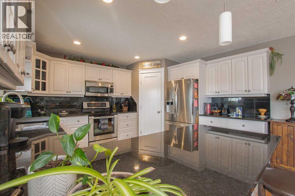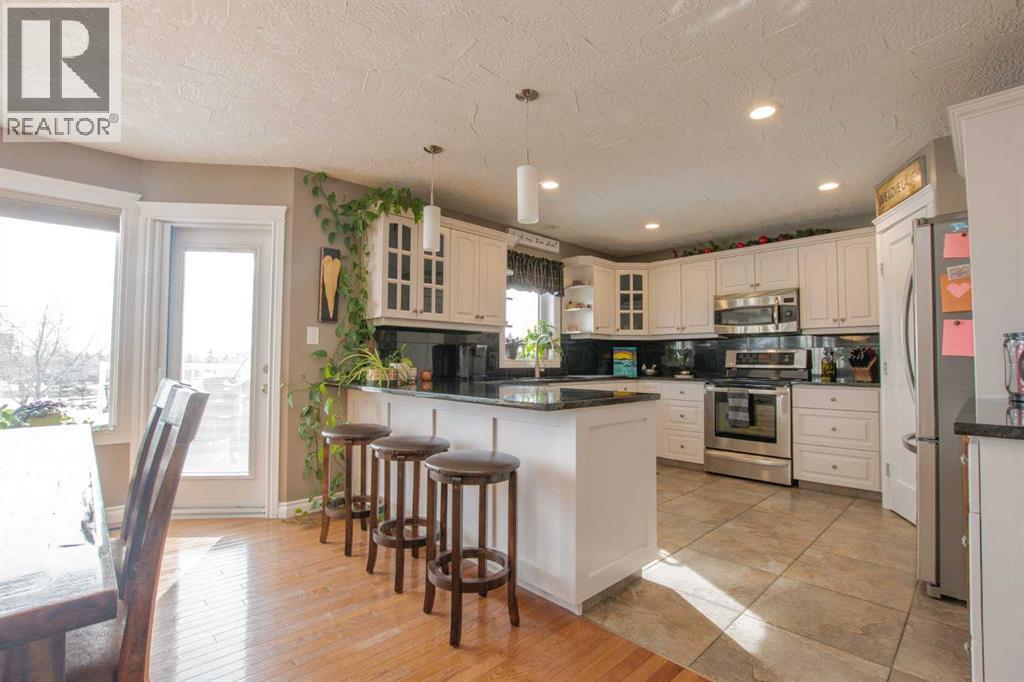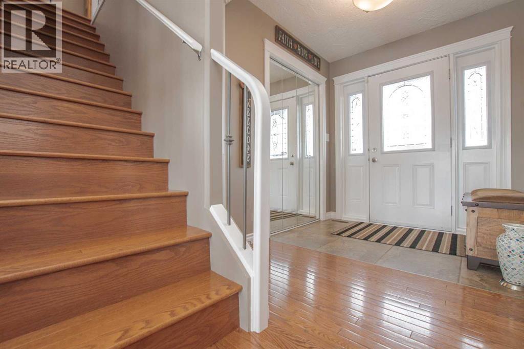 Welcome to this exceptional family home located in the highly sought-after county subdivision of Carriage Lane Estates. Offering a triple attached garage with tons of windows, extensive RV parking, PLUS a 20x24' powered shop with workbench, this property is perfectly suited for those needing space for all their vehicles, toys, and hobbies. Step inside to a bright, open-concept main floor designed for both everyday living and entertaining with spacious front entrance leading to the convenient main floor office. The spacious kitchen features solid oak cabinetry, granite countertops and backsplash, stainless steel appliances, and a convenient corner pantry. Rich hardwood flooring flows throughout the main living areas, complemented by tile in the front entry, kitchen, laundry, half bath, and rear entrance. Upstairs, hardwood continues through to a versatile sitting area/bonus room and all bedrooms. The generous primary suite offers a private retreat with a large walk-in closet and ensuite complete with a corner soaker tub and recently redone tile shower. The fully finished basement adds even more living space with a large family room, 4th bedroom, and full bath—perfect for guests or growing families. Outside, you’ll love the professionally landscaped yard featuring underground sprinklers, concrete curbing, retaining walls, low-maintenance rock landscaping, and mature trees. The fully fenced yard provides privacy and space for outdoor enjoyment. This is a rare opportunity to own a well-maintained, feature-packed property in one of the area’s most desirable communities just min to County K-8 school, nearby shopping and amenities. (id:63190)