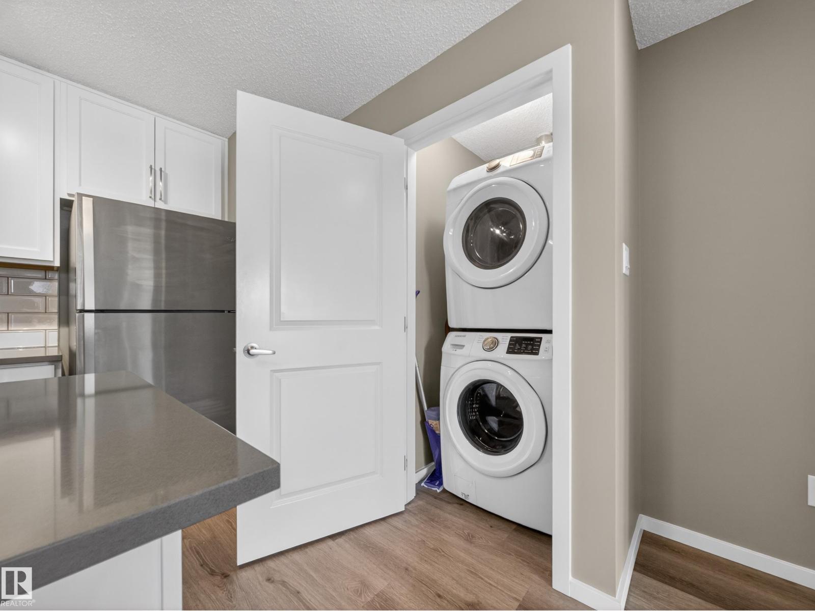 PRIDE OF OWNERSHIP SHOWS THROUGHOUT! Welcome to your new home in the desirable community of Ebbers. Well designed open concept layout featuring two bedrooms, two full bathrooms and TWO SEPARATELY TITLED PARKING STALLS (one heated UNDERGROUND STALL and one surface stall). THIS is the condo you’ve been waiting to see! Highlights include: VINYL PLANK FLOORING, QUARTZ COUNTERTOPS, KITCHEN ISLAND, stainless steel appliances, kitchen pantry, walk-in closet and ensuite bathroom in the primary bedroom, IN-SUITE LAUNDRY, patio, and much more. CONVENIENTLY LOCATED NEAR EVERYTHING YOU NEED, shopping dining, entertainment, groceries, schools, parks, playgrounds, Clareview Community Recreation Centre, transit, LRT, and much more! Perfect for first-time buyers, professionals, young families, or anyone looking for a great well-maintained home! (id:63190)