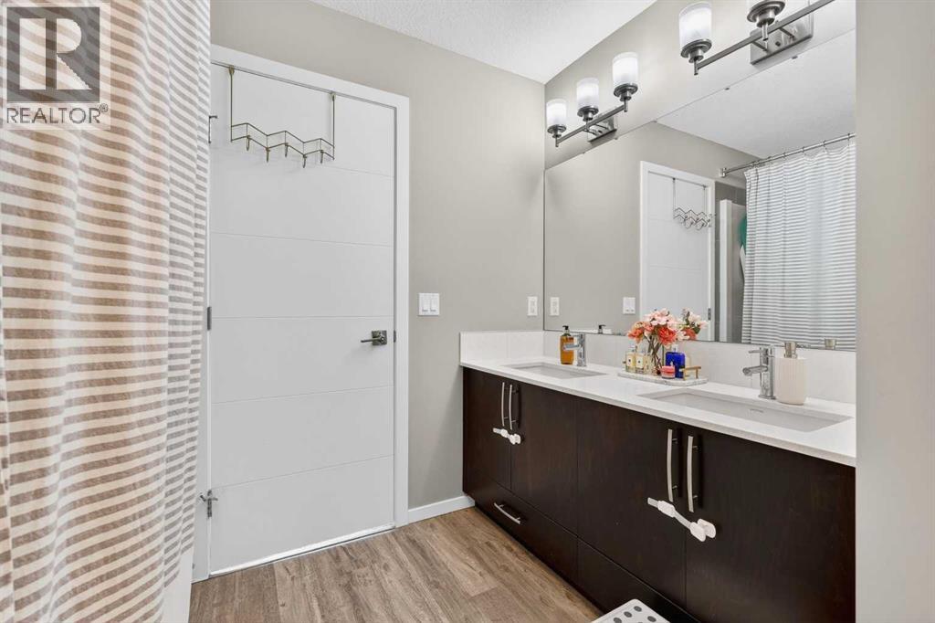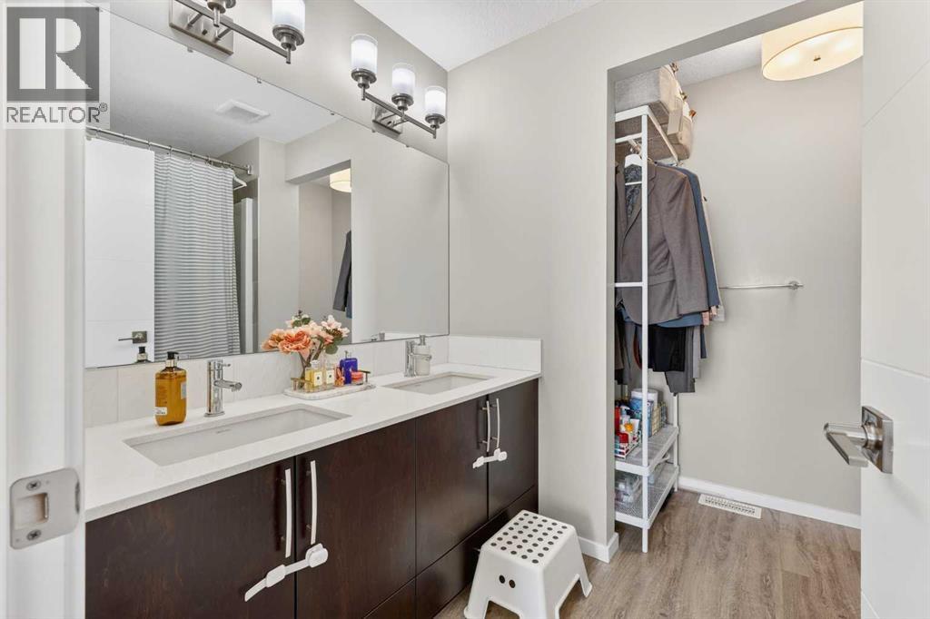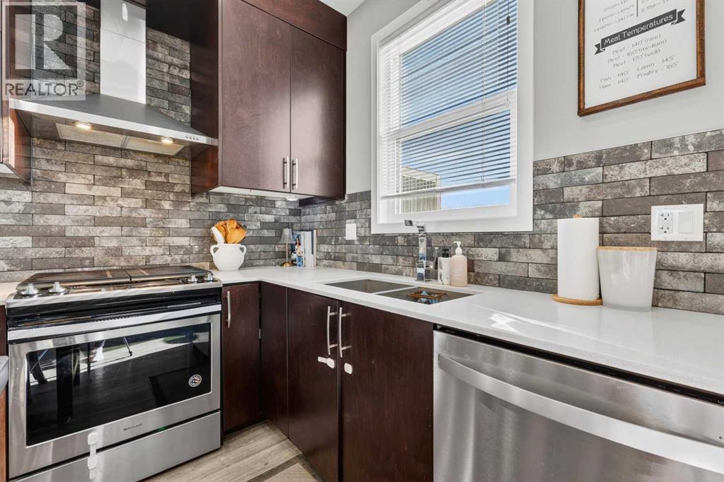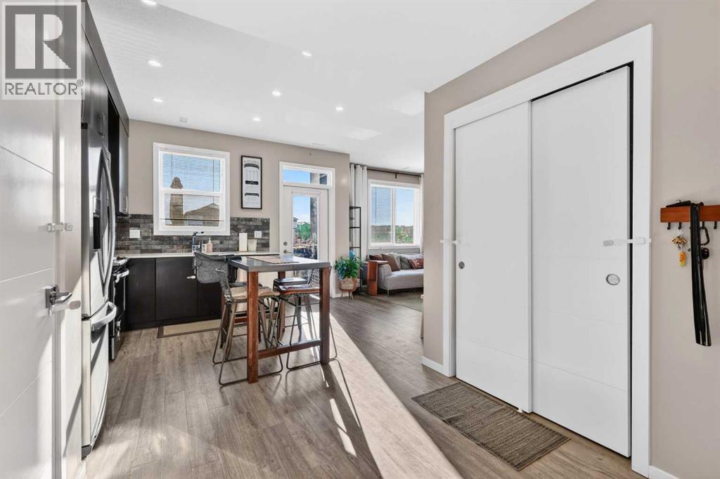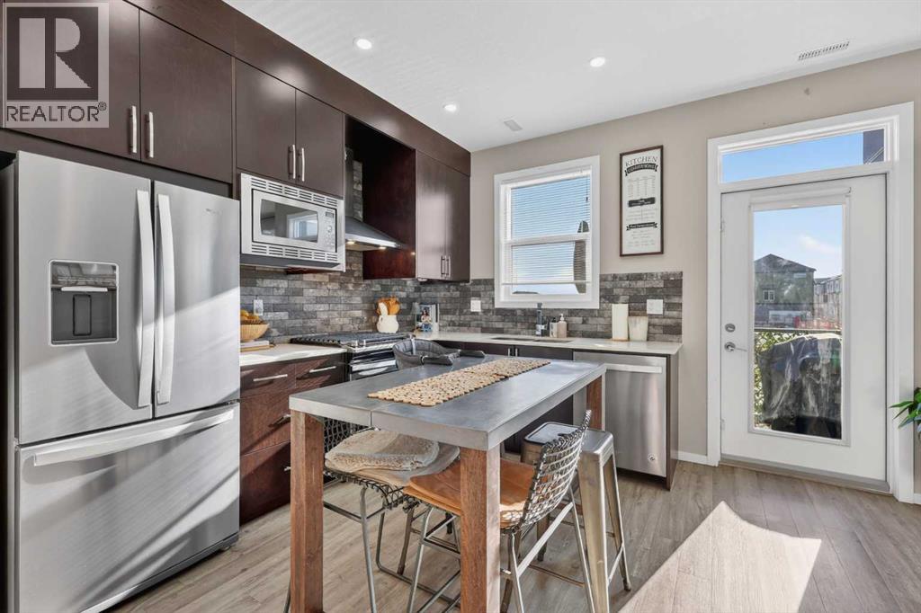 Smart design, modern finishes, and a location in one of northeast Calgary’s fastest growing communities make this townhome in Redstone an outstanding opportunity for first-time buyers, professionals, or investors looking for comfort and long-term value.The thoughtful twin primary bedroom layout is one of this home’s standout features. Upstairs you’ll find two large bedrooms, each with its own private full ensuite bathroom, creating the perfect setup for roommates, guests, or homeowners who want extra privacy and flexibility. This design makes everyday living easier while also adding strong rental appeal for investors.The main floor (located on the 2nd floor above the garage) is designed for modern living with 9-foot ceilings and an open concept layout connecting the kitchen, dining area, and living room. Upgraded luxury vinyl plank flooring adds durability and contemporary style while making the space easy to maintain.At the center of the home is an upgraded kitchen built for both function and style, featuring stainless steel appliances including a fridge, gas stove, microwave, hood fan, and dishwasher. The layout provides excellent prep space and keeps the kitchen connected to the rest of the living area — ideal for entertaining or relaxed evenings at home.A convenient main floor powder room adds practicality for guests, while in-suite laundry with washer and dryer included brings everyday convenience right where you need it. The additional upgrade of central AC is fantastic!Parking and storage are equally practical with a single attached garage, offering protection from Calgary winters and additional space for gear or seasonal storage.Living in Redstone means enjoying a community designed around everyday convenience and connection. Wide streets, pathways, parks, and playgrounds create space to get outside and stay active. Residents also benefit from quick access to major amenities including shopping at CrossIron Mills and Costco Wholesale, while nearby major routes like Metis Trail and Stoney Trail make commuting across the city simple.With its functional dual-ensuite layout, modern upgrades, attached garage, and convenient community location, this home offers a lifestyle that balances comfort, flexibility, and long-term value. (id:63190)