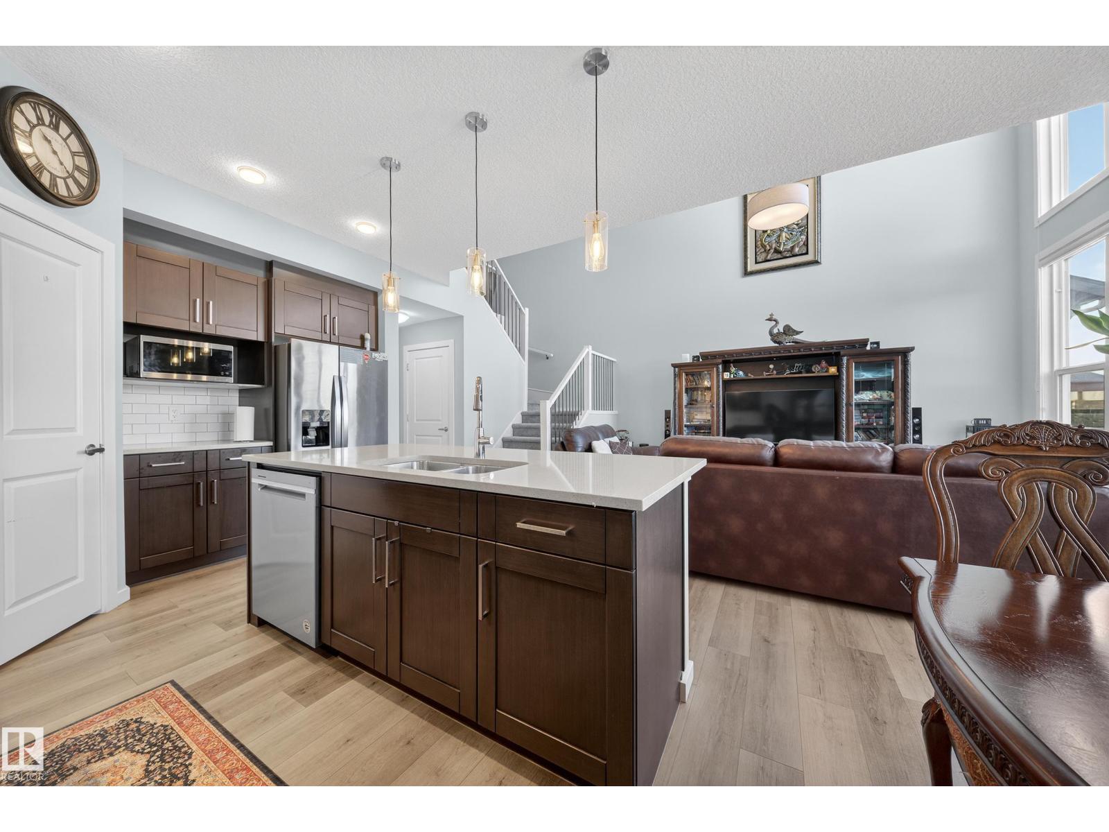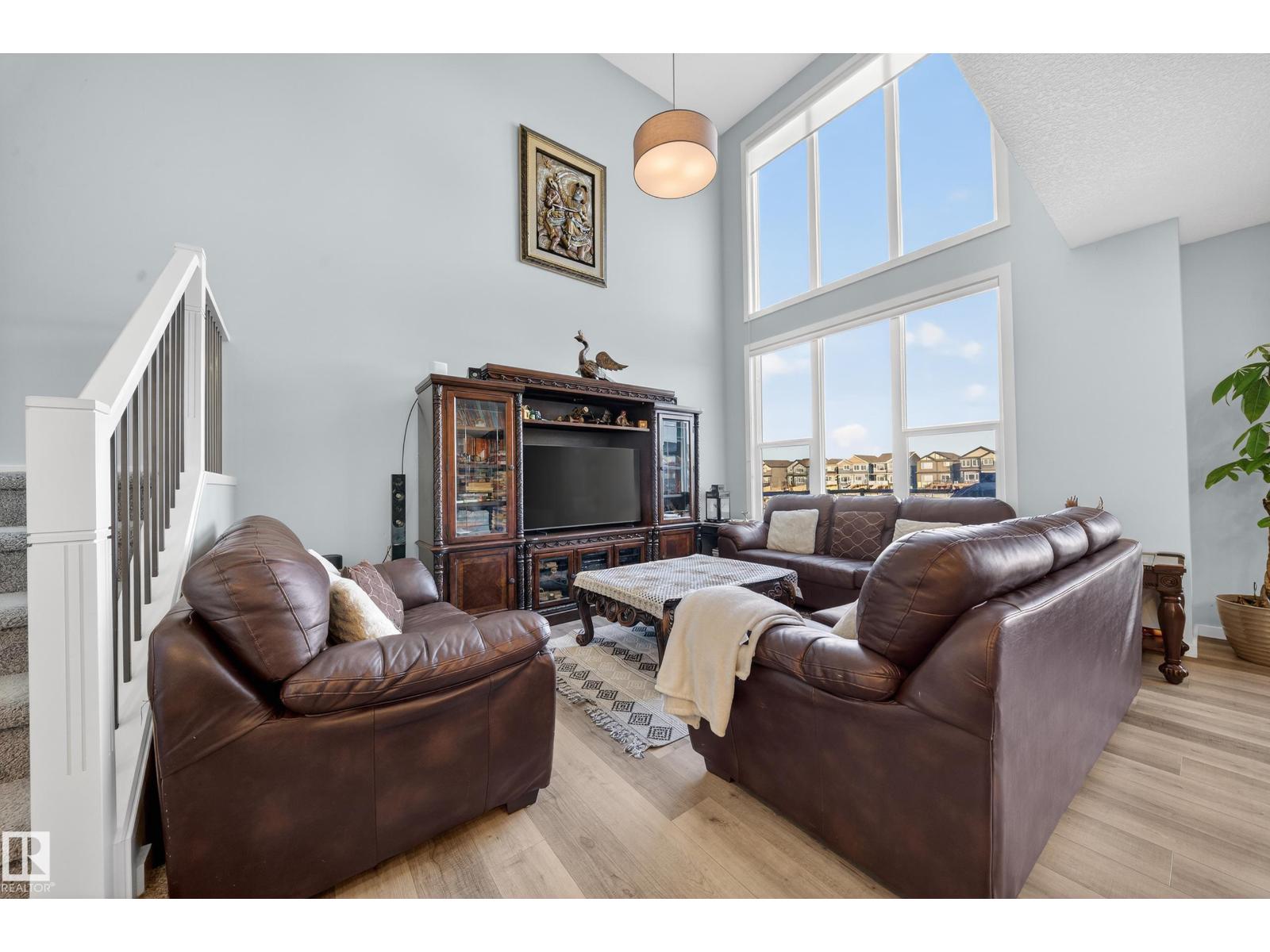 Welcome to this impressive family home in the heart of The Orchards backing directly onto a serene pond with a walkout basement on a regular lot.The bright main floor features a dedicated den, a modern open-concept kitchen with an oversized island, and a striking open-to-below living room filled with natural light. Upstairs you’ll find three generously sized bedrooms, all with walk-in closets, including a spacious primary retreat with a 5-piece ensuite and large walk-in. Convenient upper-floor laundry enhances everyday living.Step outside to a huge composite deck overlooking the pond—perfect for relaxing or entertaining. The walkout basement, accessible via a concrete pathway, is undeveloped and ready for your vision. Full access to The Orchards Clubhouse completes this outstanding home offering comfort, space, and lifestyle in one package.Positioned beside Jan Reimer K-9 and Divine Mercy K-6 schools, with shopping and everyday amenities nearby, the location offers exceptional convenience. (id:63190)