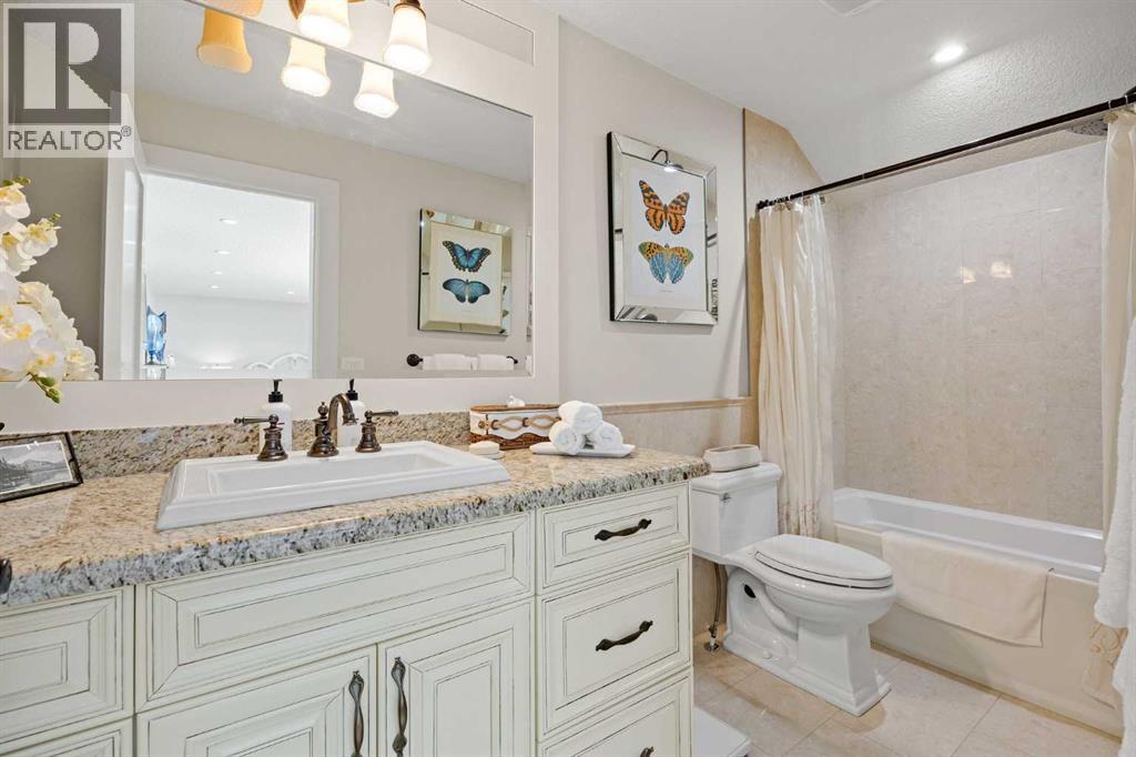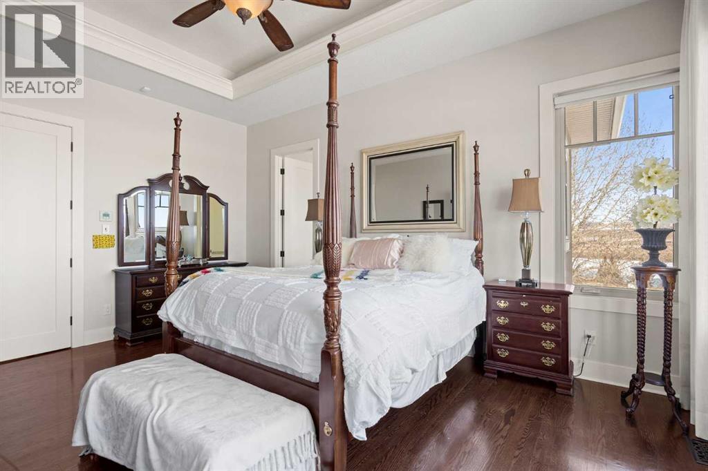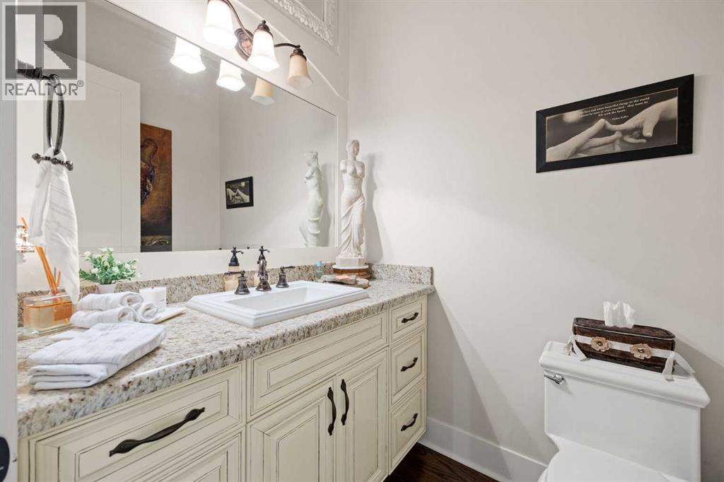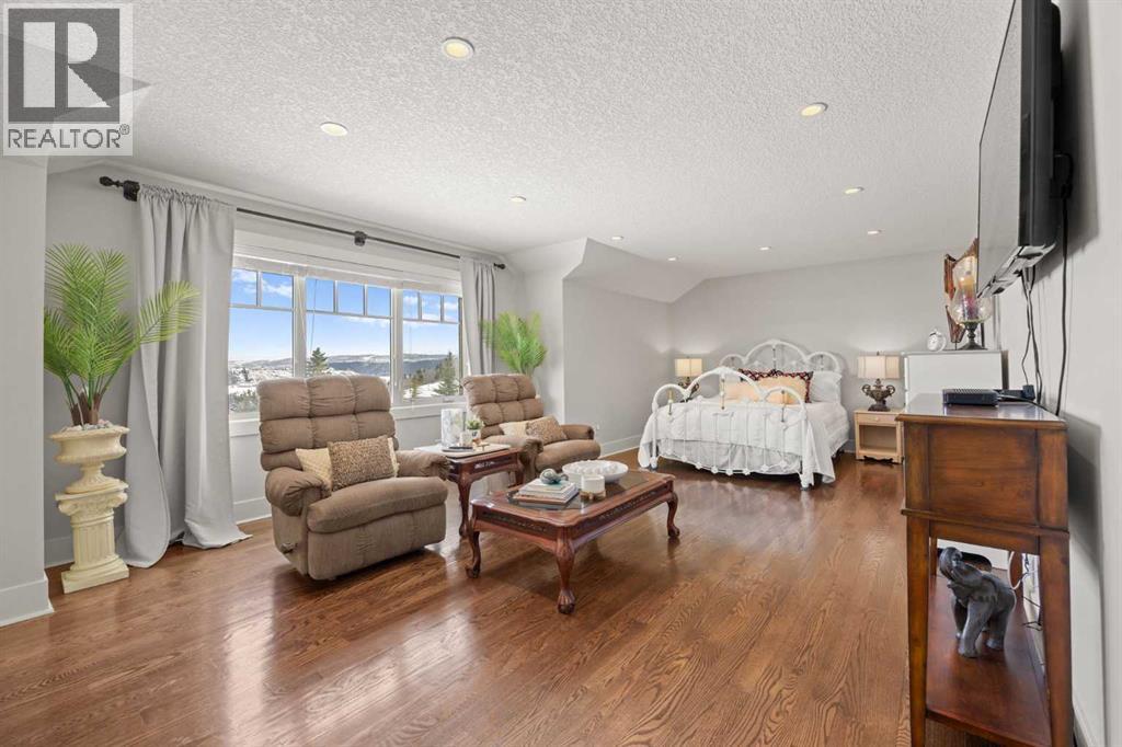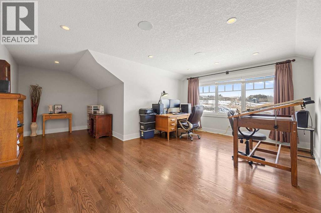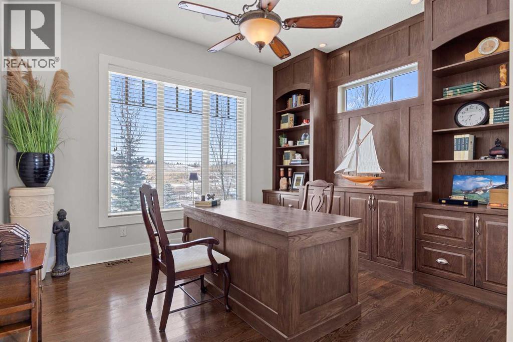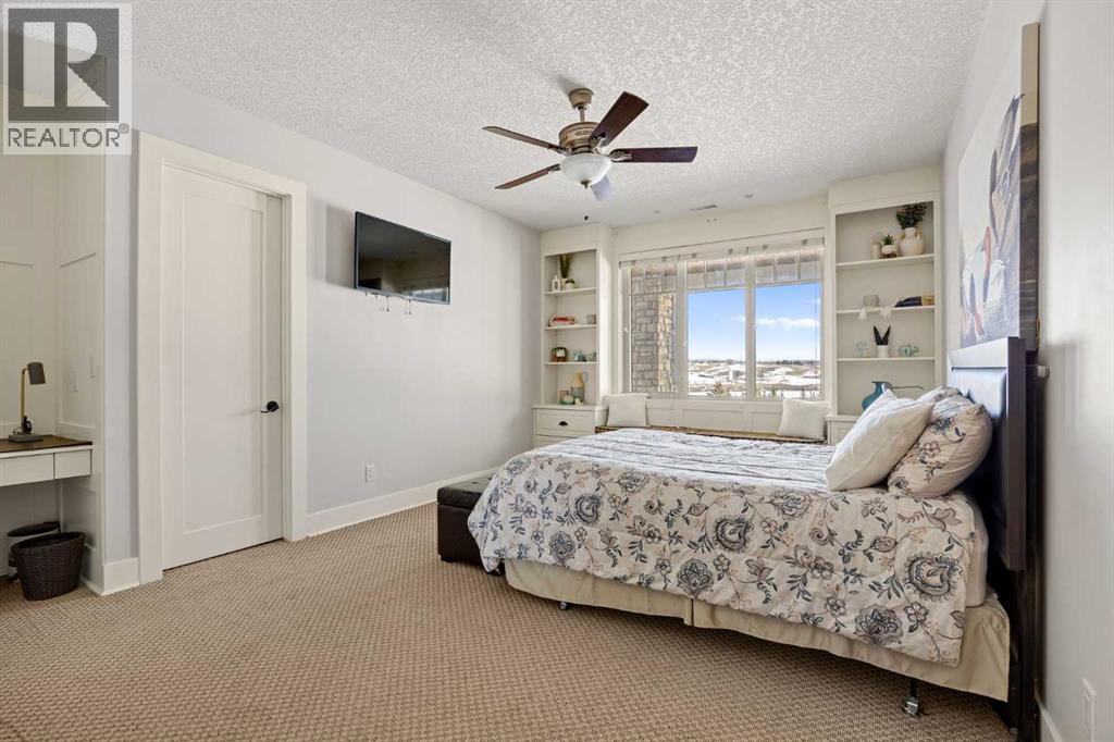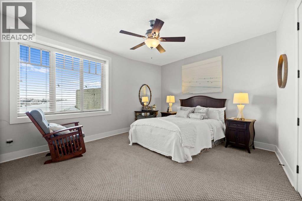 Perfectly positioned along the ridge in Emerald Bay, this custom-built walkout bungalow captures sweeping, unobstructed views of the Bow River and Rocky Mountains. Set on a quiet cul-de-sac, the home offers a rare combination of privacy, elevation, and a constantly changing natural backdrop.The main level is thoughtfully designed to showcase the scenery from nearly every principal room. Soaring vaulted ceilings and expansive windows draw the outdoors in, filling the living spaces with natural light while framing the river valley and mountain peaks beyond. The living room, anchored by a fireplace, flows seamlessly into the dining area and chef-inspired kitchen—creating an ideal setting for both everyday living and entertaining. The kitchen is anchored by a large granite island with seating, complemented by extensive cabinetry, a walk-through pantry, and direct access to a spacious mudroom and oversized laundry room that add exceptional day-to-day convenience.Privately set on its own upper level, the primary suite offers a peaceful retreat with elevated views, a spacious walk-in closet with a dedicated makeup area, and a luxurious ensuite featuring a soaker tub, glass rain and steam shower, and dual vanities.A main floor bedroom with its own ensuite provides flexibility for guests or multi-generational living, while a dedicated office creates a quiet work-from-home space. Above the garage, a private mother-in-law suite with its own separate entrance offers ideal accommodation for extended family, guests, or live-in support.The fully developed walkout basement expands the home’s versatility with three additional bedrooms, multiple bathrooms, a large family room, full bar, gym, and flexible spaces including a den and extensive storage . In-floor heating throughout the lower level and primary ensuite adds an extra layer of comfort year-round, while direct access to the lower patio creates a seamless indoor-outdoor connection.Outdoor living is just as compelling , with an expansive upper deck perfectly positioned to take in the panoramic views, along with a covered lower patio for more private gatherings. Exposed aggregate finishes on the patio and walkways enhance both durability and curb appeal.The fully finished triple attached garage is designed with both function and presentation in mind, featuring epoxy floors, built-in drainage, and in-floor heat, while an additional bay expands capacity to a total of four vehicles.With 5 bedrooms, 4 full bathrooms plus a powder room, and over 5,800 sq ft of developed living space, this home offers a rare opportunity to enjoy elevated acreage living with truly exceptional views. (id:63190)