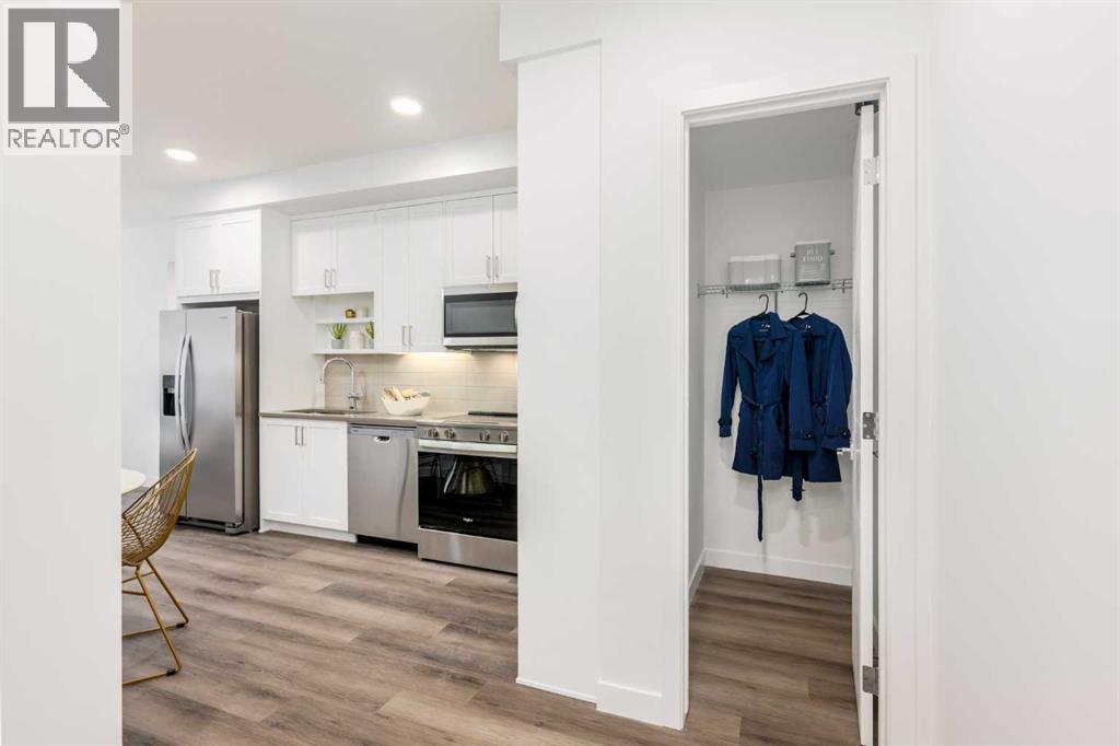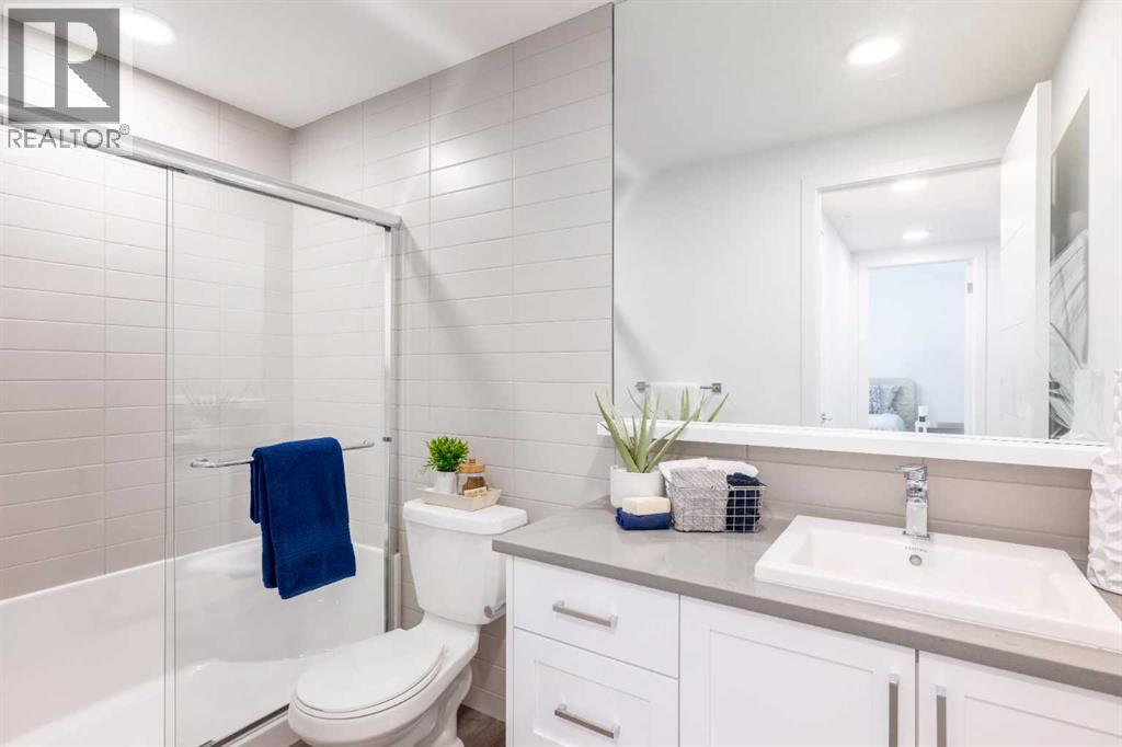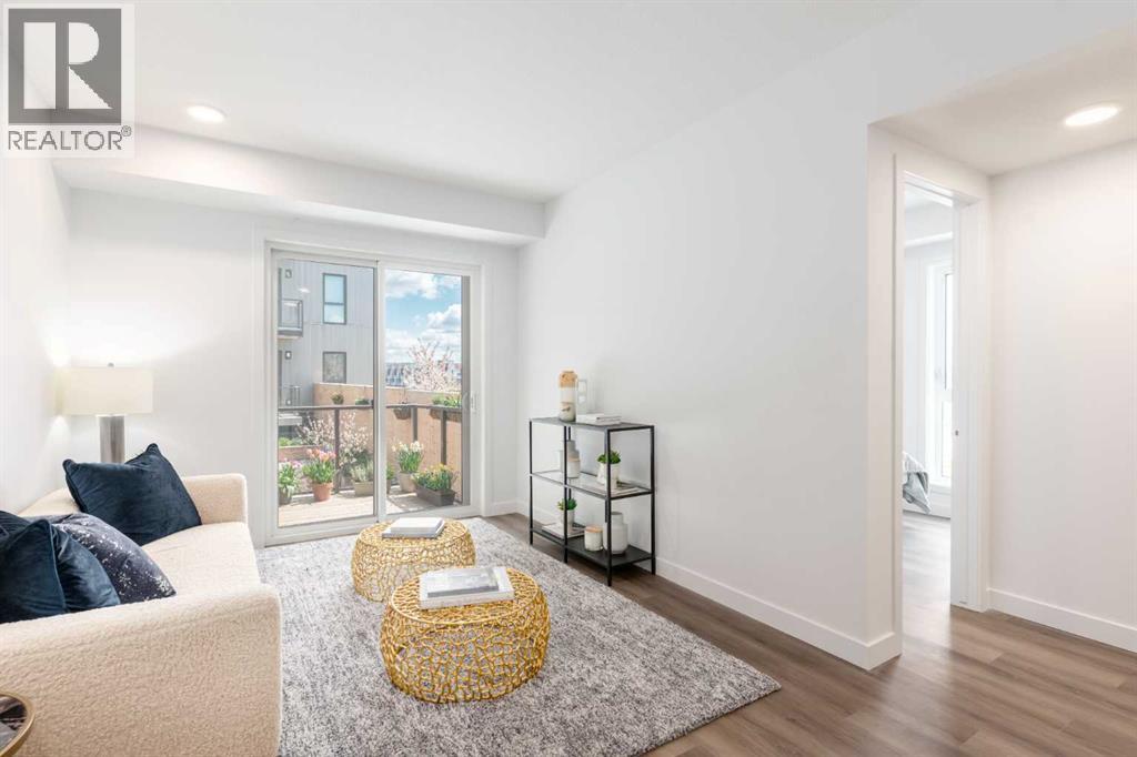 Welcome to Autumn in University District, a beautifully crafted Built-Green Registered condo by Homes by Avi, located in one of Calgary’s most sought-after urban communities. This thoughtfully designed A7 floor plan offers 1 bedroom, 1 bathroom, and a spacious private balcony, blending smart functionality with modern style in the heart of University District.Designed for comfortable everyday living, the open-concept layout features a bright contemporary kitchen, dedicated dining space, and an inviting living area that flows seamlessly together—perfect for entertaining, working from home, or simply relaxing. The spacious bedroom offers a peaceful retreat, complemented by a sleek full bathroom and convenient in-suite laundry.Residents of Autumn enjoy an exceptional collection of amenities designed to elevate condo living, including a top-floor owner’s terrace with BBQs, fire tables, and community garden spaces, a fully equipped fitness centre, stylish co-work and entertainment lounge, heated underground parking, secure storage on every residential floor, visitor parking, main-floor bike storage with direct laneway access, and a dedicated bike and pet wash station.Located just steps from Central Commons Park, the vibrant retail main street, the University of Calgary, Alberta Children's Hospital, Foothills Medical Centre, and CF Market Mall, this is an unbeatable opportunity for professionals, students, healthcare workers, and investors looking for a University District condo for sale in Calgary.Experience the perfect blend of modern condo living, walkability, and lifestyle-driven design at Autumn by Homes by Avi. (id:63190)