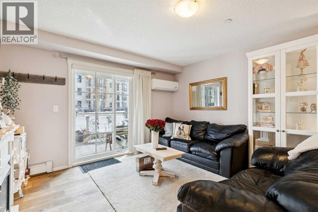 Welcome to Copperfield Park Condos, ideally situated in the heart of Copperfield, one of southeast Calgary’s most sought-after communities. This well-maintained ground floor unit offers a functional and accessible layout, featuring two bedrooms and two full bathrooms, with the added convenience of direct exterior access.The spacious foyer leads into an L-shaped kitchen complete with granite countertops, stainless steel appliances, and ample cabinetry. A dedicated dining area comfortably accommodates a full-size table, while the adjoining living room provides a comfortable space for everyday living and entertaining, finished with engineered hardwood flooring.The primary bedroom features a walk-in closet and a four-piece ensuite. The second bedroom is generously sized and offers Jack and Jill access to the full main bathroom, which also incorporates a convenient in-suite laundry area.The ground-level location allows for seamless entry with no stairs or elevators. It also provides direct access to the parking stalls just outside the unit. The private patio extends your living space outdoors and enhances the overall accessibility of the home, while air conditioning adds year-round comfort.A rare offering, this unit includes two titled parking stalls, adding real value and flexibility for owners or guests. The building is pet friendly, subject to board approval. Storage unit is also included in the underground parkade. Located close to playgrounds, schools, an off-leash dog park, and the amenities of 130th Avenue including shopping, dining, and grocery stores. The South Health Campus is nearby, with quick access to Stoney Trail and Deerfoot Trail, making commuting straightforward.A well-balanced opportunity offering convenience, functionality, and low-maintenance living in a highly connected community. (id:63190)