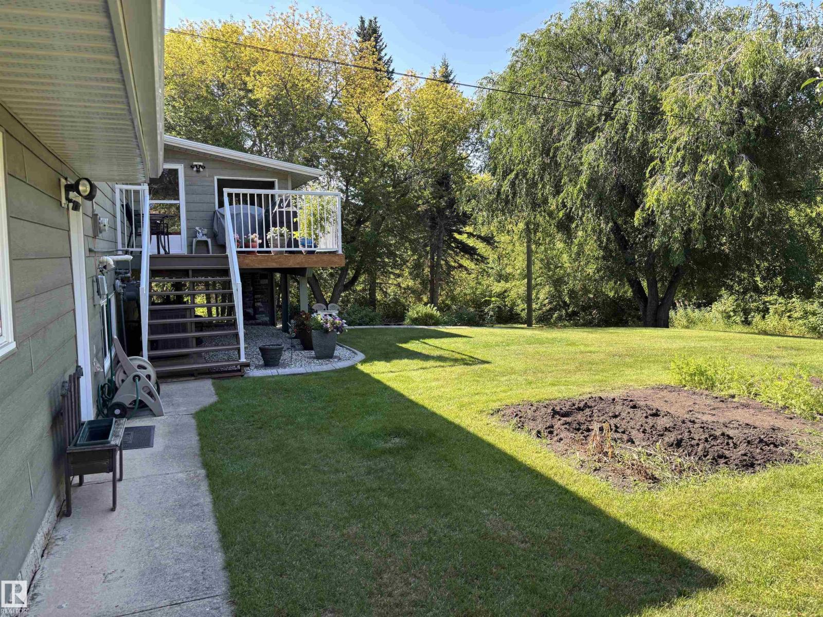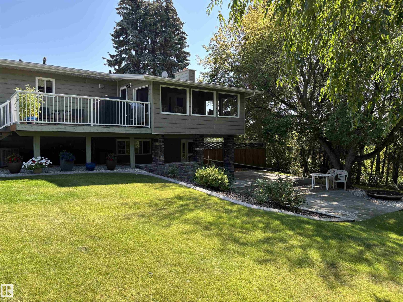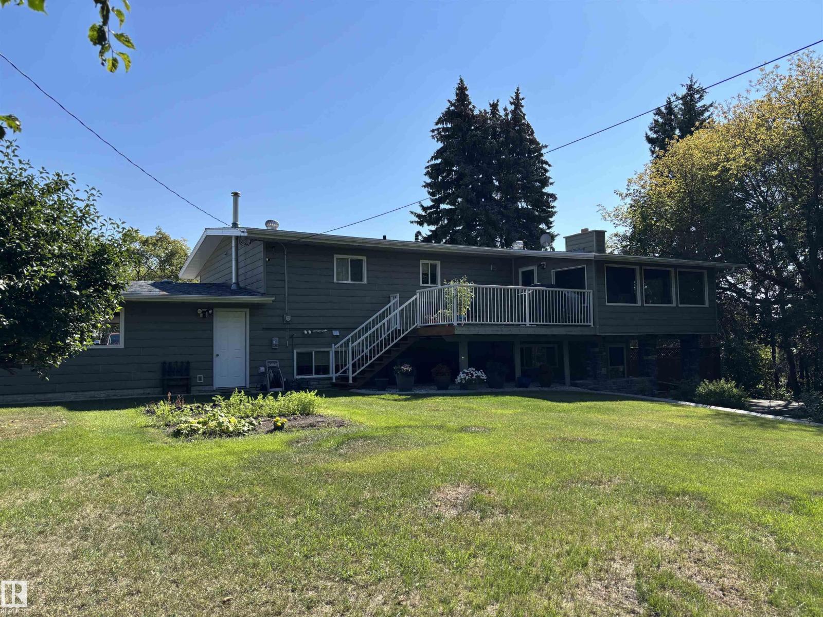 This exceptionally well-maintained bi-level home offers approximately 2600 sq ft of living space situated on 3 manicured lots. With a full main floor and exterior renovation in 2011, the home features 3 bedrooms (2 up, 1 down) and 3 full baths. The spacious primary bedroom boasts a walk-in closet and large ensuite w/ jetted tub. The kitchen has upgraded cabinets, appliances, and quartz countertops. Exit the kitchen to the back and enjoy your cozy sunroom and open deck w/ gas bbq hookup. The fully developed basement adds storage areas, a large bedroom, full bath and rec room that walks out to a massive backyard space with garden and fire pit surrounded by mature trees. Other upgrades include air-conditioning, dual-zone furnaces (2015), and new shingles (2024). Double attached garage has gas connection for heater and air compressor included. Enjoy the privacy and feel of a country home in the middle of town with just minutes walk from schools and shopping. (id:63190)