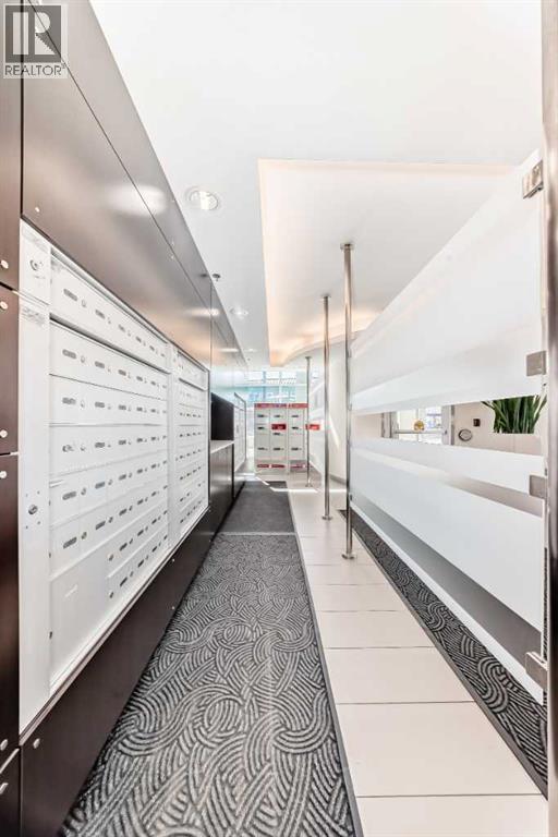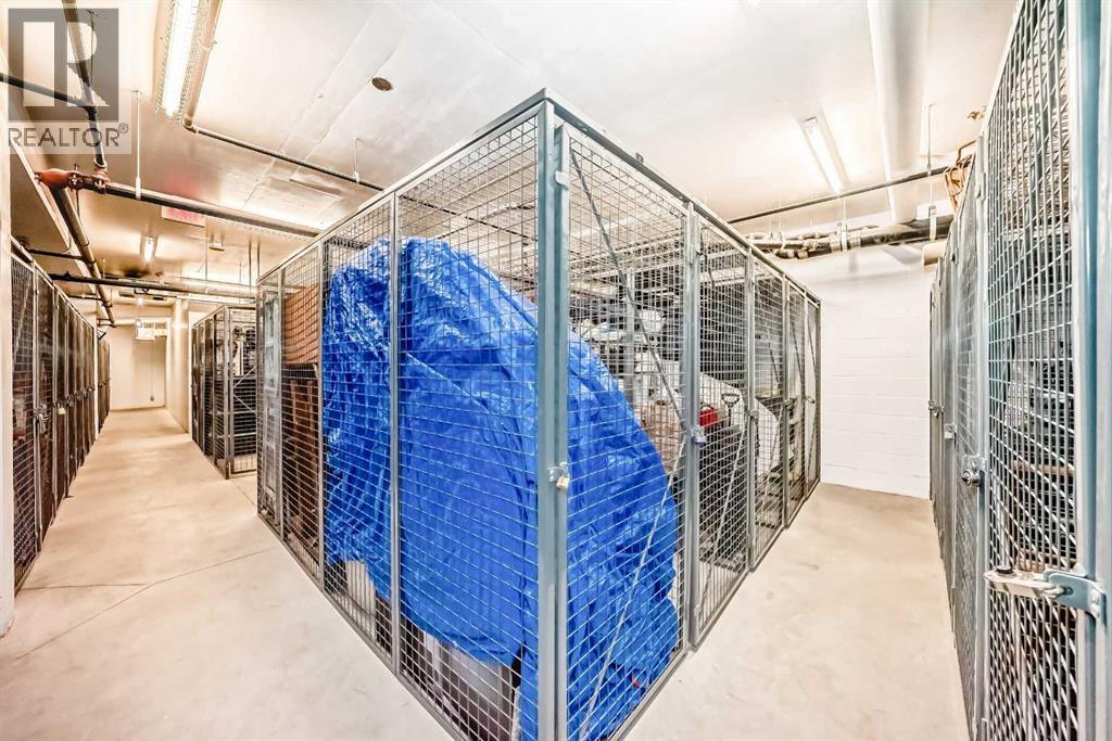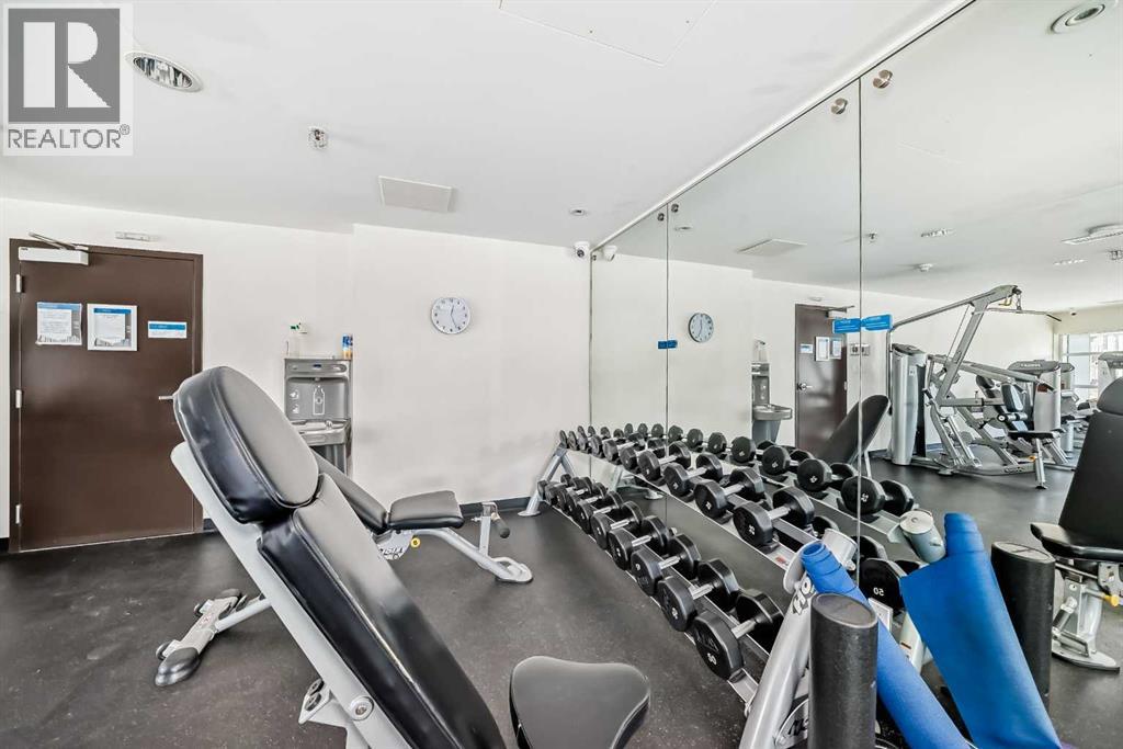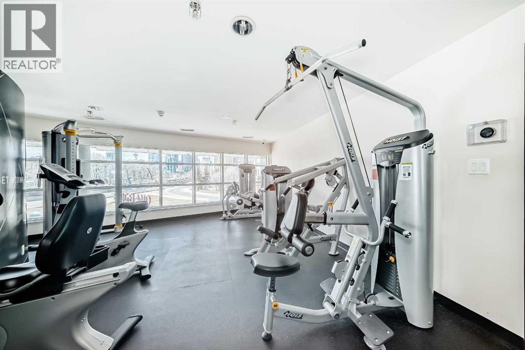Super bright 2 bedroom condo overlooking the courtyard and community garden plots. East facing so great morning sun on the balcony. There is only one common wall allowing for lots of windows throughout. Shows like new with stainless steel appliances that includes a gas stove top. Quartz counter tops with loads of cabinets. Primary bedroom shares an ensuite , in-suite laundry. Good size second bedroom. A well managed building with amenities that include a gym, work room to service bikes, a wash bay for dogs, theater room, community gardens for the green thumb. Courtyard with a BBQ for entertaining. There is secure titled parking plus a storage locker and bike locker. All within a 5 min walk to the Bridgeland LRT. (id:63190)