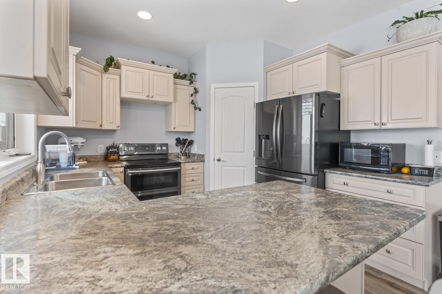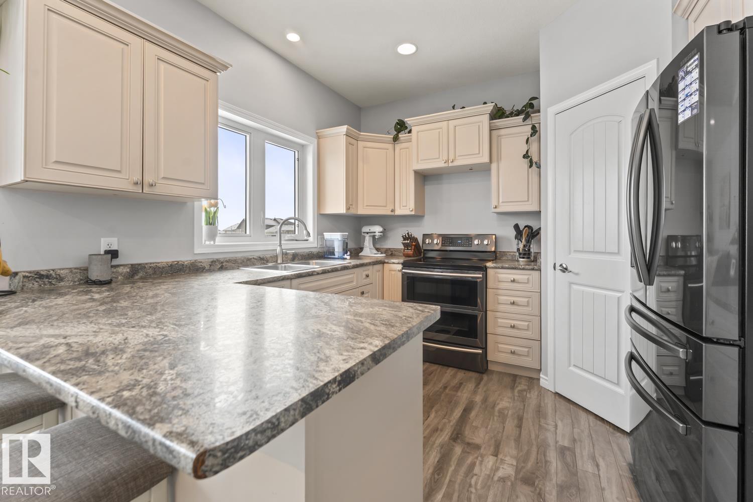 Welcome to your new home! This 3-bedroom, 2-bathroom property, built in 2015, offers a bright and functional open-concept layout. From the kitchen, you have a clear view into the living room, perfect for keeping an eye on the family or entertaining. Complete with a cozy gas fireplace. The primary bedroom features a beautiful, vaulted ceiling and a large front facing window, along with a spacious ensuite and a generous walk-in closet. Downstairs, the basement is well on its way to becoming your dream space. Much of the major work has already been done, with most of the drywall completed and a bathroom already plumbed in. The attached double garage is a great bonus, featuring a newly installed furnace so you can enjoy a warm, heated space all winter long. The home is finished with durable stucco, adding both long-term value and curb appeal. Outside, you’ll appreciate the front garden and pond, while the backyard offers direct access to the park. This home is priced to sell! Come take a look while you can! (id:63190)