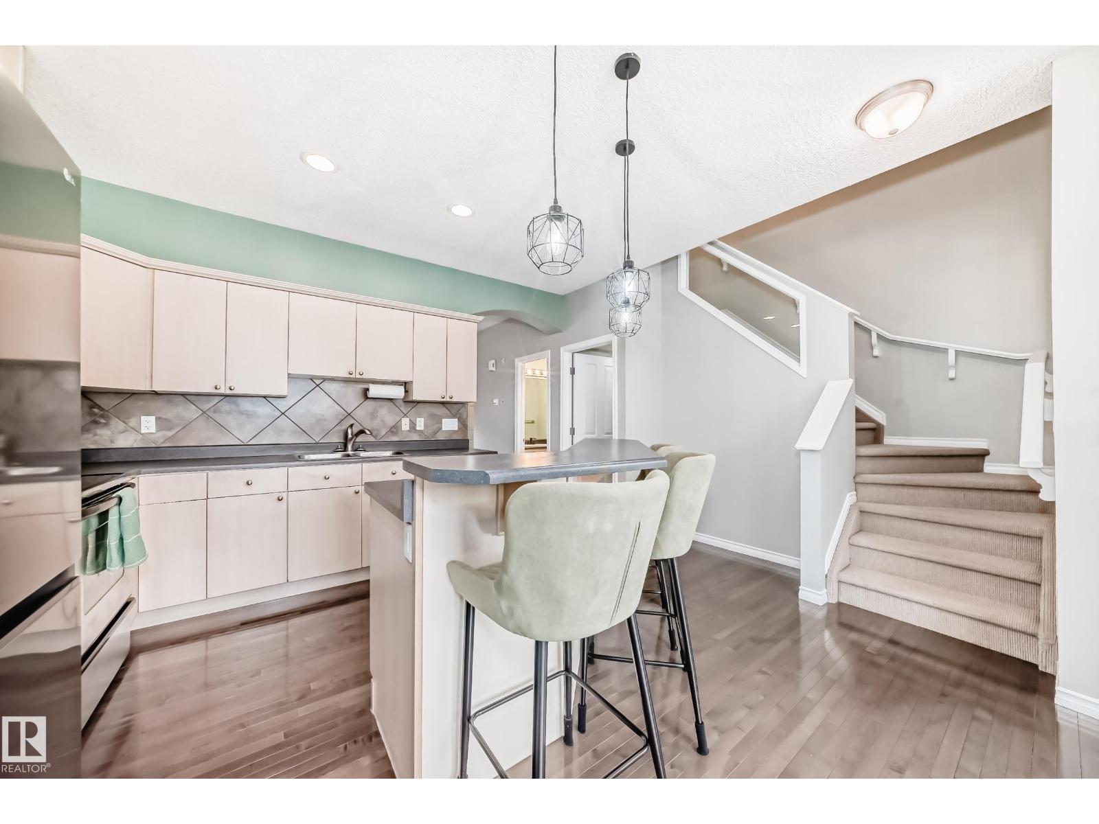 Welcome to Tuscan Village | The Heart of Carlton Rare 3-Bedroom Townhome with Direct Underground Parking Access, a game changer for our Edmonton winters! The main floor welcomes you with soaring 9ft ceilings and an airy, open-concept design highlighted by rich hardwood flooring and a stylish fireplace framed by oversized windows that flood the space with natural light. The gourmet island-style kitchen is a chef’s dream, complete with elegant maple cabinetry, upgraded stainless steel appliances, and a charming breakfast nook. Upstairs, the sophisticated aesthetic continues with glass-insert staircase railings leading to three spacious bedrooms, including a primary retreat boasting a walk-in closet and a private 4-piece ensuite. The fully finished basement offers a versatile second living area and ample storage. Close to all amenities including shopping, public transportation, parks and schools. Immediate possession, move in ready! (id:63190)