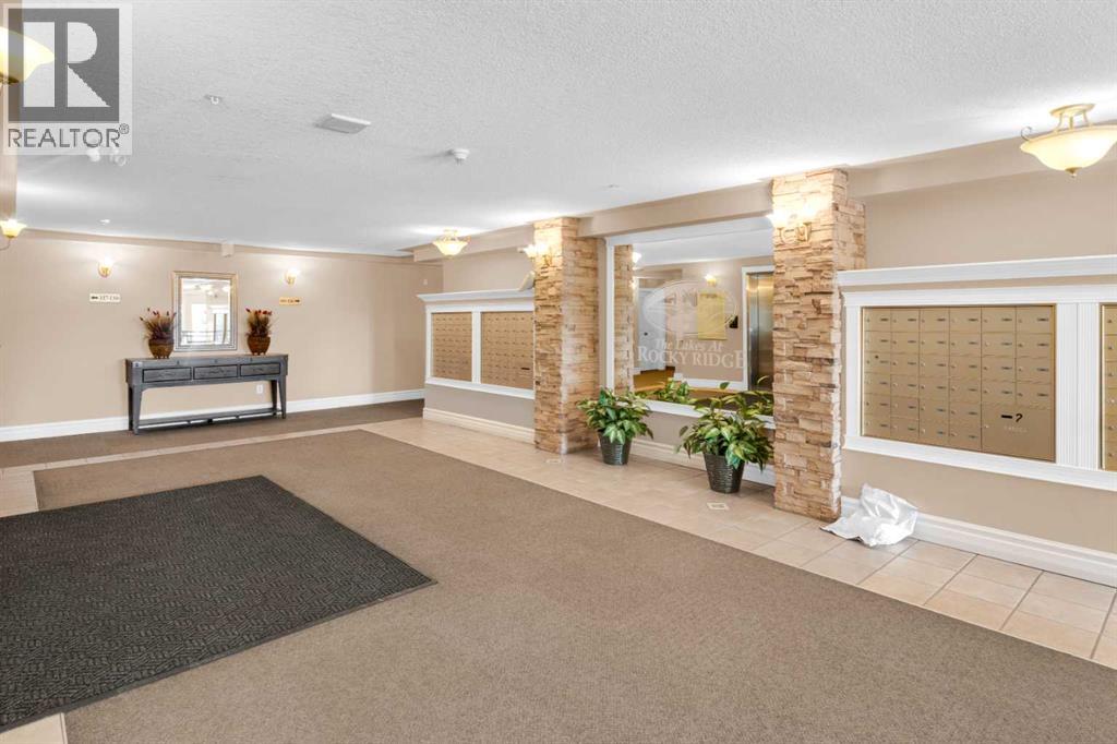 Enjoy comfort, convenience, and stunning views from this bright, well designed and updated condo in The Pavilions of Rocky Ridge. This immaculately kept open concept condo offers plenty of room for full sized furniture and a large TV, creating a warm and inviting space for relaxing or entertaining. The layout is ideal for privacy, with both bedrooms located on opposite sides of the main living area. The kitchen is thoughtfully arranged with generous counter space and an adjoining dining nook, perfect for everyday meals. The primary bedroom features a walk in closet plus a private 3 piece ensuite. The second bedroom is roomy and versatile, paired with a 4 piece main bathroom, as well as a spacious laundry room that adds great functionality to the home. Step outside to the oversized balcony with a private storage attached and take in beautiful mountain views, the perfect spot for morning coffee or evening unwinding. Additional perks include heated titled underground parking, an outdoor parking pass and convenient underground access to exceptional shared amenities: a fantastic fitness centre, theatre room, party room, and billiards lounge. Located within walking distance to transit, tennis courts, parks, and scenic walking and biking paths, this property also offers quick connections to the University of Calgary, Rocky Ridge YMCA, Bowness Park, downtown, and major routes like Stoney Trail. The ultimate combination of lifestyle, location, and mountain view living awaits. (id:63190)