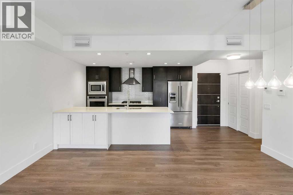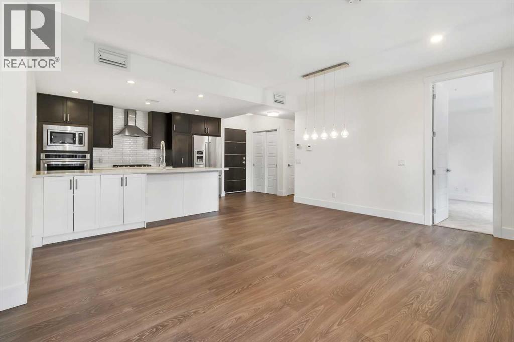 LOCATION. LIFESTYLE. CERTAINTY. Welcome to 3320 3rd Ave NW—located in a desirable riverfront community close to parks, pathways, and everyday amenities. This main-floor 2-BEDROOM + DEN unit offers easy access with no elevator wait, making daily living more convenient. The layout is open and practical, with a bright living and dining area that connects well to the kitchen. The Modern kitchen offers good counter space, modern appliances, and plenty of storage. The primary bedroom includes a walk-in closet and private ensuite, while the second bedroom is well-sized and close to the main bathroom. A separate den/flex room near the entrance is perfect for a home office, study, or extra storage. Enjoy your private patio—great for morning coffee or relaxing in the evening. The unit also includes in-suite laundry and heated underground parking for year-round comfort. The location is a big plus—just steps from the Bow River pathways and close to Shouldice Athletic Park, Foothills Hospital, the University of Calgary, Market Mall, and minutes to downtown. Pet-friendly building (with board approval), allowing up to two dogs, two cats, or one dog and one cat per unit. RMS size is 963 sq ft. Builder size is 1,038 sq ft including the balcony. A great option for first-time buyers, downsizers, or investors looking for a well-located and functional home. (id:63190)