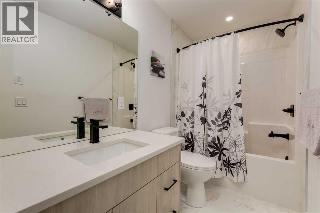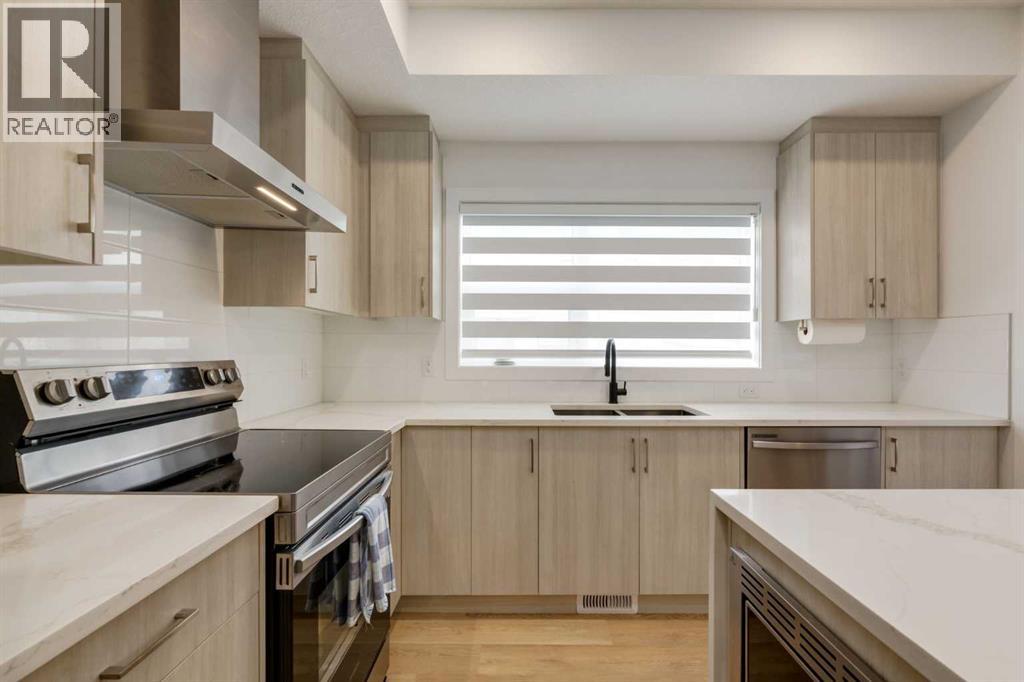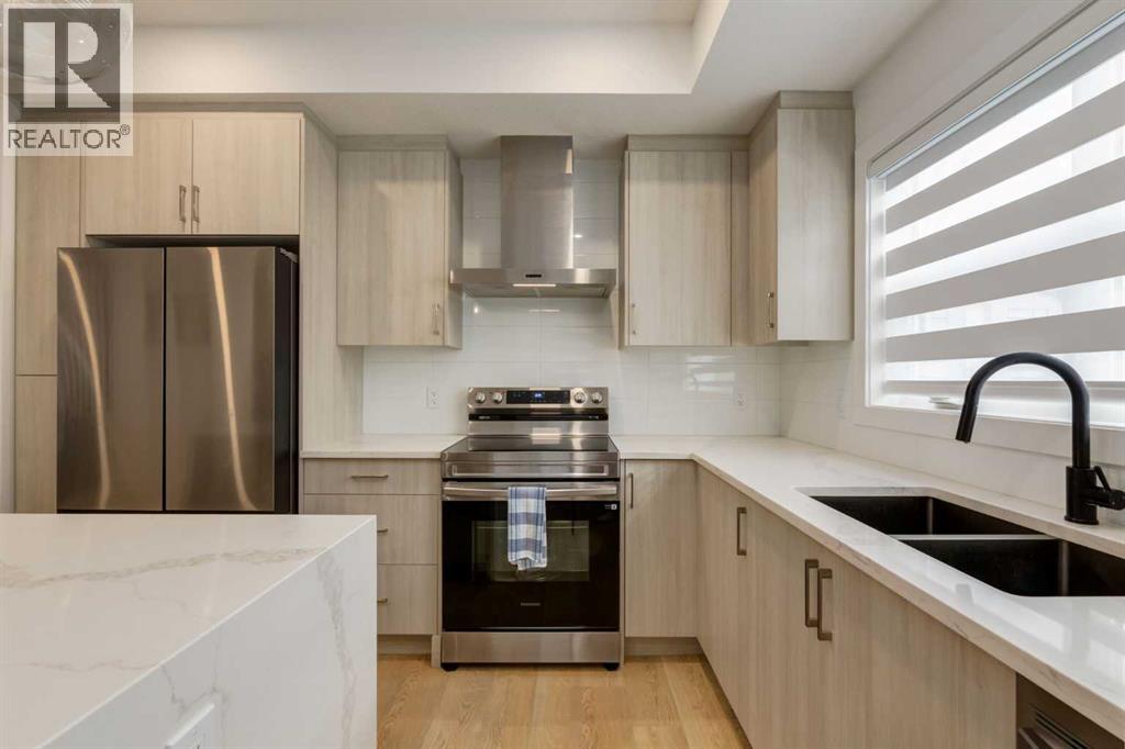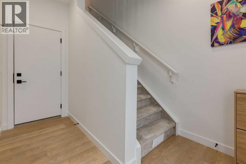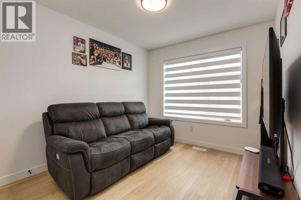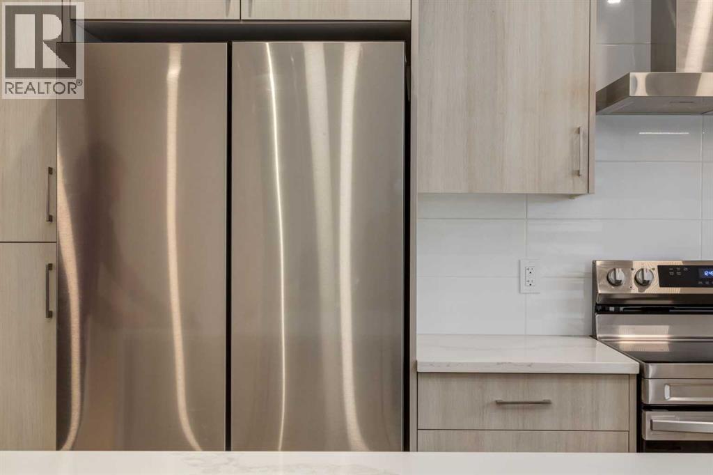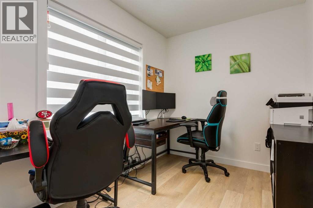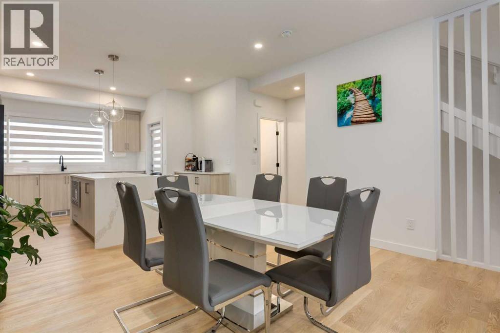 Nestled in the desirable lake community of Mahogany, this 2024 built, three storey townhouse by Mountain Pacific Homes offers a seamless blend of modern design, high end finishes and functional living. Featuring 3 bedrooms, 2.5 bathrooms and a double side by side attached garage with driveway; this home is designed for both comfort and convenience. From the moment you arrive, the Hardie board siding and engineered exterior trim provide standout curb appeal and lasting durability. Inside, you’re welcomed by a spacious foyer and a versatile flex room; ideal for a home office, gym, or additional lounge space along with direct access to the garage. The open concept main floor showcases 9’ ceilings, luxury vinyl plank flooring and large windows that fill the home with natural light. The chef inspired kitchen features quartz countertops, a waterfall island, full height cabinetry with a dedicated coffee bar, soft close doors and drawers and a full stainless steel appliance package, including a French door refrigerator and smooth top range. A full height ceramic tile backsplash, pendant lighting and pot lights throughout add a polished, modern finish. The kitchen flows seamlessly into the dining and living areas, perfect for entertaining. Upstairs, you’ll find laundry, a full four piece bathroom and three spacious bedrooms; one being the primary retreat with walk-in closet and four piece ensuite. Both upper level bathrooms continue the upscale feel with quartz countertops, tiled flooring, extra cabinetry and full height tile surrounds in the tub and shower. Additional highlights include automated blinds throughout and a private balcony with a BBQ gas line, ideal for relaxing or hosting guests. Located in the award winning lake community of Mahogany, you’ll enjoy close proximity to Mahogany Lake, along with schools, parks, pathways, shops, and trendy restaurants; offering a vibrant, walkable lifestyle.. Truly a must see, book your showing today! (id:63190)