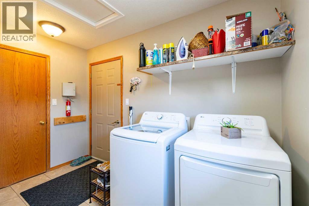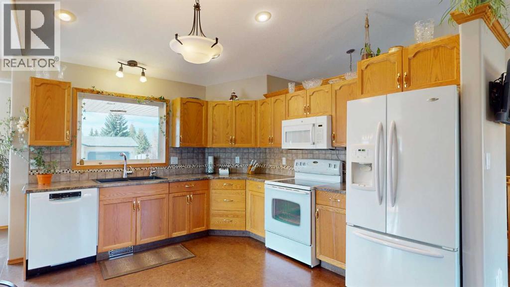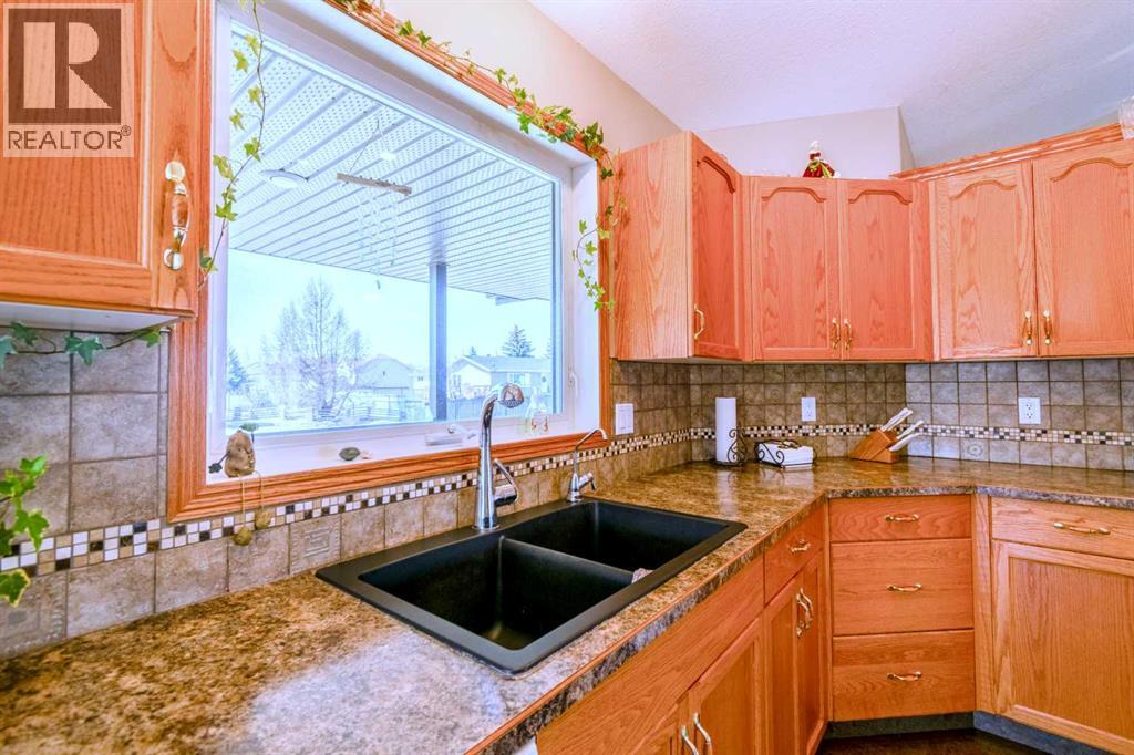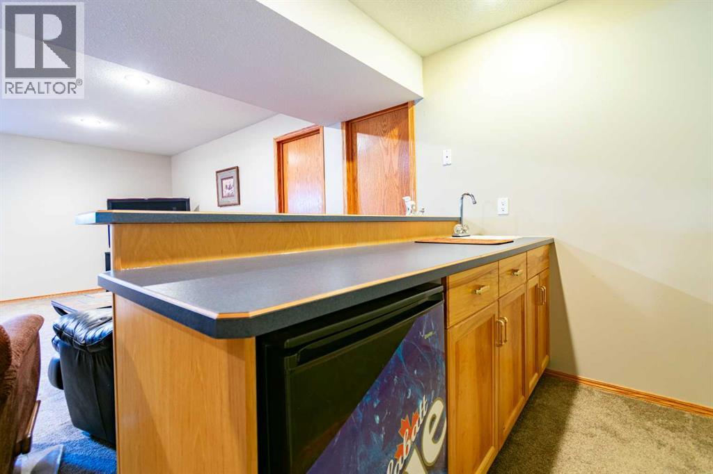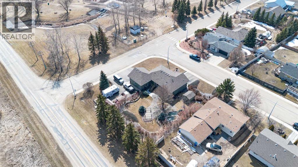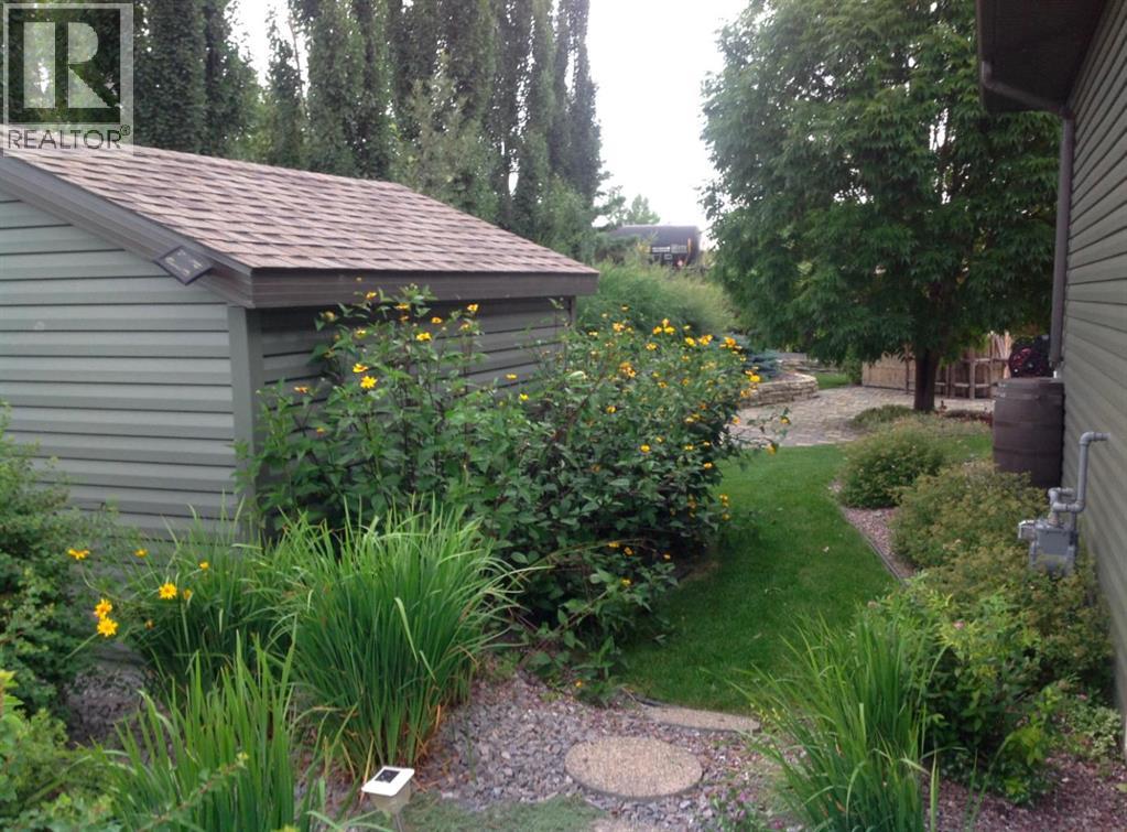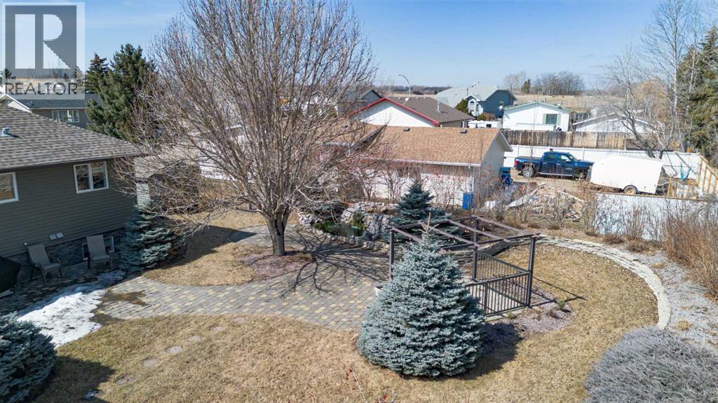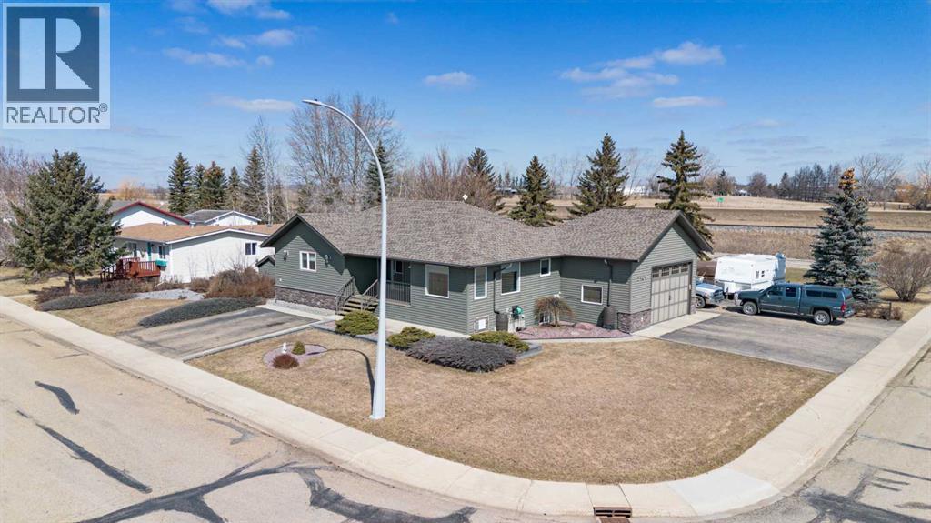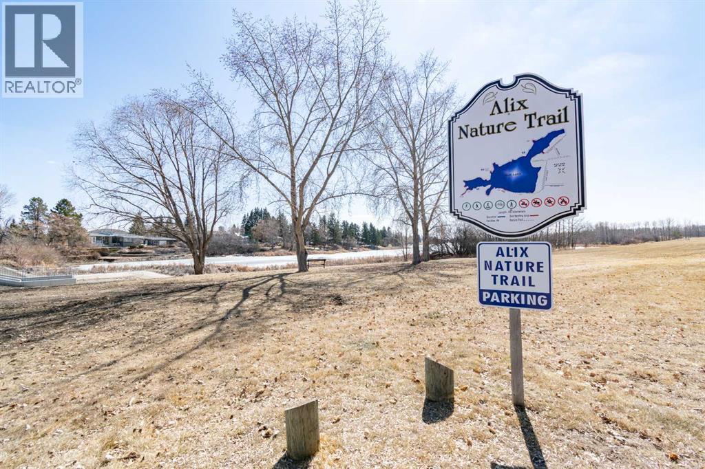 Welcome to your own little slice of paradise, ideally located right across the street from Alix Lake. Situated on two lots, this property offers plenty of space for all your needs—inside and out.Step through the front door into a bright, open-concept living, dining, and kitchen area that’s perfect for both everyday living and entertaining. The cozy living room is an inviting place to relax, with direct access to the backyard. The kitchen offers ample cupboard and counter space, along with a large walk-in pantry to keep everything organized. Just off the kitchen, the dining area is filled with natural light from large south- and east-facing windows and large enough to fit almost any dining table.The main floor also features a spacious primary bedroom complete with a 3-piece ensuite, including a charming sweetheart tub. There is also another bedroom, and another 3 piece bathroom, complete with a custom tile walk in shower. You’ll appreciate the convenience of main floor laundry—no more trips up and down stairs—and easy access to the attached 25x25 garage, which boasts a 12-foot ceiling and a 10x16 overhead door. There are also newer Hunter Douglas blinds throughout most of the main level.Downstairs, you’ll find a generous family room that could easily double as a games or entertainment space, complete with a wet bar and bar fridge. This level also includes a private office, a large storage room with plenty of shelving, two oversized bedrooms, and a 4-piece bathroom.Outside is truly the highlight of this property. The beautifully landscaped yard features low-maintenance shrubs, a brick pathway and patio, and a pergola—perfect for enjoying warm summer days. A serene pond with a waterfall, home to year-round fish (included), adds a peaceful touch. The property also includes an underground sprinkler system and plenty of paved parking for multiple vehicles, RVs, and all your recreational toys. The 10x12 shed id great for keeping all of your outdoor tools organized. Lo cated directly across from Alix Lake and its 6.5 km walking trail, you’ll have easy access to boating, tubing, kayaking, and more. The village of Alix offers a great small-town atmosphere with local shops, dining, and a K–12 school. Centrally located, you’re just 25 minutes to Stettler, 30 minutes to Lacombe, and 40 minutes to Red Deer.If you’ve been searching for small-town living with quick access to larger centers, this property is well worth a look. (id:63190)